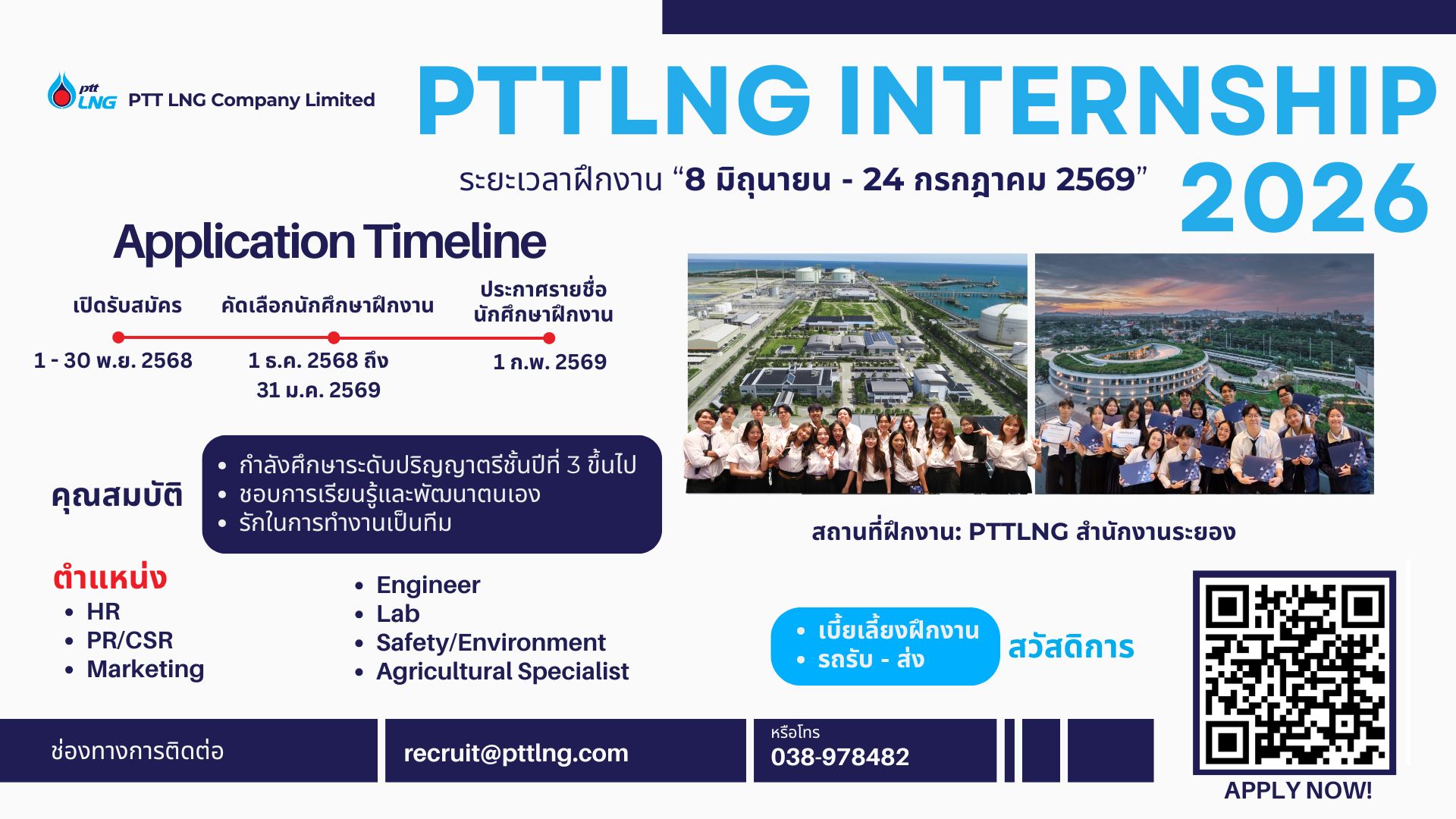About UsPTTLNG operates its business in pursuit of excellence, aiming to be the world's leading LNG receiving and distributing station service provider. With a vision to promote clean energy and strengthen the country's energy security, it conducts its business operations transparently and with a sense of social responsibility.