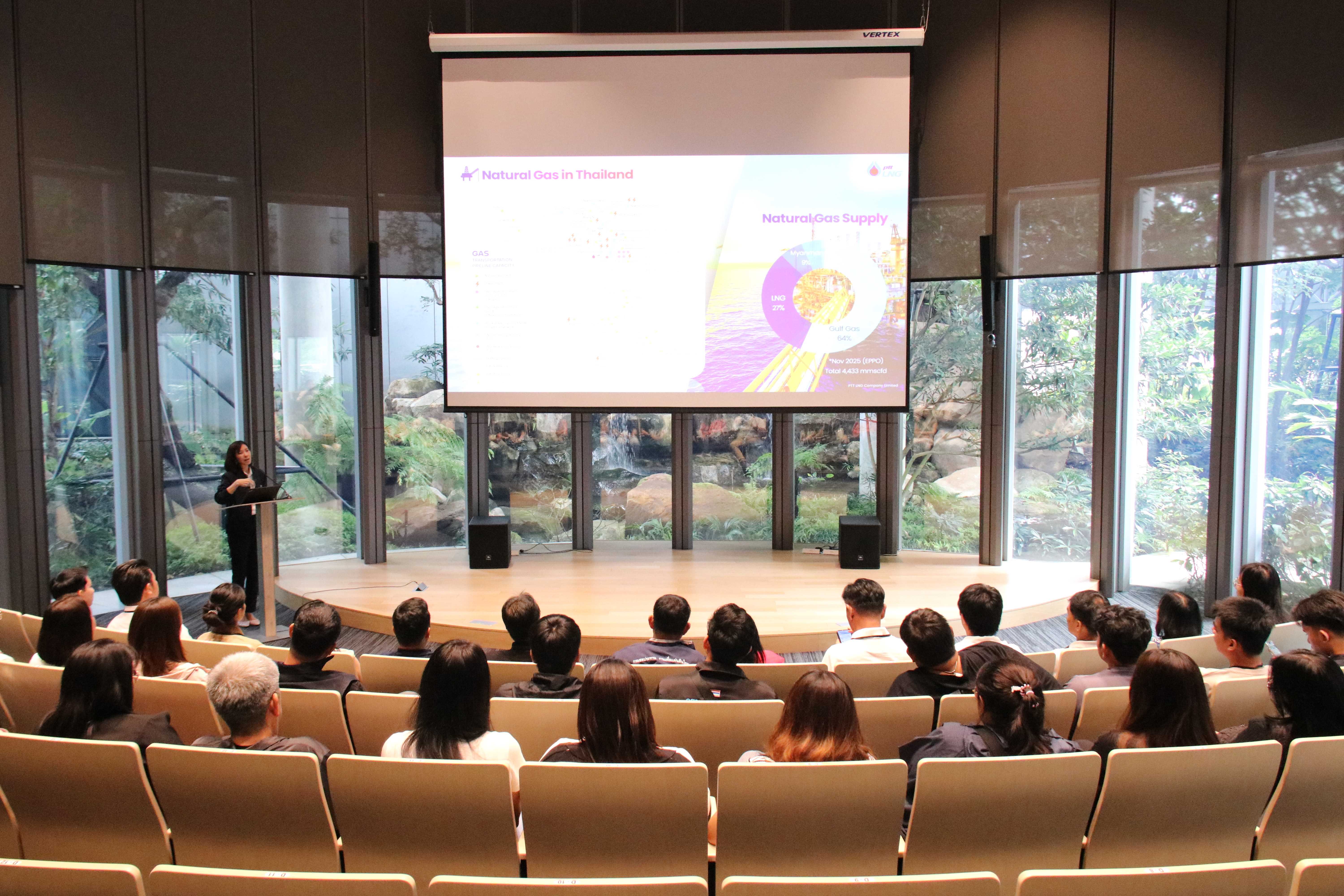 วันที่ 12 กุมภาพันธ์ พ.ศ. 2569 PTTLNG ให้การต้อนรับคณะเจ้าหน้าที่สำนักงานชลประทานที่ 9 กรมชลประทาน ในโอกาสเยี่ยมชม PTTLNG เพื่อศึกษาดูงานการดำเนินธุรกิจของ PTTLNG และให้เกิดความรู้ ความเข้าใจ ด้านการบริหารจัดการงานรับ-จ่ายก๊าซธรรมชาติเหลว ที่มาและการดำเนินด้านนวัตกรรมการนำพลังงานความเย็นจาก LNG ที่เหลือใช้มาพัฒนาให้เกิดประโยชน์สูงสุด รวมถึงการดำเนินงานตามภารกิจ โดยคำนึงถึงการมีส่วนรับผิดชอบต่อชุมชนและสังคมอย่างยั่งยืน โดยคณะฯได้รับฟังการบรรยายสรุป “ภาพรวมการดำเนินธุรกิจ PTTLNG” โดย คุณจุฑารัตน์ พิทักษ์วาทิน พนักงานประชาสัมพันธ์อาวุโส หลังจากนั้น คณะฯได้เข้าเยี่ยมชมพรรณไม้เมืองหนาวภายในอาคารนิทรรศน์พรรณพฤกษา ซึ่งใช้พลังงานความเย็นที่เหลือจากกระบวนการแปรสภาพก๊าซธรรมชาติเหลว (LNG) ในการควบคุมอุณหภูมิที่ 15 องศาเซลเซียส ถือเป็นหนึ่งในตัวอย่างนวัตกรรมการใช้พลังงานอย่างมีประสิทธิภาพและยั่งยืน