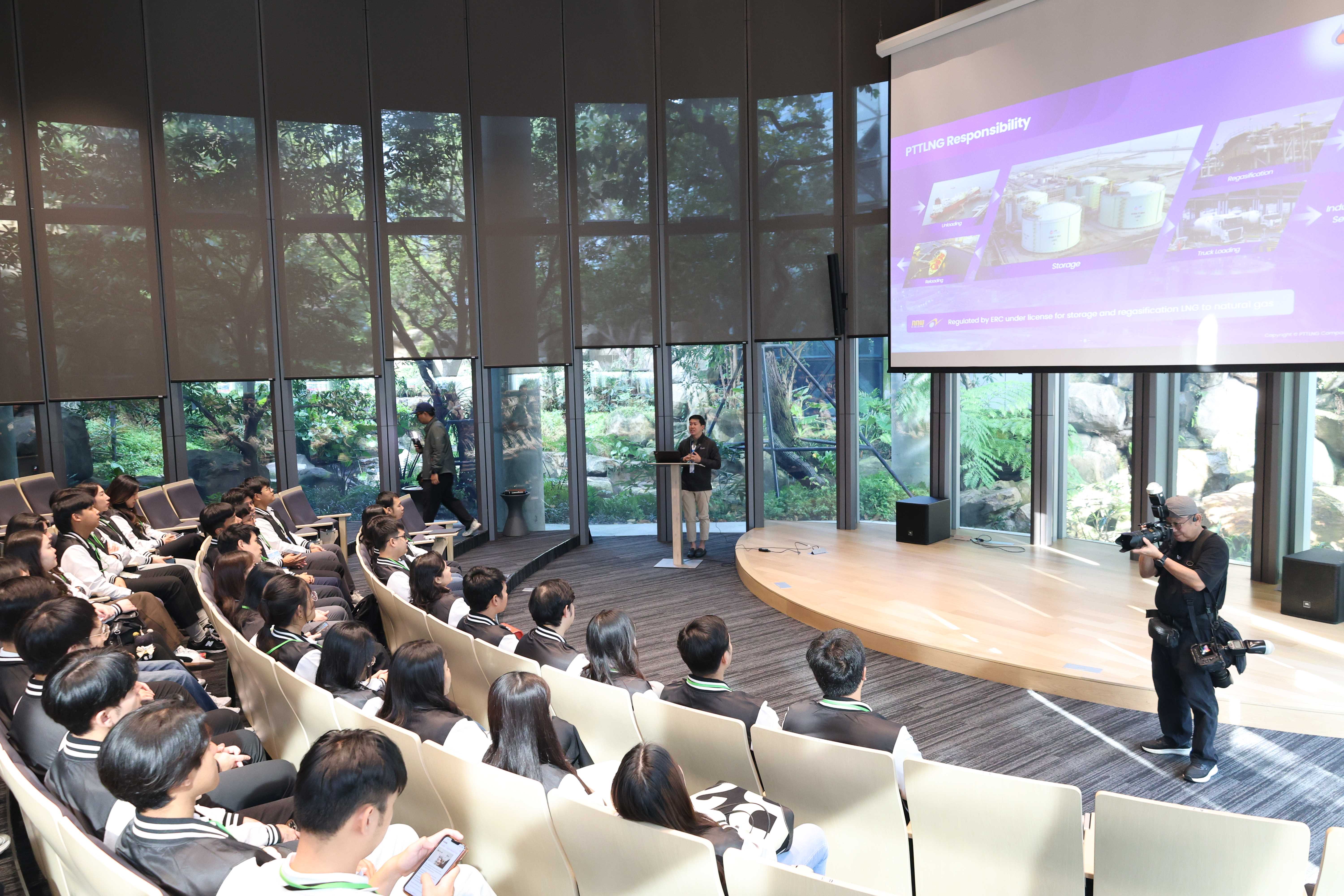 วันที่ 11 มีนาคม พ.ศ. 2569 PTTLNG ให้การต้อนรับพนักงานใหม่หลักสูตร OR Orientation ประจำปี 2569 เนื่องในโอกาสเยี่ยมชม PTTLNG เพื่อศึกษาดูงานการดำเนินธุรกิจของ PTTLNG ให้เกิดความรู้ ความเข้าใจ ที่มาและการดำเนินด้านนวัตกรรมการนำพลังงานความเย็นจาก LNG ที่เหลือใช้มาพัฒนาให้เกิดประโยชน์สูงสุด รวมถึงระบบการจัดการพลังงานควบคู่กับการอนุรักษ์สิ่งแวดล้อมได้อย่างยั่งยืน โดยคณะฯได้รับฟังการบรรยายสรุป “ภาพรวมการดำเนินธุรกิจ PTTLNG” โดย คุณนฤนาถ หุ่นเจริญ ผู้จัดการส่วนทรัพยากรบุคคลและพัฒนาองค์กร พร้อมทั้งเข้าเยี่ยมชมศูนย์ควบคุมการปฏิบัติการส่วนกลาง (Central Control Room: CCR) ซึ่งเป็นหัวใจสำคัญในการบริหารจัดการระบบปฏิบัติการของสถานี LNG เพื่อให้การดำเนินงานเป็นไปอย่างมีประสิทธิภาพและปลอดภัยสูงสุด หลังจากนั้น คณะฯได้เข้าเยี่ยมชมพรรณไม้เมืองหนาวภายในอาคารนิทรรศน์พรรณพฤกษา ซึ่งใช้พลังงานความเย็นที่เหลือจากกระบวนการแปรสภาพก๊าซธรรมชาติเหลว (LNG) ในการควบคุมอุณหภูมิที่ 15 องศาเซลเซียส ถือเป็นหนึ่งในตัวอย่างนวัตกรรมการใช้พลังงานอย่างมีประสิทธิภาพและยั่งยืน