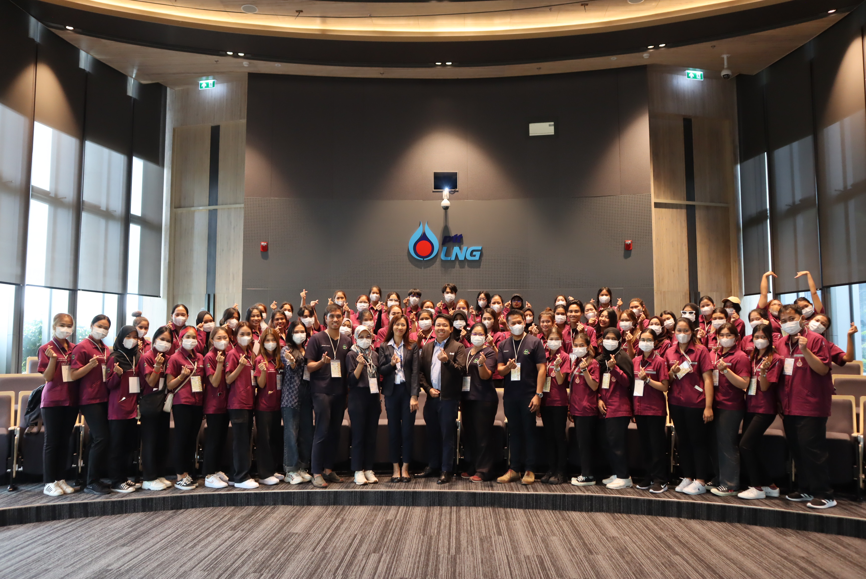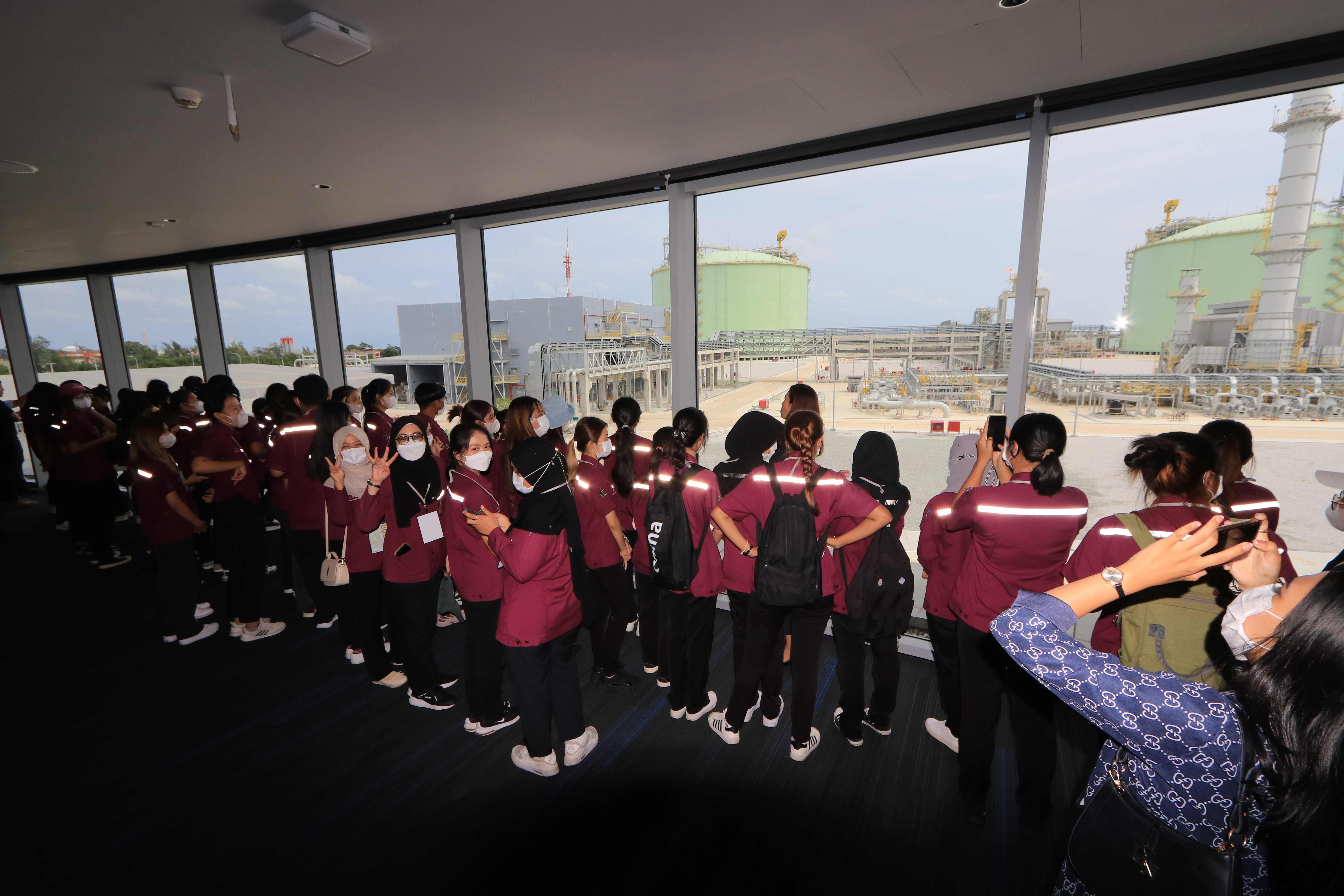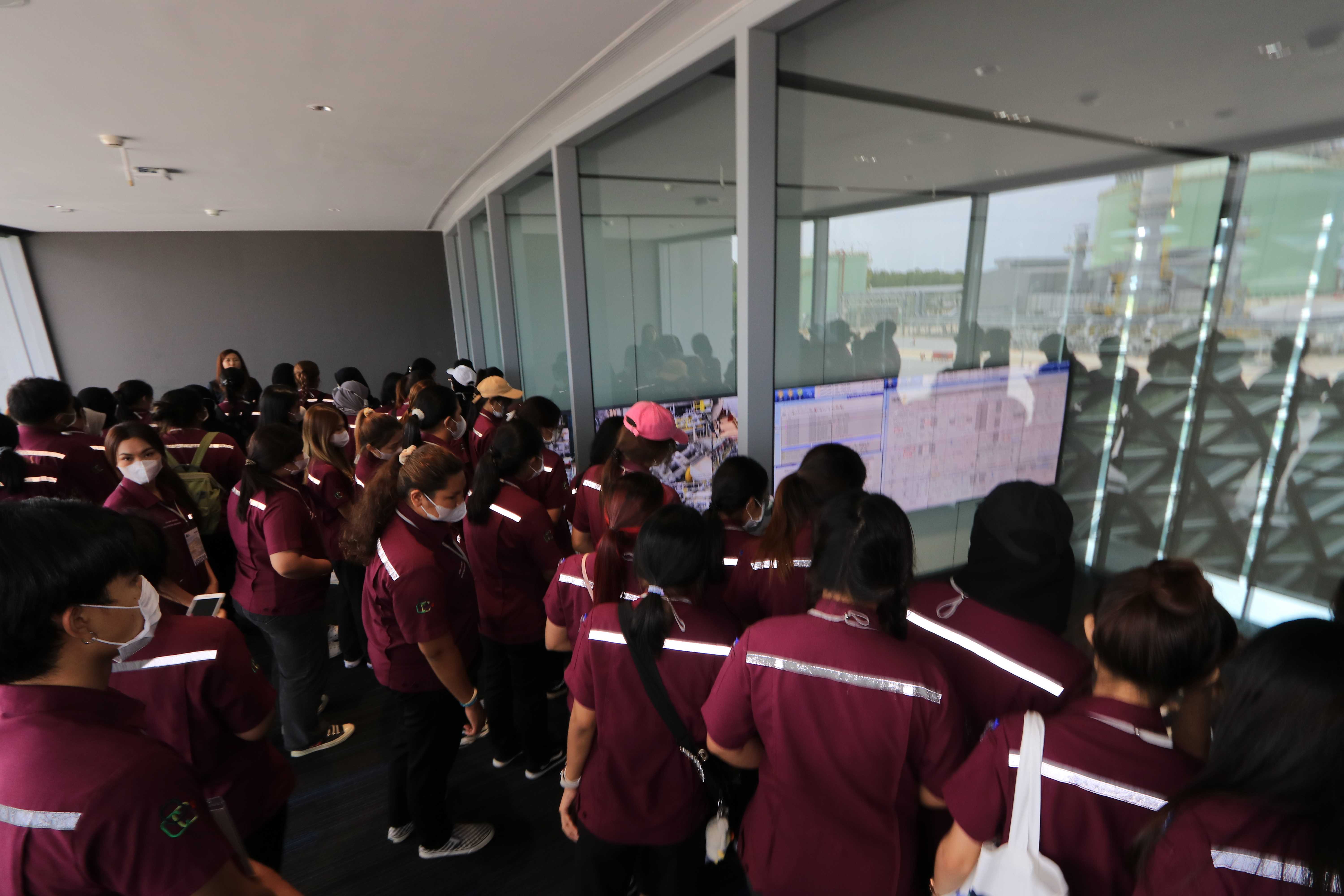 วันที่ 7 มิถุนายน 2566 เวลา 14.00 น. คุณนรา โตแย้ม ผู้จัดการส่วนสื่อสารองค์กรและกิจการเพื่อสังคม PTTLNG ให้การต้อนรับคณะนักศึกษา คณาจารย์ บุคลากร สาขาอาชีวอนามัยและความปลอดภัย หลักสูตรวิทยาศาตรบัณฑิต มหาวิทยาลัยวลัยลักษณ์ จำนวน 82 คน ณ ห้องออดิทอเรียม สถานีแอลเอ็นจี มาบตาพุด แห่งที่ 2 ในโอกาสเยี่ยมชม PTTLNG ณ ห้องออดิทอเรียม สถานีแอลเอ็นจี มาบตาพุด แห่งที่ 2 โดยคุณจุฑารัตน์ พิทักษ์วาทิน พนักงานมวลชนสัมพันธ์ ได้บรรยายภาพรวมการดำเนินธุรกิจของ PTTLNG และรับชมสาธิตคุณสมบัติก๊าซธรรมชาติเหลว หลังจากนั้นได้เข้าเยี่ยมชม ศูนย์ควบคุมการปฏิบัติการ (Central Control Room) พร้อมทั้งเยี่ยมชมไม้เมืองหนาว ภายในอาคารนิทรรศน์พรรณพฤกษา ซึ่งมีการออกแบบให้ใช้ประโยชน์จากความเย็นในกระบวนการผลิต LNG ให้เกิดประโยชน์สูงสุด