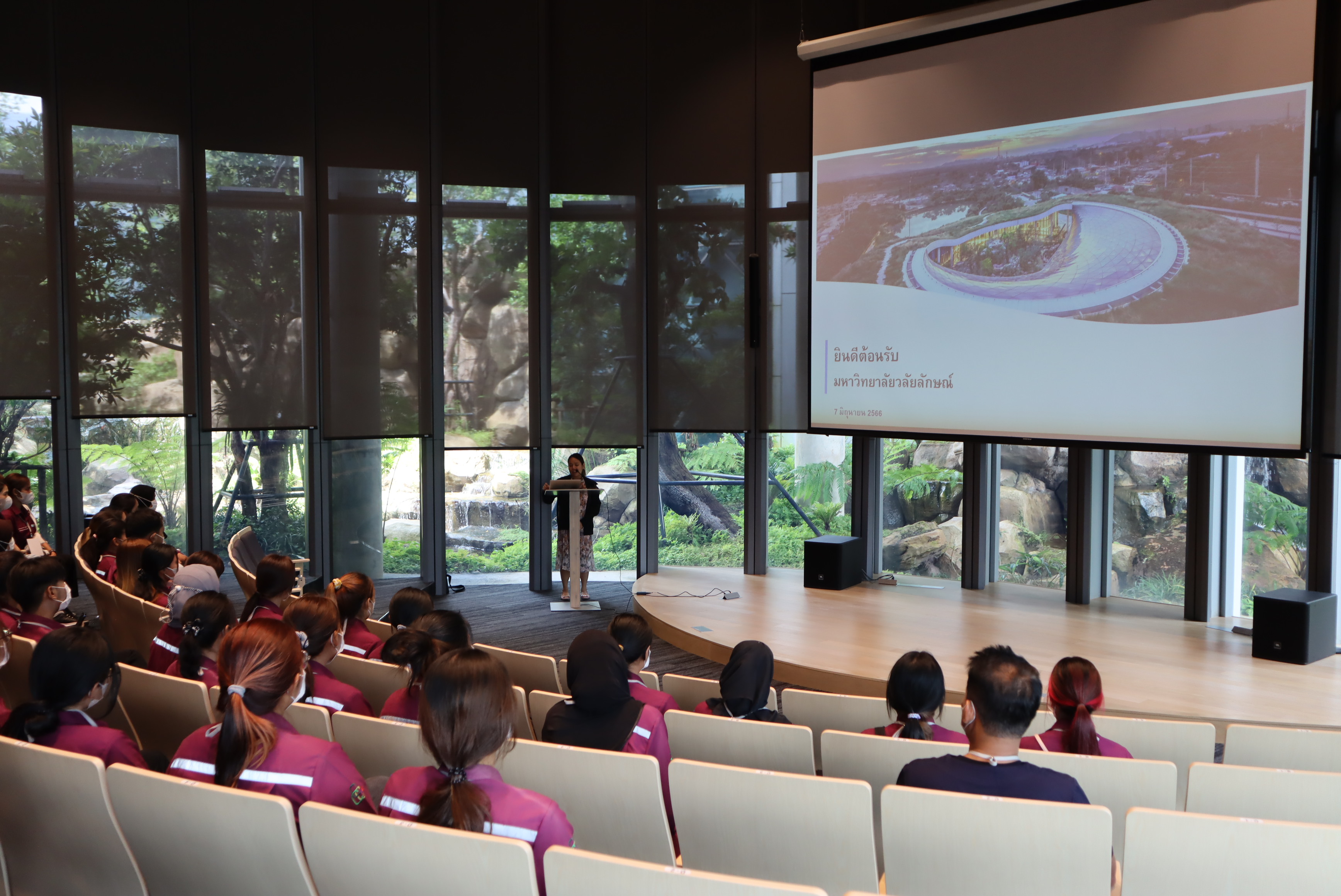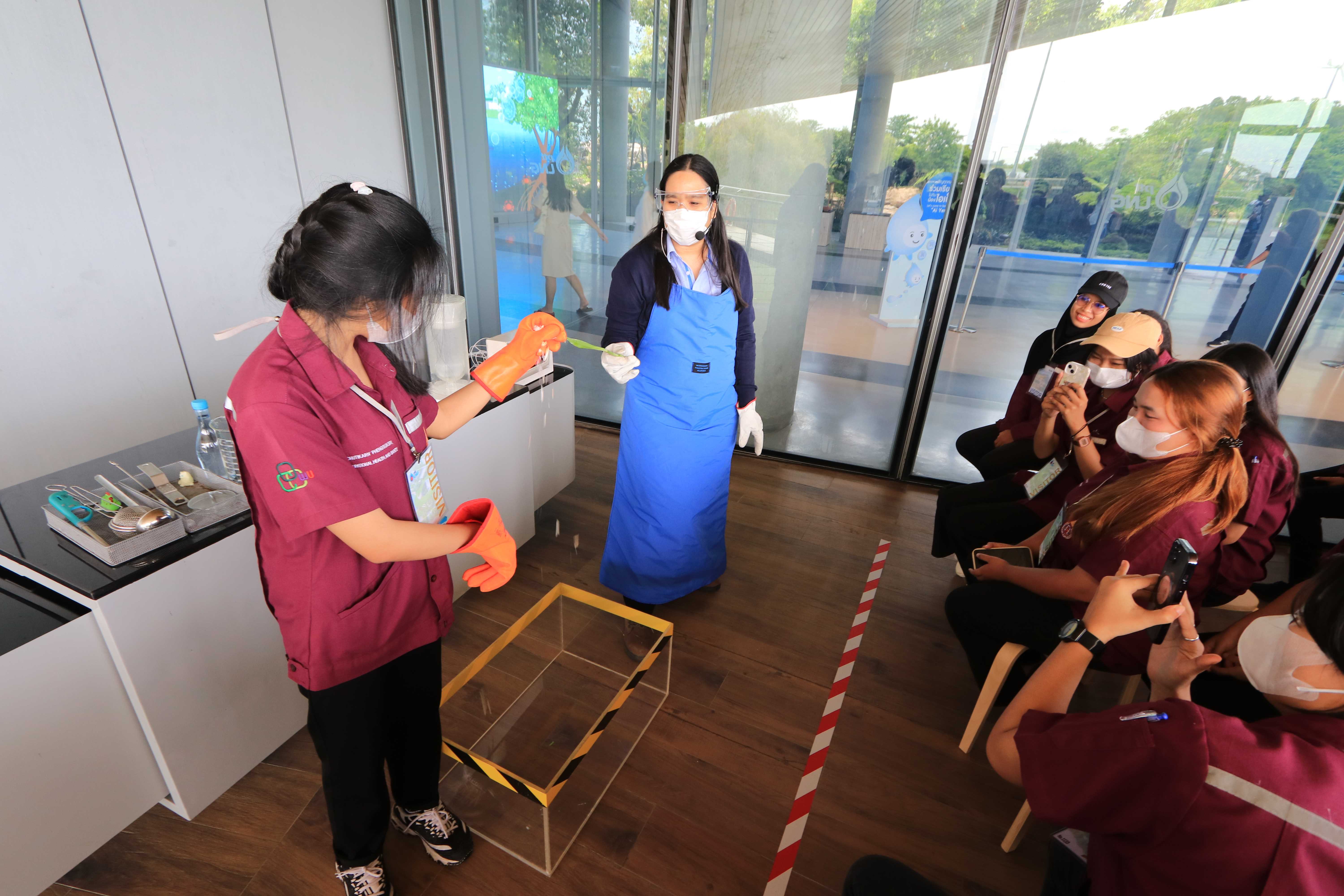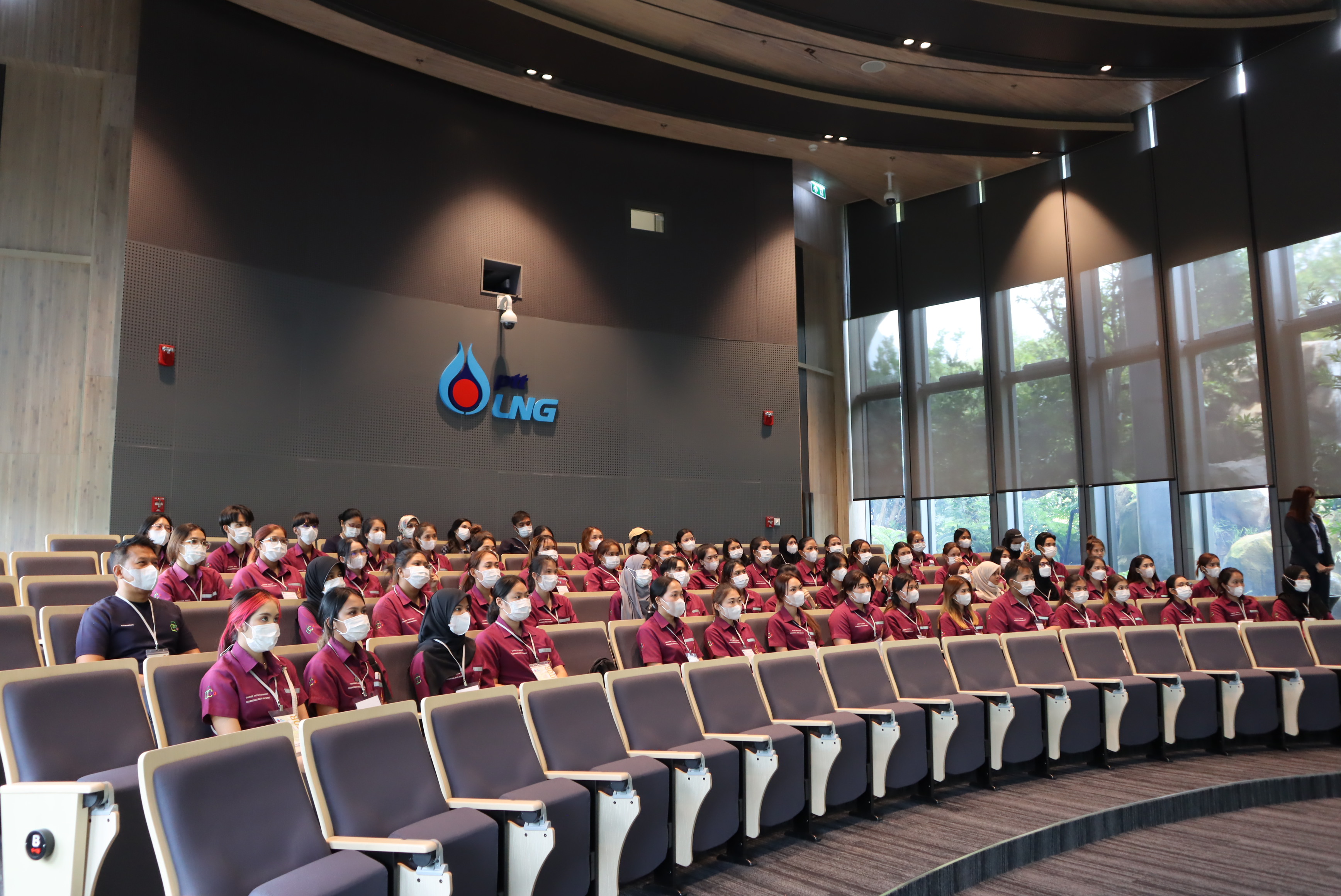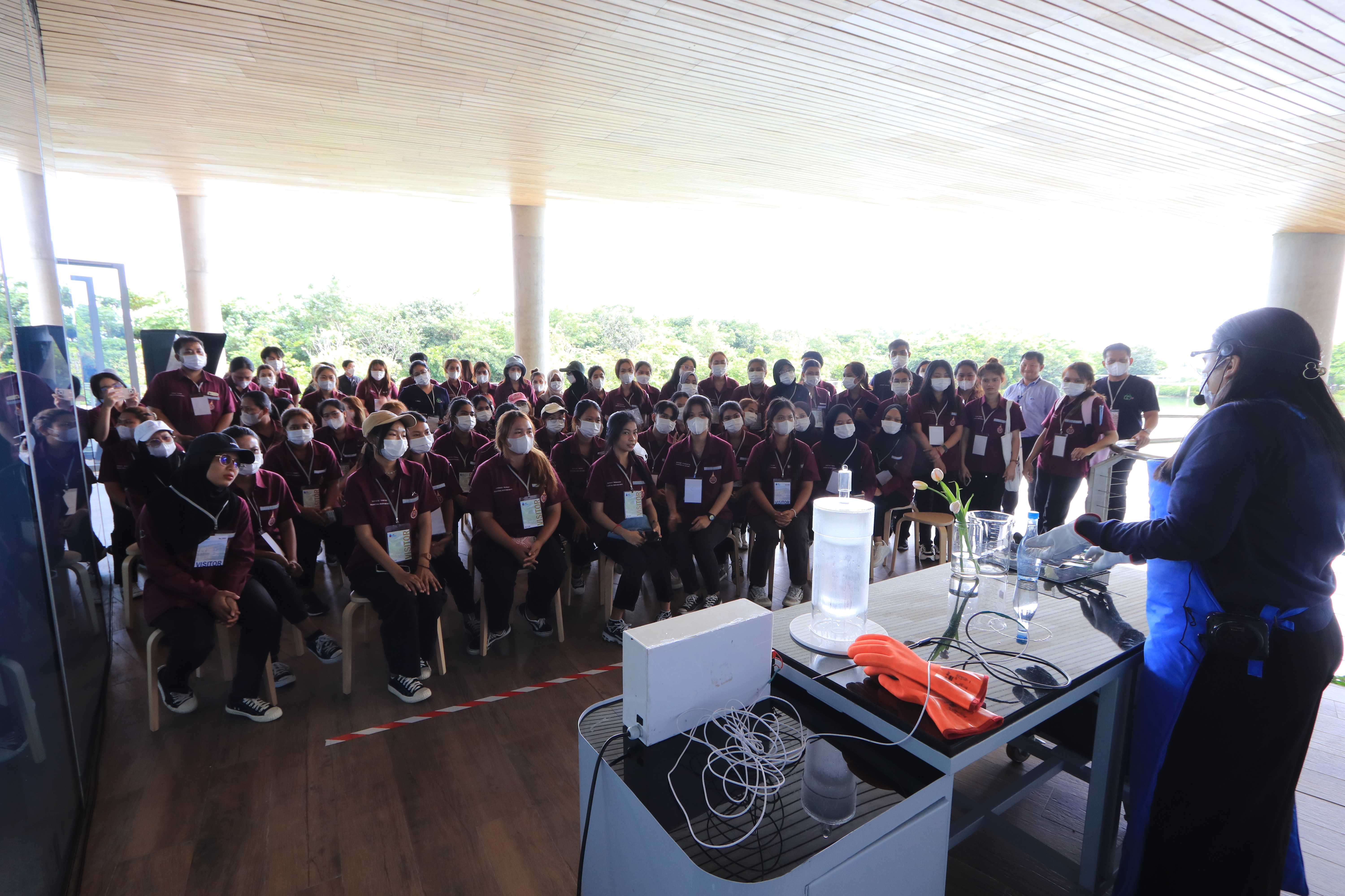 วันที่ 7 มิถุนายน 2566 เวลา 14.00 น. คุณนรา โตแย้ม ผู้จัดการส่วนสื่อสารองค์กรและกิจการเพื่อสังคม PTTLNG ให้การต้อนรับคณะนักศึกษา คณาจารย์ บุคลากร สาขาอาชีวอนามัยและความปลอดภัย หลักสูตรวิทยาศาตรบัณฑิต มหาวิทยาลัยวลัยลักษณ์ จำนวน 82 คน ณ ห้องออดิทอเรียม สถานีแอลเอ็นจี มาบตาพุด แห่งที่ 2 ในโอกาสเยี่ยมชม PTTLNG ณ ห้องออดิทอเรียม สถานีแอลเอ็นจี มาบตาพุด แห่งที่ 2 โดยคุณจุฑารัตน์ พิทักษ์วาทิน พนักงานมวลชนสัมพันธ์ ได้บรรยายภาพรวมการดำเนินธุรกิจของ PTTLNG และรับชมสาธิตคุณสมบัติก๊าซธรรมชาติเหลว หลังจากนั้นได้เข้าเยี่ยมชม ศูนย์ควบคุมการปฏิบัติการ (Central Control Room) พร้อมทั้งเยี่ยมชมไม้เมืองหนาว ภายในอาคารนิทรรศน์พรรณพฤกษา ซึ่งมีการออกแบบให้ใช้ประโยชน์จากความเย็นในกระบวนการผลิต LNG ให้เกิดประโยชน์สูงสุด