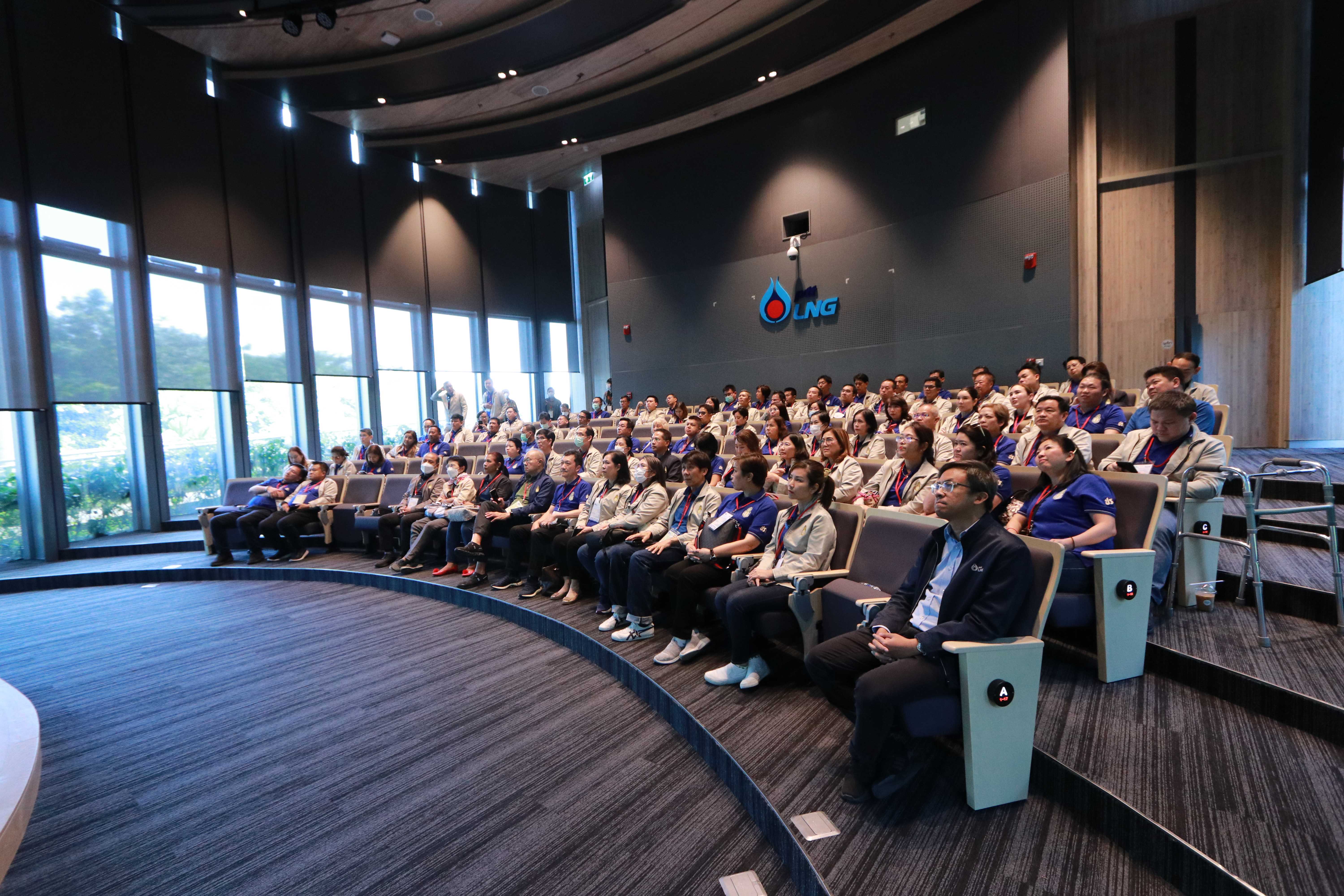 วันที่ 16 มิถุนายน 2566 เวลา 14.00 น. คุณทศพล โสภโณวงศ์ รองกรรมการผู้จัดการใหญ่ปฏิบัติการ โครงสร้างการบริหารสถานีแอลเอ็นจี มาบตาพุด แห่งที่ 2 (LMPT2) ให้การต้อนรับ ข้าราชการระดับสูง อาจารย์มหาวิทยาลัย ผู้นำชุมชน จากหลักสูตรประกาศนียบัตรชั้นสูงการบริหารงานภาครัฐและกฎหมายมหาชน (ปรม.) รุ่นที่ 22 สถาบันพระปกเกล้า จำนวน 154 คน ในโอกาสเยี่ยมชม PTTLNG ณ อาคารนิทรรศน์พรรณพฤกษา โดยได้รับฟังบรรยายสรุป ”ภาพรวมการดำเนินธุรกิจของ PTTLNG" จากคุณนฤนาถ หุ่นเจริญ ผู้จัดการส่วนคุณภาพ ความปลอดภัย อาชีวอนามัยและสิ่งแวดล้อม พร้อมทั้งรับชมการสาธิตคุณสมบัติก๊าซธรรมชาติเหลว และเข้าเยี่ยมชมศูนย์ควบคุมการปฏิบัติการ (Central Control Room)  หลังจากนั้นได้เยี่ยมชมไม้เมืองหนาว ภายใน Climatic Dome ซึ่งนำพลังงานความเย็นก๊าซธรรมชาติเหลว (LNG) มาใช้ในระบบปรับอากาศ อาคารนิทรรศน์พรรณพฤกษา