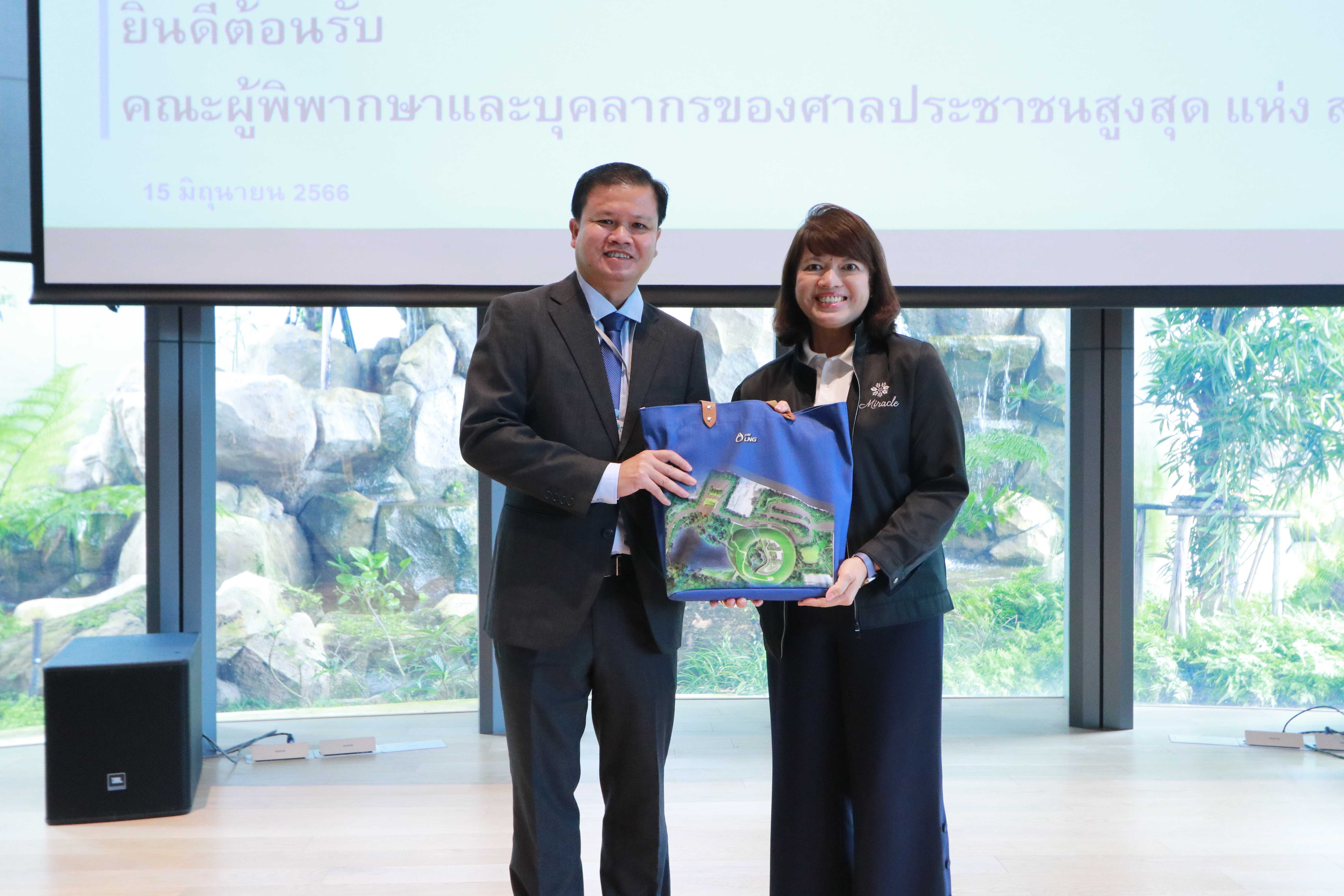 วันที่ 15 มิถุนายน 2566 เวลา 13.00 น. คุณปาจรีย์ ลพสัตถยุทธ รองกรรมการผู้จัดการใหญ่บริหารองค์กร ให้การต้อนรับ ท่านบุนขวาง ทะวีสัก รองประธานศาลประชาชนสูงสุดแห่ง สปป.ลาว และ ท่านสุชาติ มงคลเลิศลพ รองประธานศาลปกครองสูงสุด คณะตุลาการศาลปกครองไทย พร้อมคณะ จำนวน 40 คน ในโอกาสเยี่ยมชม PTTLNG ณ ห้องออดิทอเรียม สถานีแอลเอ็นจี มาบตาพุด แห่งที่ 2 โดยคณะฯ ได้รับชมวิดิทัศน์แนะนำบริษัท PTTLNG และ อาคารนิทรรศน์พรรณพฤกษา ตลอดจน เยี่ยมชมไม้เมืองหนาว ภายในอาคารนิทรรศน์พรรณพฤกษา ที่นำพลังงานความเย็นก๊าซธรรมชาติเหลว (LNG) มาใช้ในระบบปรับอากาศภายใน Climatic Dome