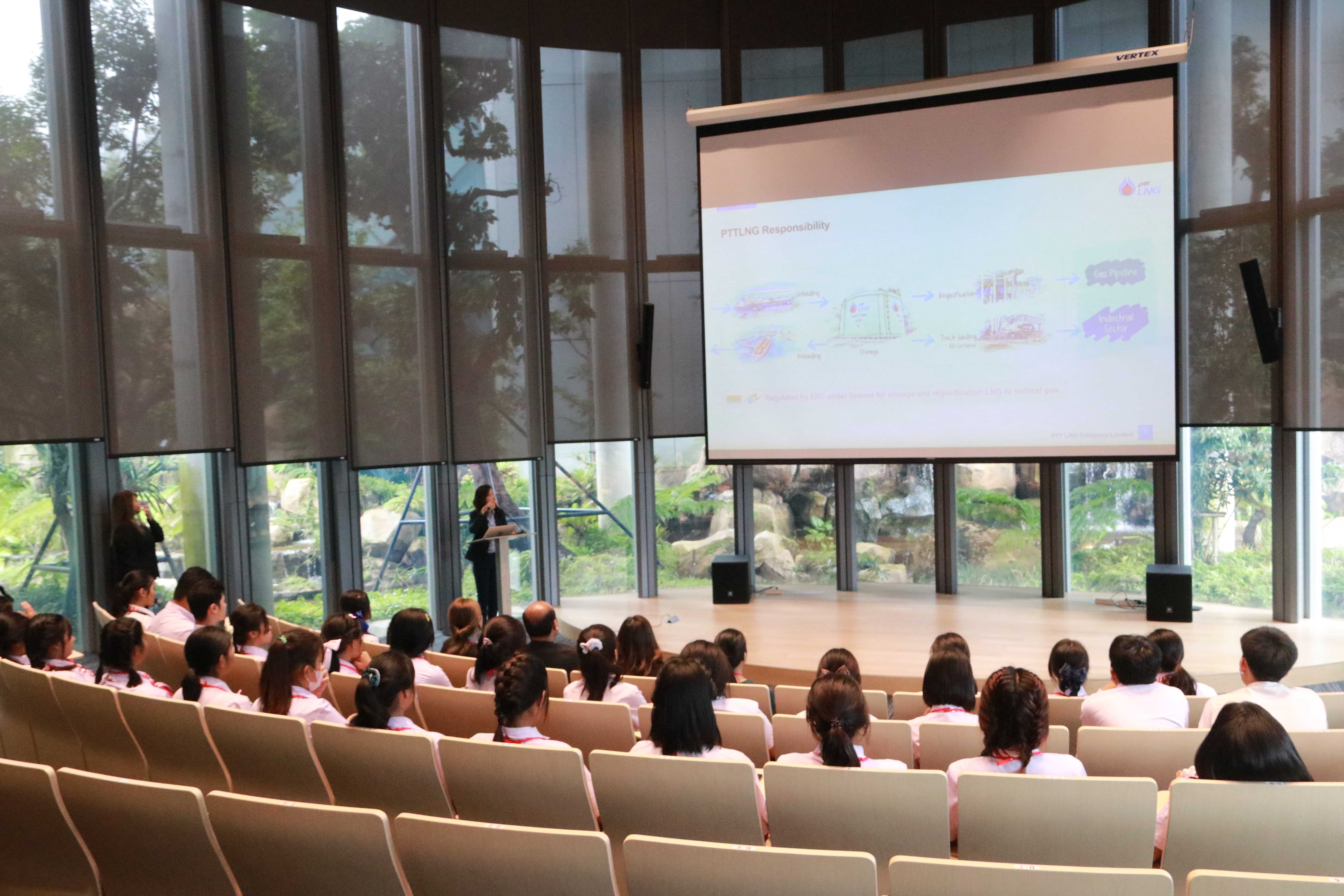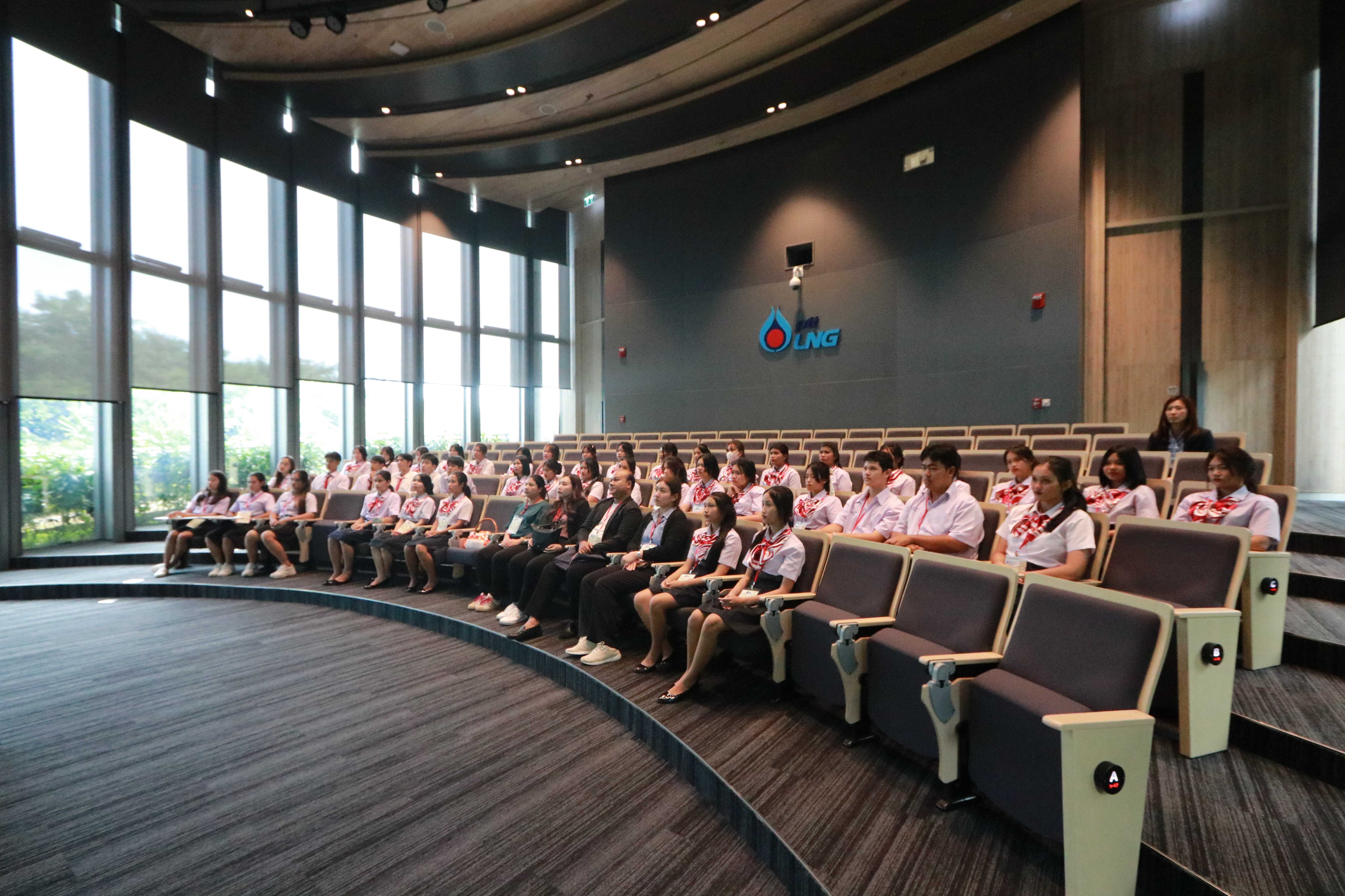 วันที่ 11 กรกฎาคม 2566 เวลา 13.30 น. PTTLNG ให้การต้อนรับ คณะครูและนักศึกษา สาขาวิชาการโรงแรมและการท่องเที่ยว สถาบันอาชีวศึกษาภาคตะวันออก วิทยาลัยเทคนิคตราด จำนวน 50 คน ในโอกาสเยี่ยมชม PTTLNG โดยคุณจุฑารัตน์ พิทักษ์วาทิน พนักงานมวลชนสัมพันธ์ ได้บรรยายสรุป“ภาพรวมการดำเนินธุรกิจ PTTLNG” ณ ห้องออดิทอเรียม สถานีแอลเอ็นจี มาบตาพุด แห่งที่ 2 หลังจากนั้น ได้เข้าเยี่ยมชมไม้เมืองหนาว ภายในอาคารนิทรรศน์ พรรณพฤกษา ซึ่งมีการนำพลังงานความเย็นของก๊าซธรรมชาติเหลว LNG มาใช้ประโยชน์กับระบบปรับอากาศภายใน Climatic Dome เสริมสร้างความรู้การศึกษาดูงานในสถานที่จริง ซึ่งอาคารนิทรรศน์ พรรณพฤกษา นับเป็นหนึ่งในสถานที่ท่องเที่ยวสำคัญในพื้นที่ จังหวัดระยอง สร้างแรงบันดาลใจให้นักศึกษาในการประกอบอาชีพ ทางด้านอุตสาหกรรมบริการในอนาคต