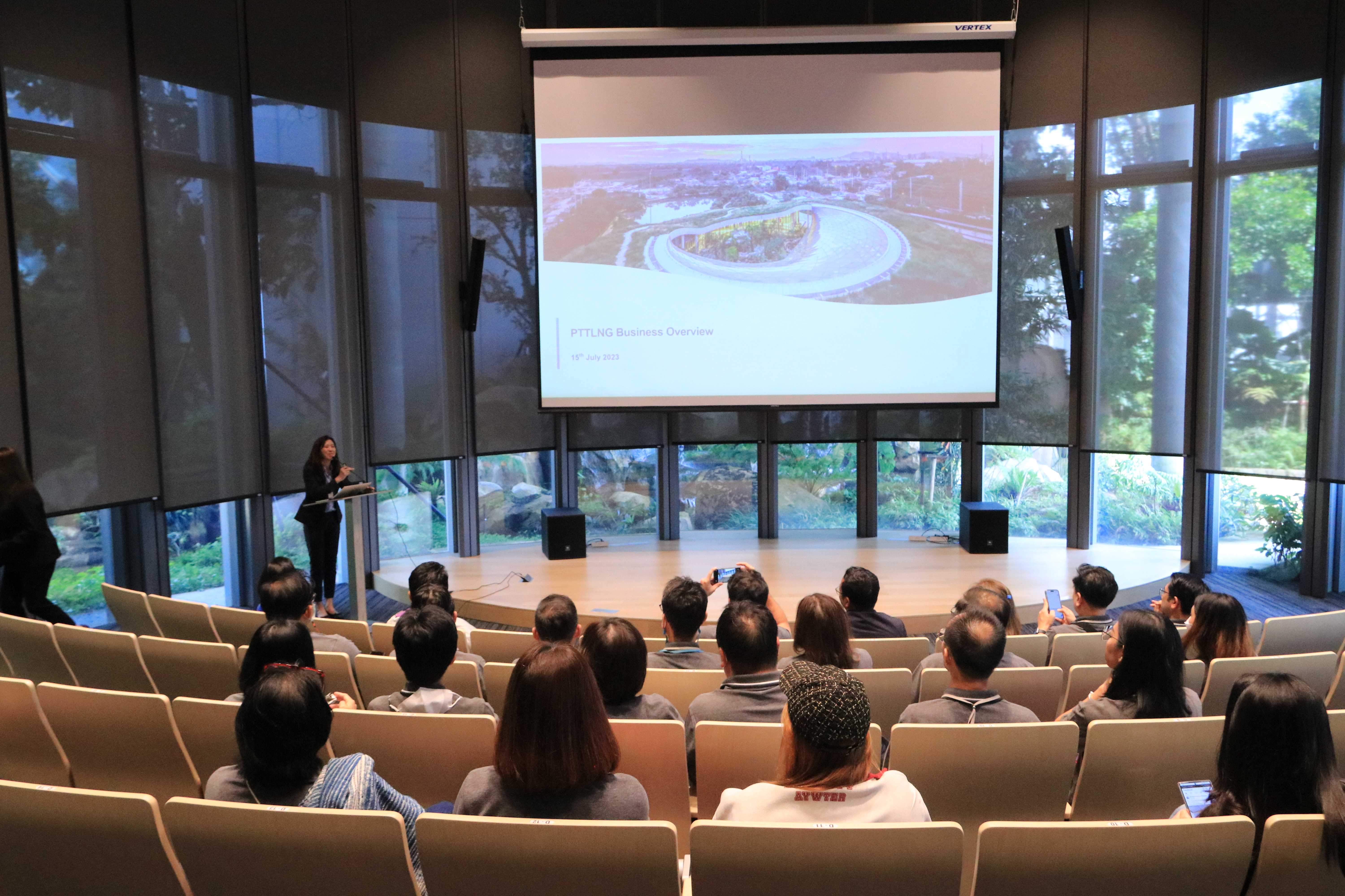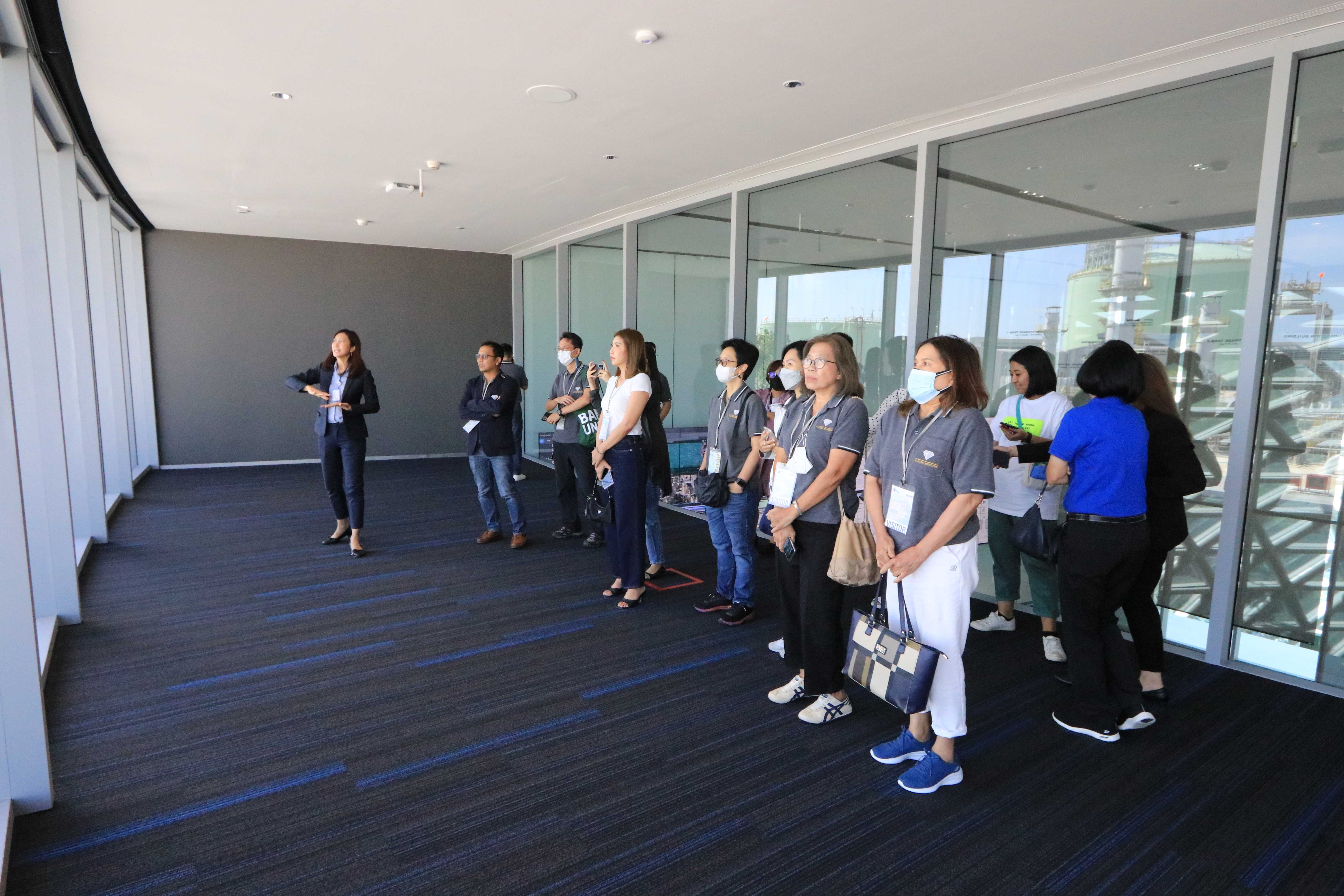 วันที่ 15 กรกฎาคม 2566 เวลา 13.30 น. PTTLNG ให้การต้อนรับ สมาชิกสมาคมศิษย์เก่ามหาวิทยาลัยกรุงเทพ จำนวน 30 คน ในโอกาสเยี่ยมชม PTTLNG โดยคุณจุฑารัตน์ พิทักษ์วาทิน พนักงานมวลชนสัมพันธ์ ได้บรรยายสรุป“ภาพรวมการดำเนินธุรกิจ PTTLNG” ณ ห้องออดิทอเรียม สถานีแอลเอ็นจี มาบตาพุด แห่งที่ 2 หลังจากนั้น ได้เข้าเยี่ยมชมศูนย์ควบคุมการปฏิบัติการส่วนกลาง (Central Control Room) พร้อมทั้งเยี่ยมชมโครงการไม้เมืองหนาว ภายใน Climatic Dome อาคารนิทรรศน์พรรณพฤกษา ที่นำพลังงานความเย็น ก๊าซธรรมชาติเหลว (LNG) มาใช้ประโยชน์ กับระบบปรับอากาศ เสริมสร้างความรู้การศึกษาดูงานอาคาร นิทรรศน์พรรณพฤกษา ซึ่งเป็นอาคารประหยัดพลังงาน และนับเป็นหนึ่งในสถานที่ท่องเที่ยวสำคัญในพื้นที่จังหวัดระยอง