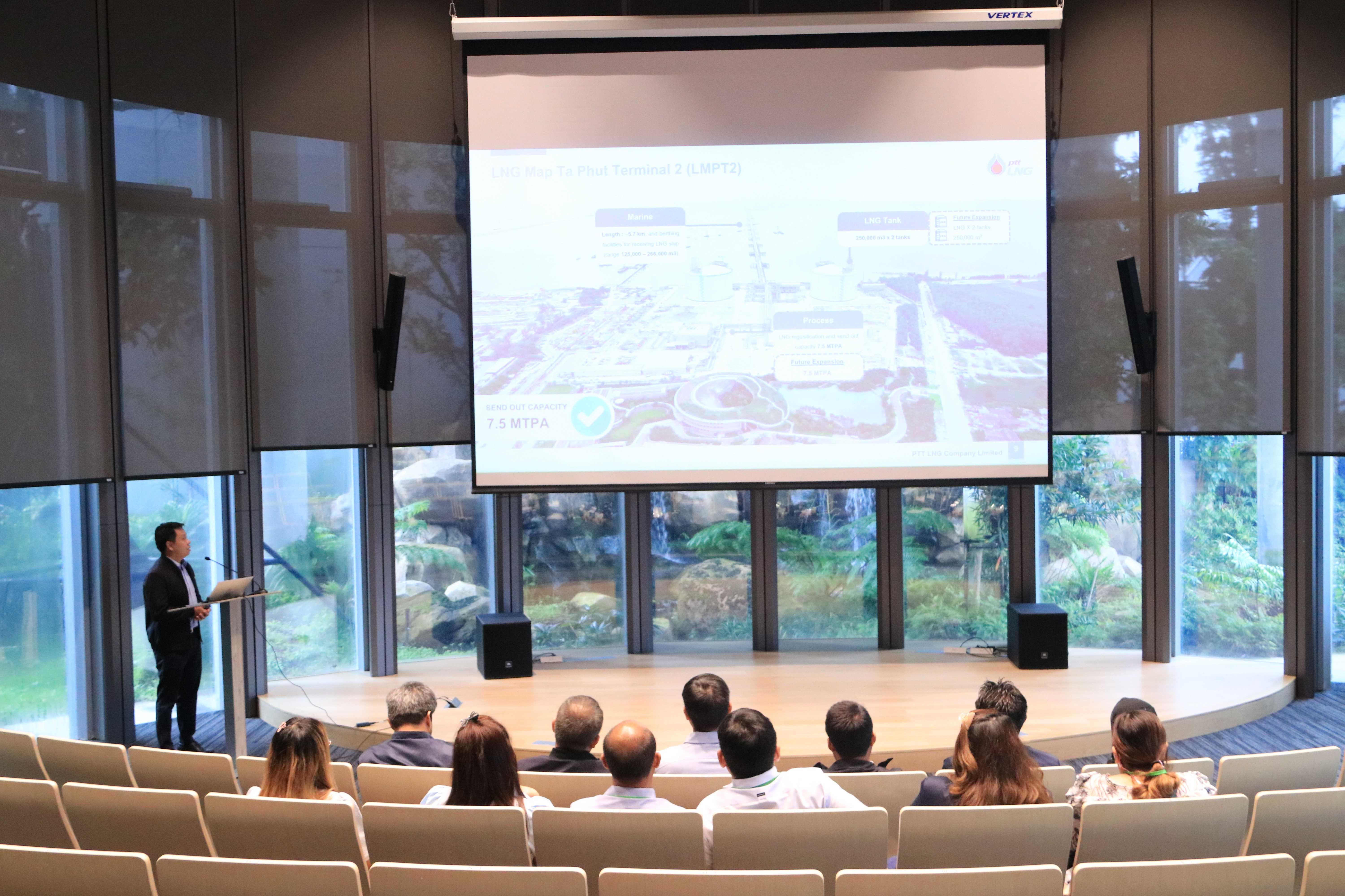 วันที่ 21 กรกฎาคม 2566 เวลา 9.00 น. คุณทศพล โสภโณวงศ์ รองกรรมการผู้จัดการใหญ่ปฏิบัติการ โครงสร้างการบริหาร สถานีแอลเอ็นจี มาบตาพุด แห่งที่ 2 PTTLNG ให้การต้อนรับคุณเพทาย หมุดธรรม หัวหน้าผู้ตรวจราชการกระทรวงพลังงาน และคณะ ในโอกาสเยี่ยมชมการดำเนินงานสถานีรับ-จ่ายก๊าซธรรมชาติเหลว และการใช้พลังงานความเย็นที่เกิดจากกระบวนการเปลี่ยนสถานะ LNG มาใช้ในการผลิตไม้เมืองหนาว ตามกำหนดการตรวจราชการรอบที่ 2 (Monitoring and Evaluation) เขตตรวจราชการที่ 8 โดยคุณนรา โตแย้ม ผู้จัดการส่วนสื่อสารองค์กรและกิจการเพื่อสังคม ได้บรรยายสรุป“ภาพรวมการดำเนินธุรกิจ PTTLNG” ณ ห้องออดิทอเรียม สถานีแอลเอ็นจี มาบตาพุด แห่งที่ 2 หลังจากนั้นได้เข้าเยี่ยมชม ศูนย์ควบคุมการปฏิบัติการส่วนกลาง (Central Control Room) พร้อมทั้งเยี่ยมชมไม้เมืองหนาว ภายใน Climatic Dome อาคารนิทรรศน์พรรณพฤกษา ที่นำพลังงานความเย็น ก๊าซธรรมชาติเหลว (LNG) มาใช้ประโยชน์กับระบบปรับอากาศ
