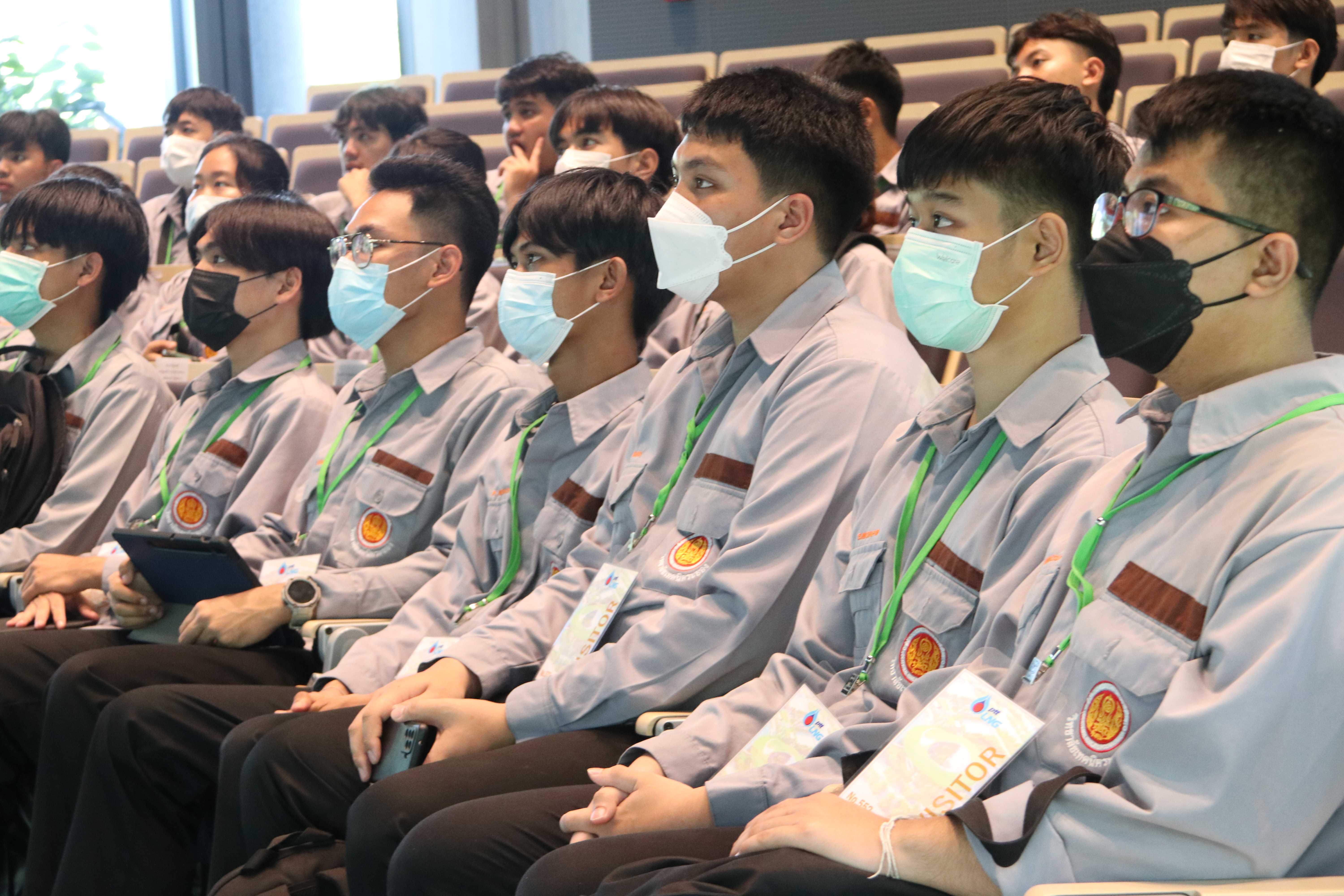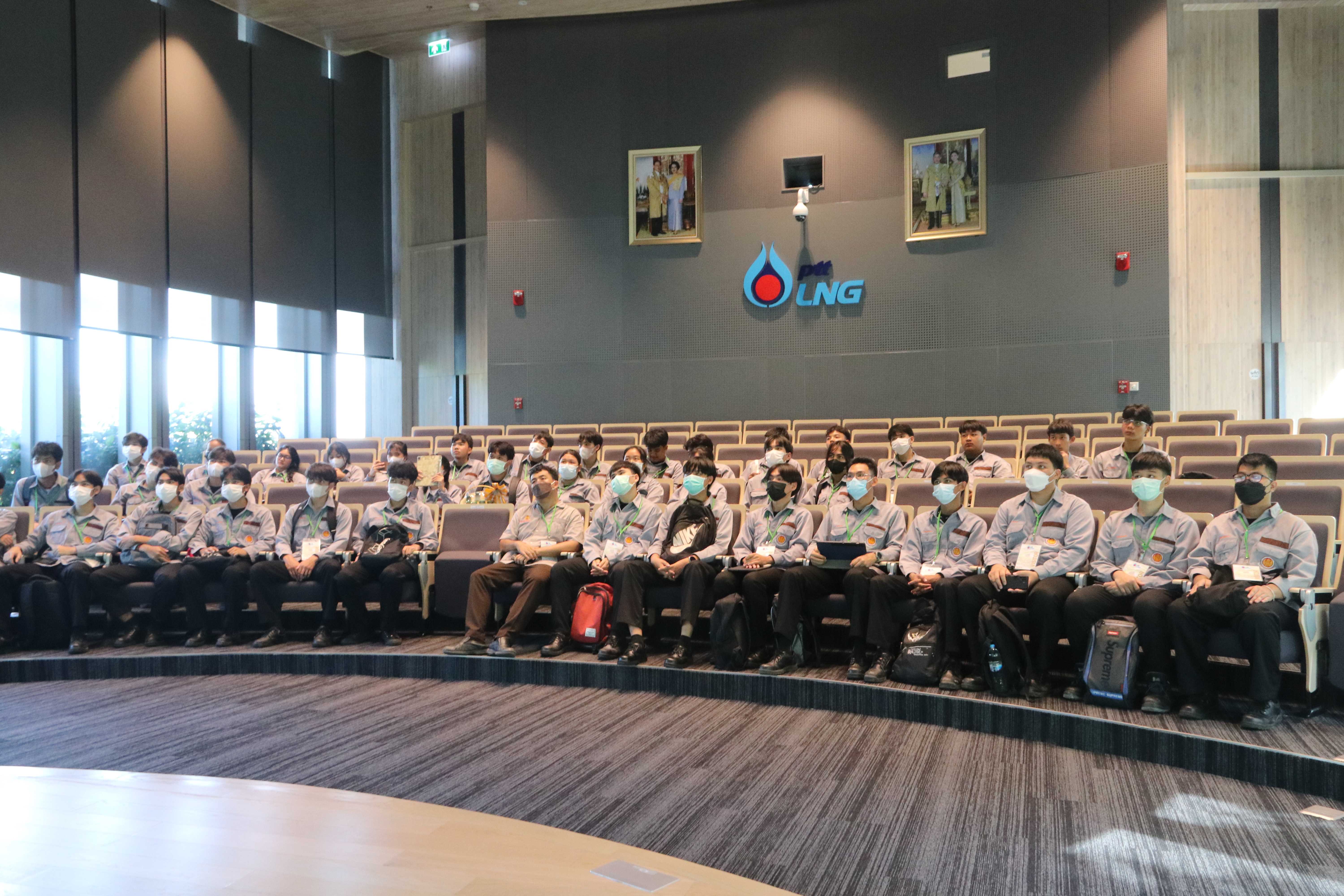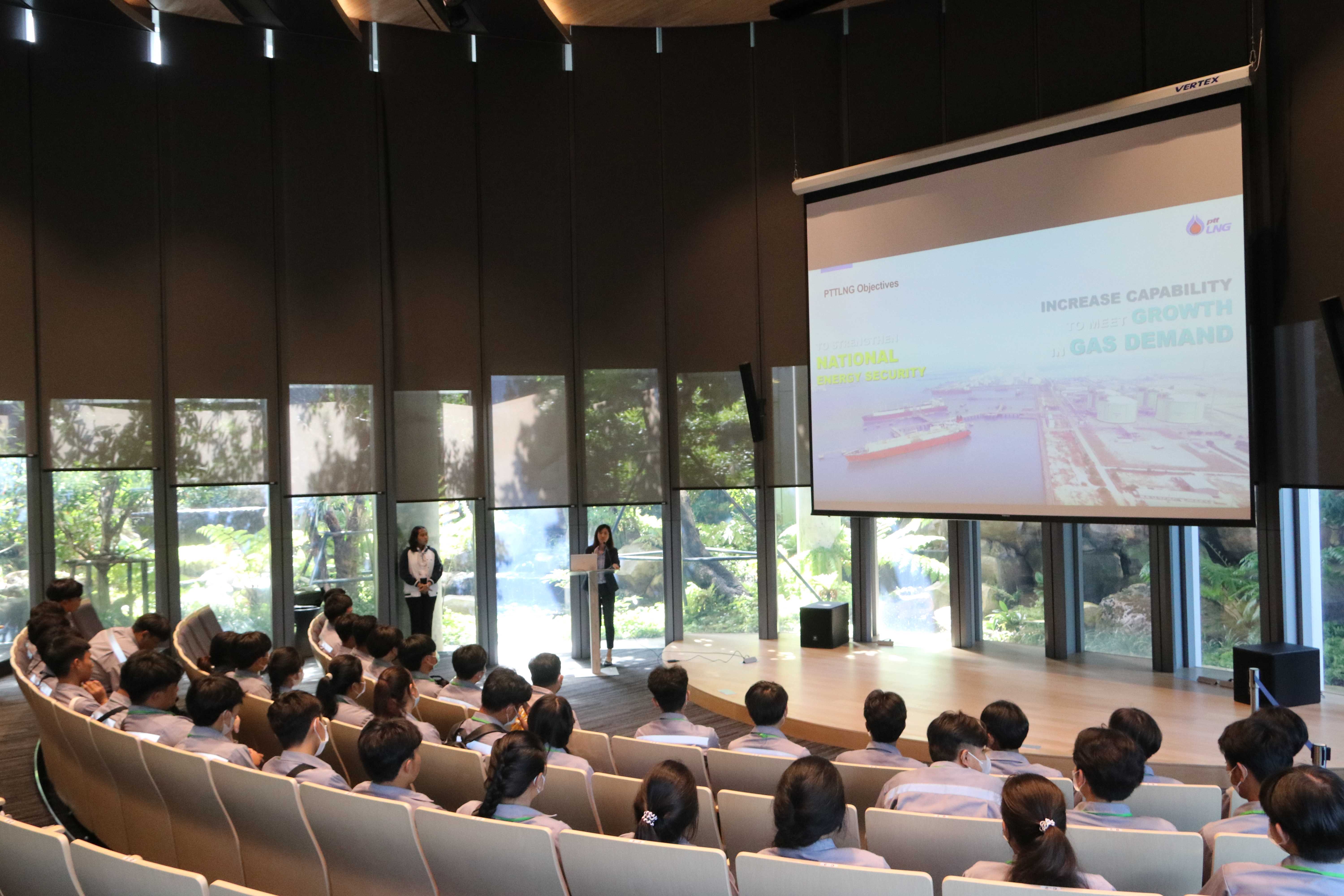 วันที่ 9 และ 10  สิงหาคม 2566 เวลา 09.30 น. PTTLNG ให้การต้อนรับ คณะนักศึกษา ชมรมวิชาชีพปิโตรเคมี วิทยาลัยเทคนิคระยอง จำนวน 80 คน ในโอกาสเยี่ยมชม PTTLNG เพื่อศึกษาความรู้ด้านการจัดเก็บและกระบวนการรับจ่ายก๊าซธรรมชาติเหลว (LNG) และนำความรู้ไปพัฒนาการเรียนการสอน ให้มีประสิทธิภาพมากขึ้น โดยคุณจุฑารัตน์ พิทักษ์วาทิน พนักงานมวลชนสัมพันธ์ ได้บรรยายสรุปภาพรวมการดำเนินธุรกิจ PTTLNG” ณ ห้องออดิทอเรียม สถานีแอลเอ็นจี มาบตาพุด แห่งที่ 2 หลังจากนั้น ได้เข้าเยี่ยมชม ศูนย์ควบคุมการปฏิบัติการส่วนกลาง (Central Control Room) และเยี่ยมชมไม้เมืองหนาว ภายใน Climatic Dome อาคารนิทรรศน์พรรณพฤกษา ที่นำพลังงานความเย็น ก๊าซธรรมชาติเหลว (LNG) มาใช้ประโยชน์กับระบบปรับอากาศ