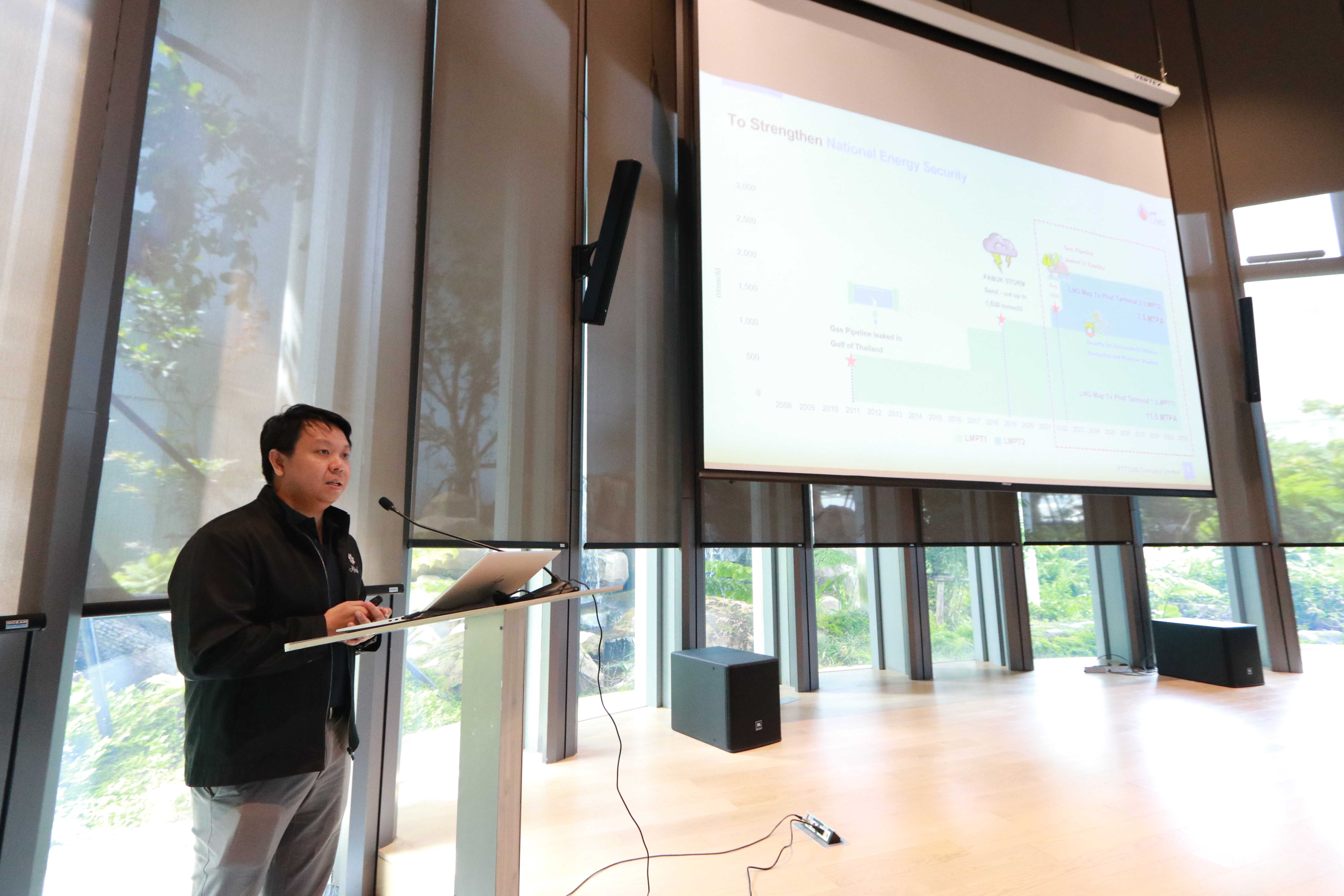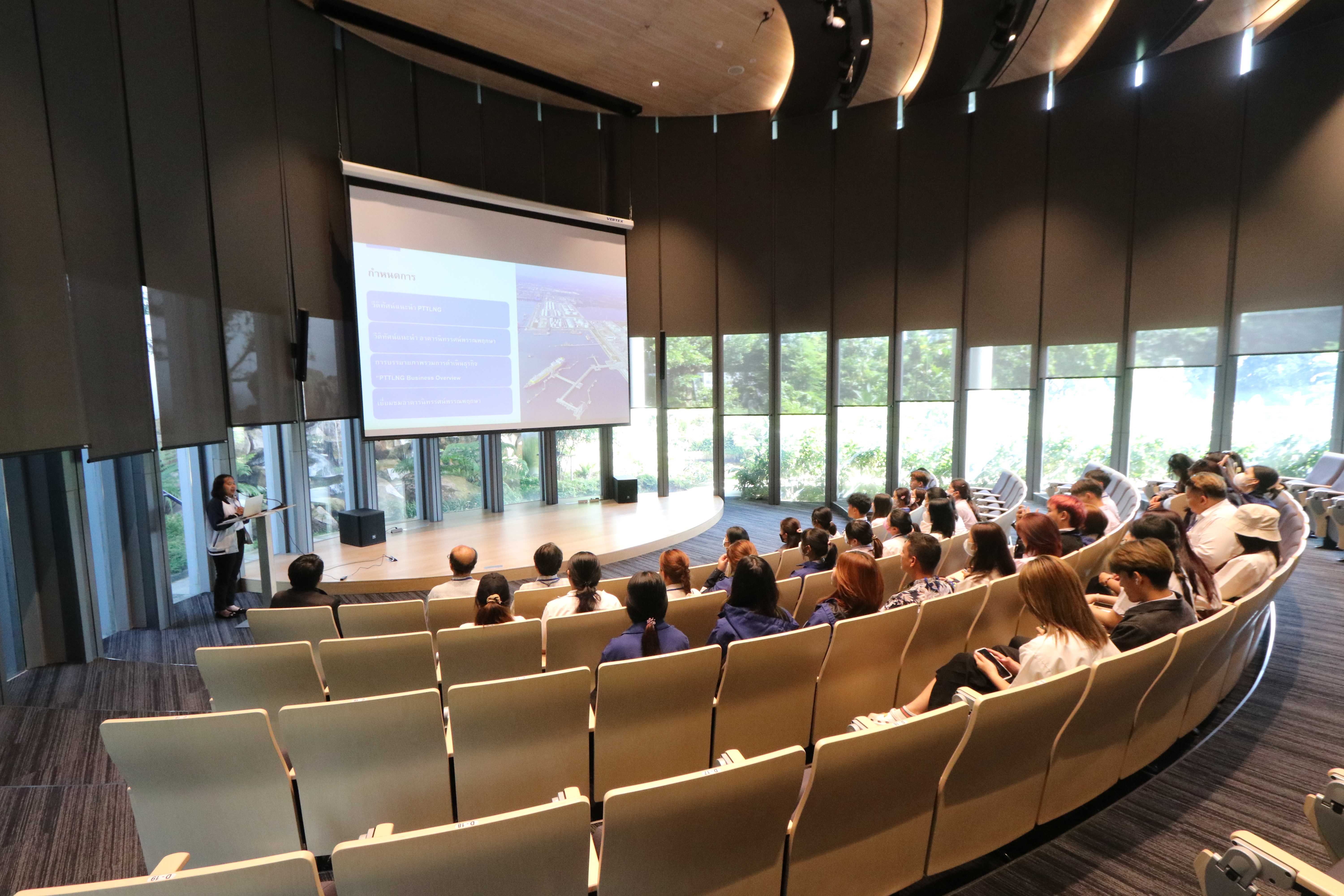 วันที่ 10 สิงหาคม 2566 เวลา 14.00 น.คุณนรา โตแย้ม ผู้จัดการส่วนสื่อสารองค์กรและกิจการเพื่อสังคม PTTLNG ให้การต้อนรับและบรรยายให้กับคณาจารย์และนักศึกษา มหาวิทยาลัยมหาสารคาม จำนวน 40 คน ในโอกาสเยี่ยมชม PTTLNG เพื่อศึกษาข้อมูลกระบวนการรับจ่ายก๊าซธรรมชาติเหลว นำไปประยุกต์ใช้ในการศึกษา โดยได้รับฟังบรรยายสรุป “ภาพรวมการดำเนินธุรกิจ PTTLNG” ณ ห้องออดิทอเรียม สถานีแอลเอ็นจี มาบตาพุด แห่งที่ 2 หลังจากนั้นได้เข้าเยี่ยมชม ศูนย์ควบคุมการปฏิบัติการส่วนกลาง (Central Control Room) พร้อมทั้งเยี่ยมชมไม้เมืองหนาว ภายใน Climatic Dome อาคารนิทรรศน์พรรณพฤกษา ที่นำพลังงานความเย็น ก๊าซธรรมชาติเหลว (LNG) มาใช้ประโยชน์กับระบบปรับอากาศ
