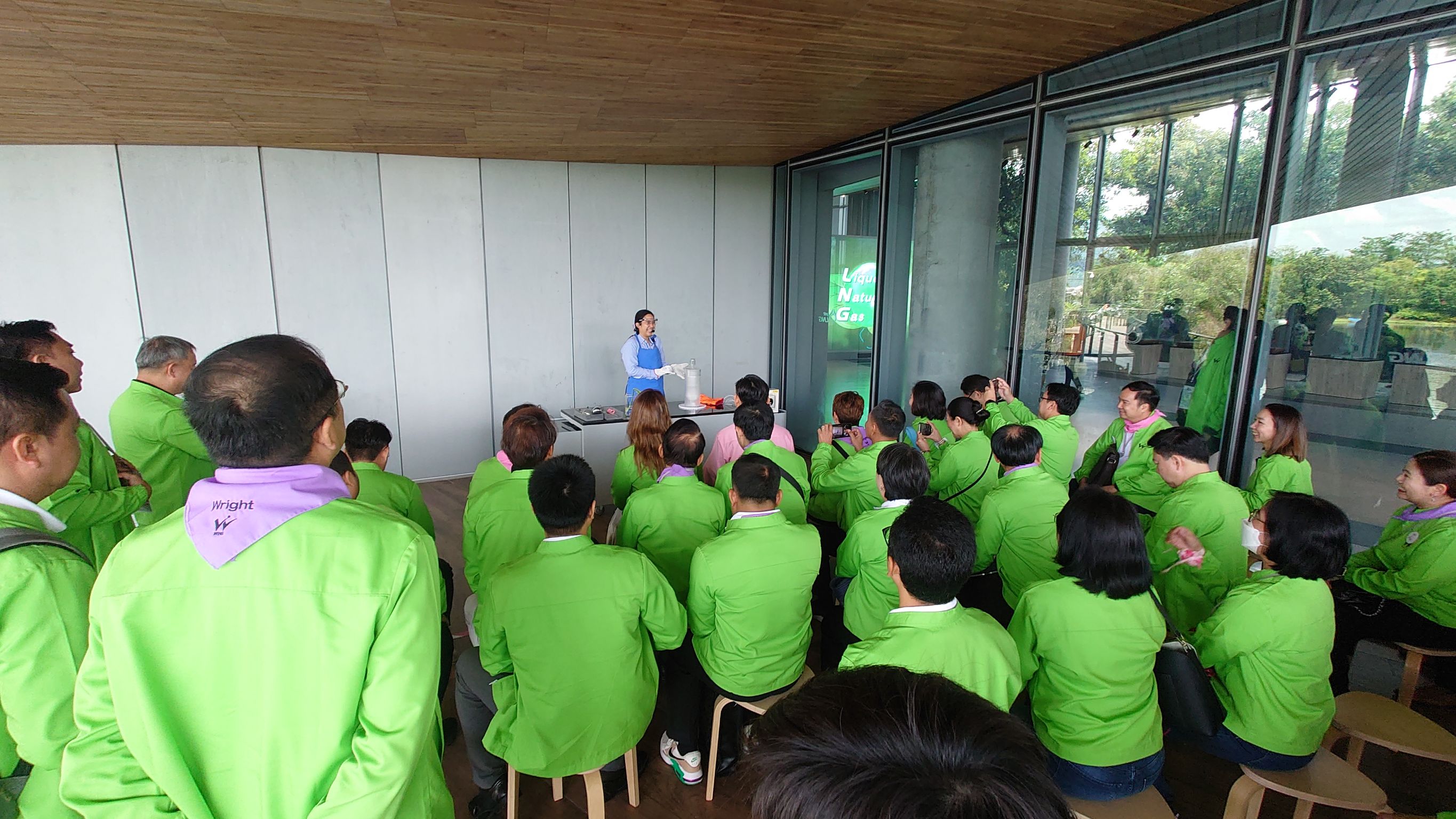 วันที่ 28 กันยายน 2566 เวลา 9.30 น. คุณรัตติกูล ปิยะวงค์วาณิชย์ กรรมการผู้จัดการใหญ่ PTTLNG ให้การต้อนรับคณะผู้เข้าร่วมโครงการพัฒนาเครือข่ายและศักยภาพของผู้บริหารระดับสูง ของกระทรวงการอุดมศึกษา วิทยาศาสตร์ วิจัยและนวัตกรรม (หลักสูตร WiNS รุ่นที่ 4) จำนวน 180 คน ในโอกาสเยี่ยมชม PTTLNG โดยคุณรัตติกูล ปิยะวงค์วาณิชย์ ได้บรรยายภาพรวมการดำเนินธุรกิจ PTTLNG ณ ห้องออดิทอเรียม สถานีแอลเอ็นจี มาบตาพุด แห่งที่ 2 หลังจากนั้นได้รับชมการสาธิต คุณสมบัติก๊าซธรรมชาติเหลว และเยี่ยมชมศูนย์ควบคุมการปฏิบัติการ ส่วนกลาง (Central Control Room) พร้อมทั้งเยี่ยมชมไม้เมืองหนาว ภายในอาคารนิทรรศน์พรรณพฤกษา เสริมสร้างความรู้ ความเข้าใจ การดำเนินธุรกิจ สถานีรับจ่ายก๊าซธรรมชาติเหลว ของ PTTLNG ที่สร้างเสถียรภาพความมั่นคงด้านพลังงาน ให้กับประเทศ รวมถึงการนำพลังงานความเย็นของก๊าซธรรมชาติเหลว LNG มาใช้ประโยชน์กับระบบปรับอากาศภายใน Climatic Dome