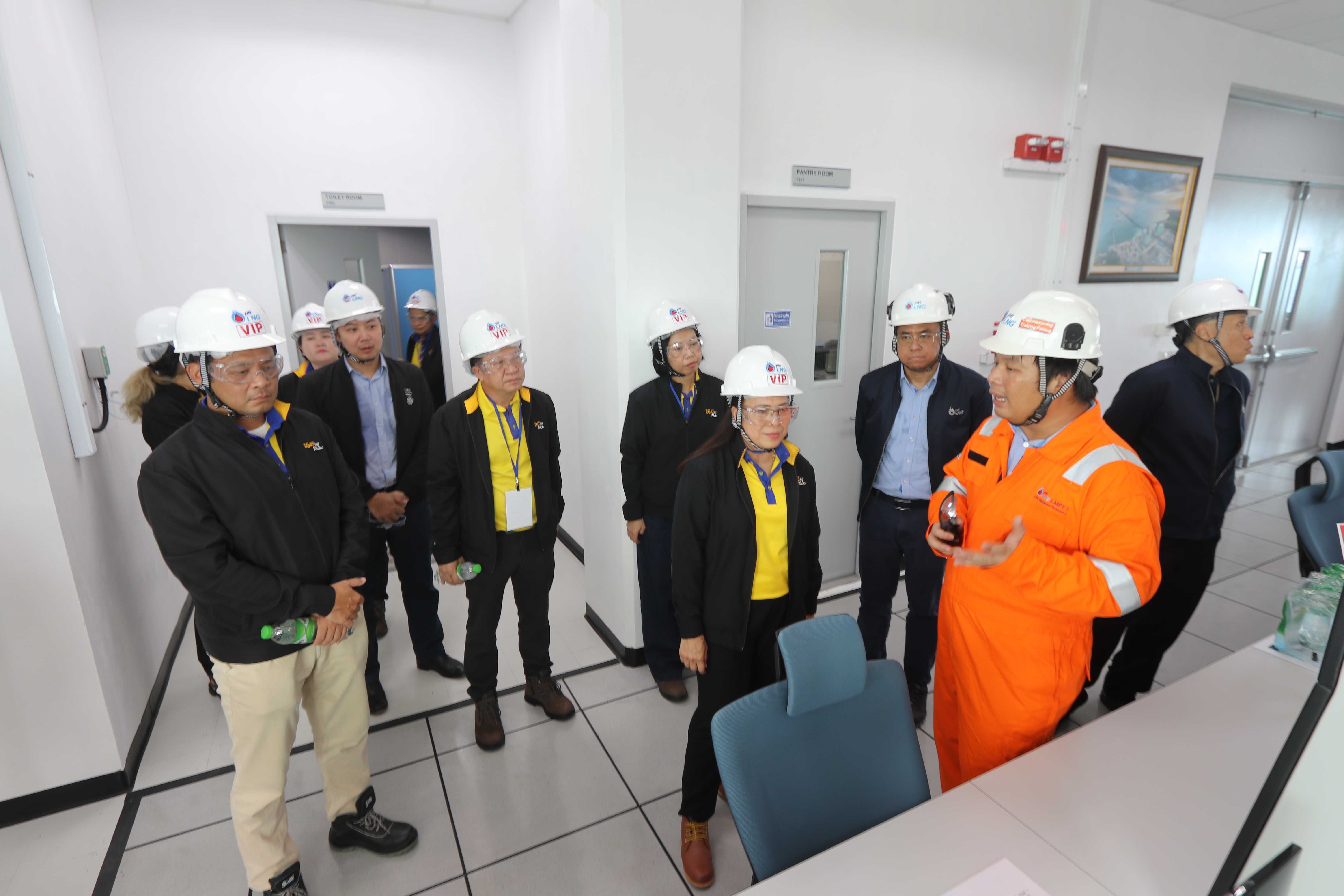 วันที่ 1 ตุลาคม 2566 เวลา 12.30 น. คุณทศพล โสภโณวงศ์ รองกรรมการผู้จัดการใหญ่ปฏิบัติการ และคุณระวิวัฒน์ เถลิงโชค รองกรรมการผู้จัดการใหญ่แผนกลยุทธ์และการเงิน PTTLNG ร่วมให้การต้อนรับ คณะผู้บริหาร การไฟฟ้าฝ่ายผลิตแห่งประเทศไทย ในโอกาสเยี่ยมชมการดำเนินงานรับเรือขนส่ง ก๊าซธรรมชาติเหลว (LNG) ซึ่งเป็นเรือลำแรกของ กฟผ. เทียบท่า สถานีแอลเอ็นจี มาบตาพุด แห่งที่ 2 (LMPT 2) PTTLNG โดย ดร.จิราพร ศิริคำ รองผู้ว่าการธุรกิจเกี่ยวเนื่อง รักษาการในตำแหน่งผู้ว่าการการไฟฟ้าฝ่ายผลิตแห่งประเทศไทย  (กฟผ.), คุณนิทัศน์ วรพนพิพัฒน์ รองผู้ว่าการเชื้อเพลิง และคุณนรินทร์ เผ่าวณิช ผู้ช่วยผู้ว่าการบริหารเชื้อเพลิง ศึกษาดูงานการขนส่งก๊าซธรรมชาติเหลว (LNG) ทางเรือ และเยี่ยมชม Jetty Control Room (JCR) หลังจากนั้นได้เยี่ยมชมศูนย์ควบคุมการปฏิบัติการส่วนกลาง (Central Control Room) ภายในอาคารนิทรรศน์พรรณพฤกษา และเยี่ยมชมไม้เมืองหนาว ซึ่งนำพลังงานความเย็นของก๊าซธรรมชาติเหลว  LNG มาใช้ประโยชน์กับระบบปรับอากาศภายใน Climatic Dome