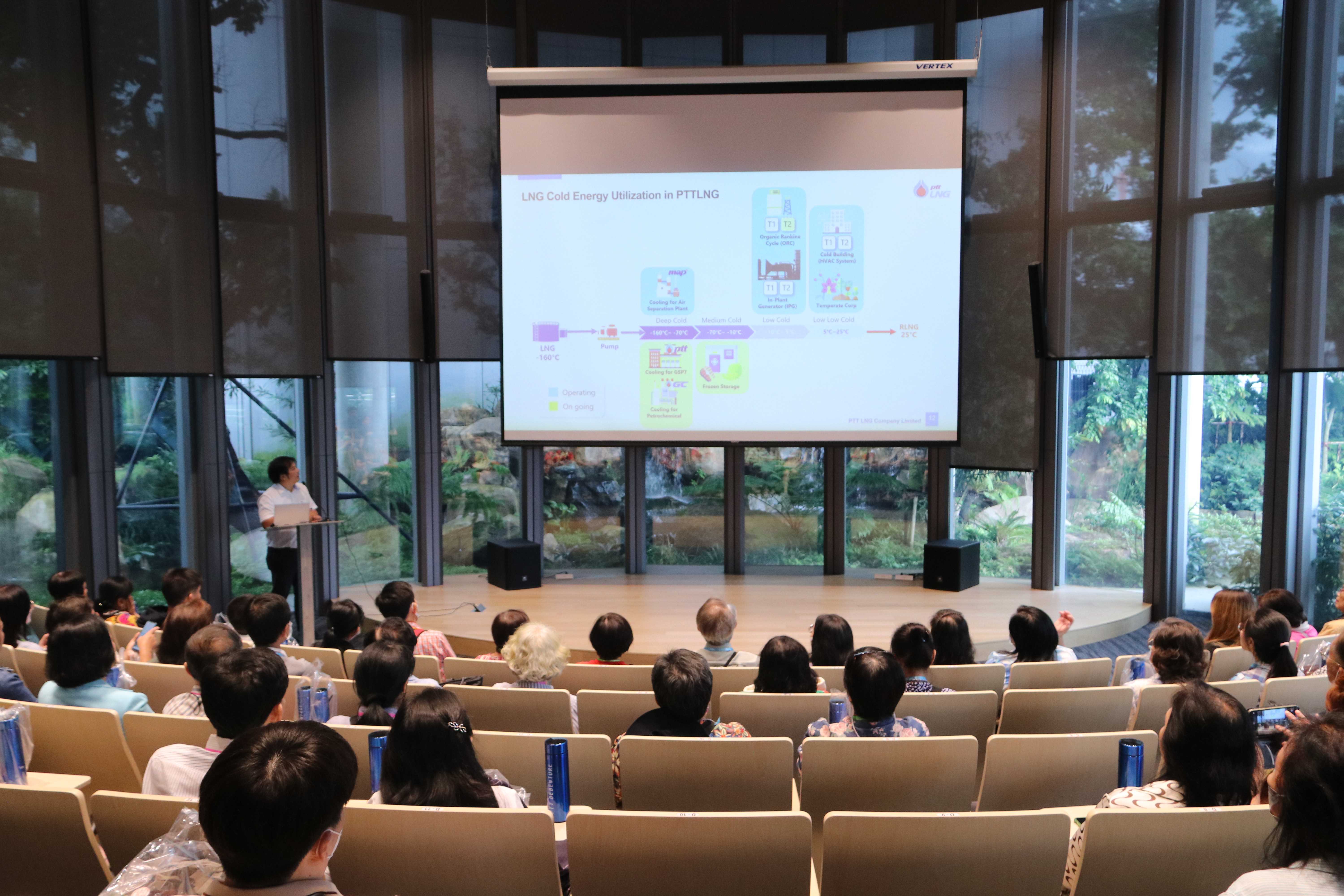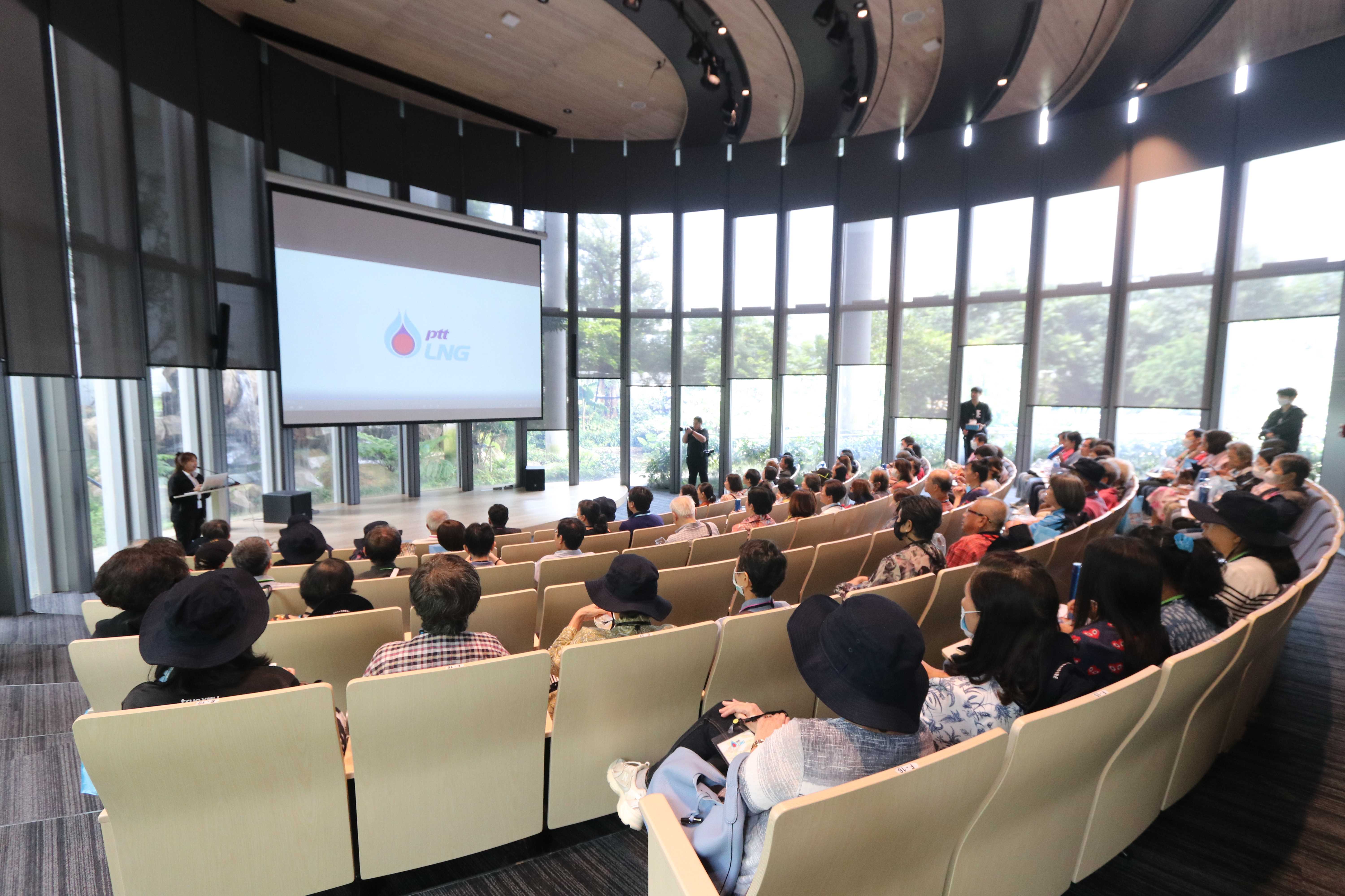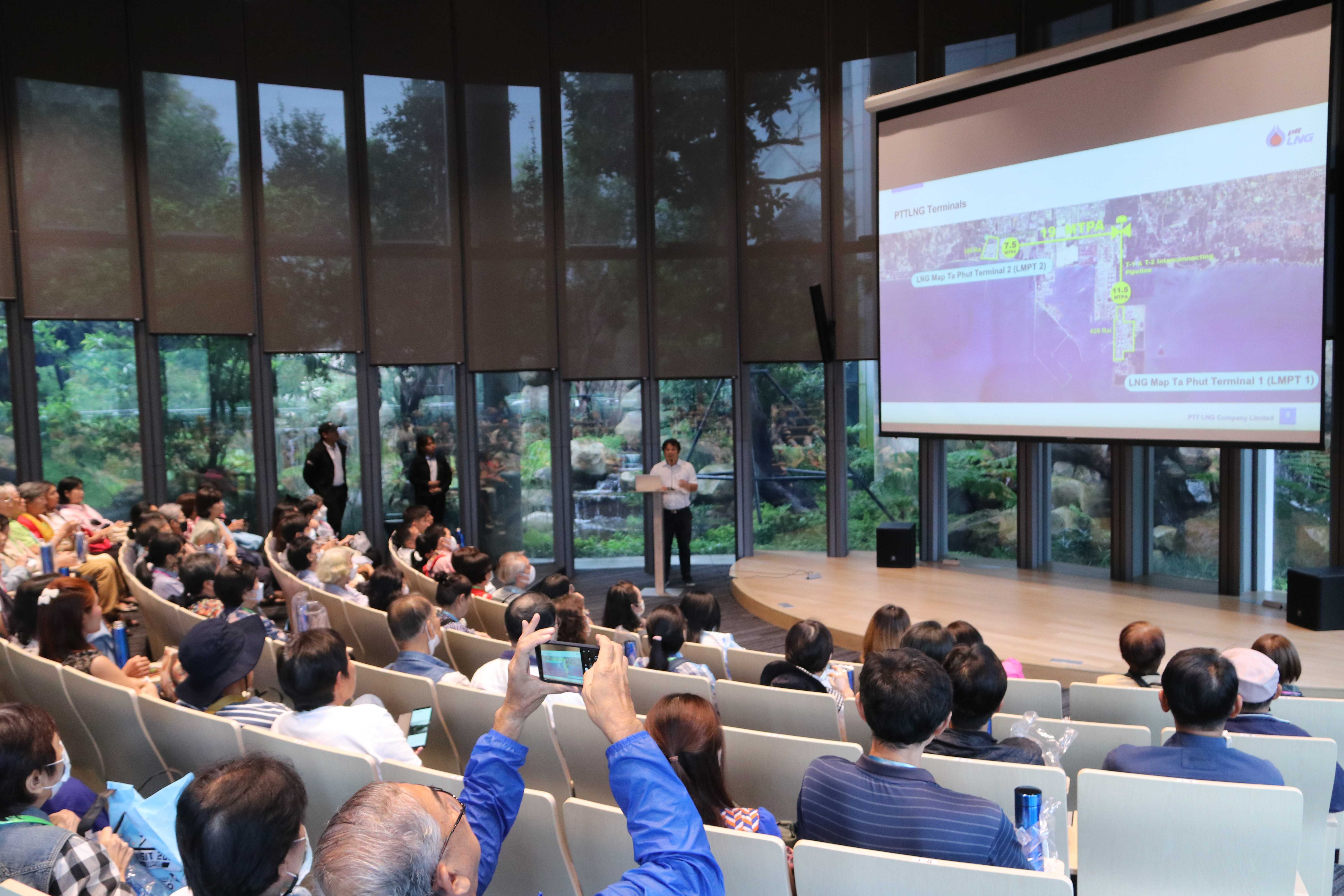วันที่ 3, 4, 5 ตุลาคม 2566 เวลา 10.30 น. คุณนพนันท์ ตั้งสกุลยิ่งเจริญ ผู้จัดการส่วนบริหารและปฏิบัติการท่าเรือ และคุณนรา โตแย้ม ผู้จัดการส่วนสื่อสารองค์กรและกิจการเพื่อสังคม พร้อมด้วยคุณกิติภูมิ ตั้งวงษ์ภิมุข ผู้จัดการส่วนวิศวกรรม PTTLNG ให้การต้อนรับคณะผู้ถือหุ้นกู้ ปตท. จำนวน (วันละ) 100 คน ในโอกาสเยี่ยมชม PTTLNG โดยได้รับฟังบรรยายภาพรวมการดำเนินธุรกิจ PTTLNG ณ ห้องออดิทอเรียม สถานีแอลเอ็นจี มาบตาพุด แห่งที่ 2 และเยี่ยมชมไม้เมืองหนาว ภายในอาคารนิทรรศน์พรรณพฤกษา เสริมสร้างความรู้ ความเข้าใจ การดำเนินธุรกิจ ท่าเทียบเรือและสถานีรับจ่ายก๊าซธรรมชาติเหลว ที่สร้างเสถียรภาพความมั่นคงด้านพลังงาน ให้กับประเทศ รวมถึงการนำพลังงานความเย็นของก๊าซธรรมชาติเหลว  LNG มาใช้ประโยชน์กับระบบปรับอากาศภายใน Climatic Dome