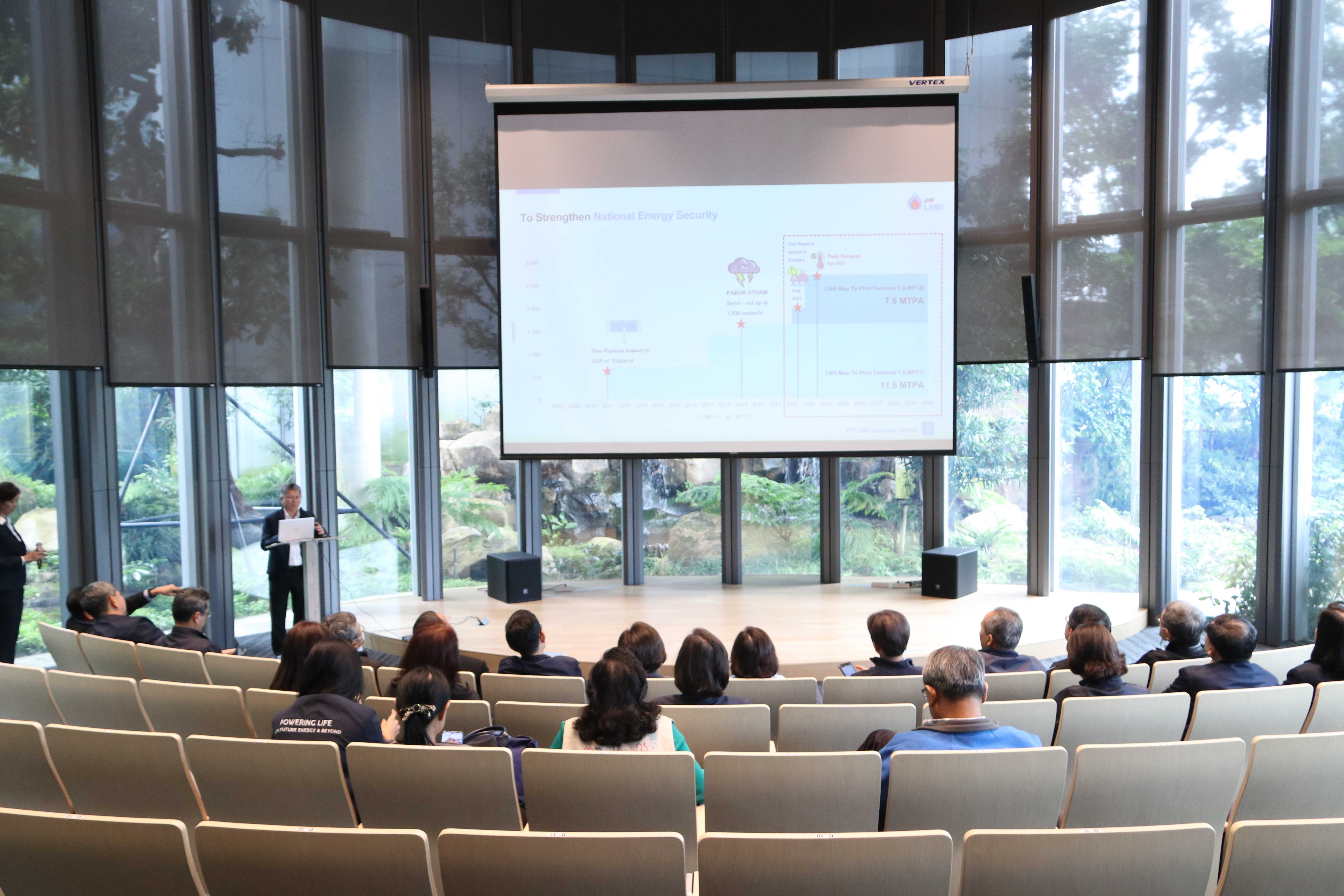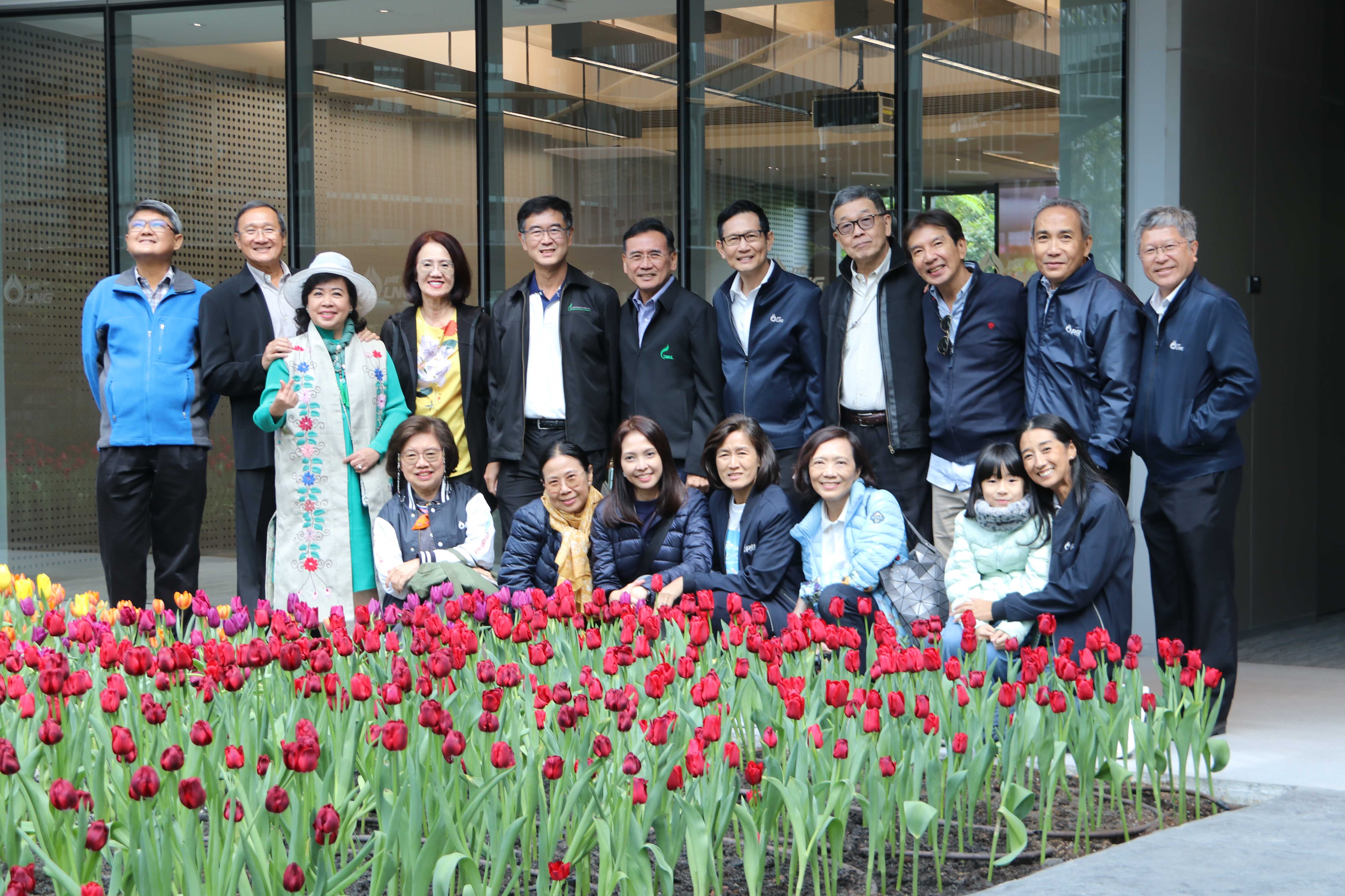 วันที่ 9 ตุลาคม 2566 เวลา 10.00 น. คุณอรรถพล ฤกษ์พิบูลย์ ประธานเจ้าหน้าที่บริหารและกรรมการผู้จัดการใหญ่ พร้อมด้วย คุณรัตติกูล ปิยะวงค์วาณิชย์ กรรมการผู้จัดการใหญ่ และคณะผู้บริหาร PTTLNG ให้การต้อนรับ คณะผู้บริหาร LDP3#1 ปตท. ซึ่งเป็นอดีตผู้บริหารของ ปตท. ในโอกาสเยี่ยมชม PTTLNG โดยคณะได้เข้าเยี่ยมชมการดำเนินงานของโรงเรือนปลูกไม้ดอกเมืองหนาว ศูนย์เลิศพัฒนพฤกษ์ สถานีแอลเอ็นจี มาบตาพุด แห่งที่ 1 และเข้าเยี่ยมชมการดำเนินงานของสถานีแอลเอ็นจี มาบตาพุดแห่งที่ 2 คณะได้รับฟังการบรรยายสรุปภาพรวมการดำเนินธุรกิจ PTTLNG โดยคุณรัตติกูล ปิยะวงค์วาณิชย์ ณ ห้องออดิทอเรียม หลังจากนั้นได้รับชมการสาธิตคุณสมบัติก๊าซธรรมชาติเหลว และเยี่ยมชมศูนย์ควบคุมการปฏิบัติการ ส่วนกลาง (Central Control Room) และ Roof Garden พร้อมทั้งเยี่ยมชมไม้เมืองหนาว ภายในอาคารนิทรรศน์พรรณพฤกษา ที่ได้จากการนำพลังงานความเย็นของก๊าซธรรมชาติเหลว  LNG มาใช้ให้เกิดประโยชน์กับระบบปรับอากาศภายใน Climatic Dome