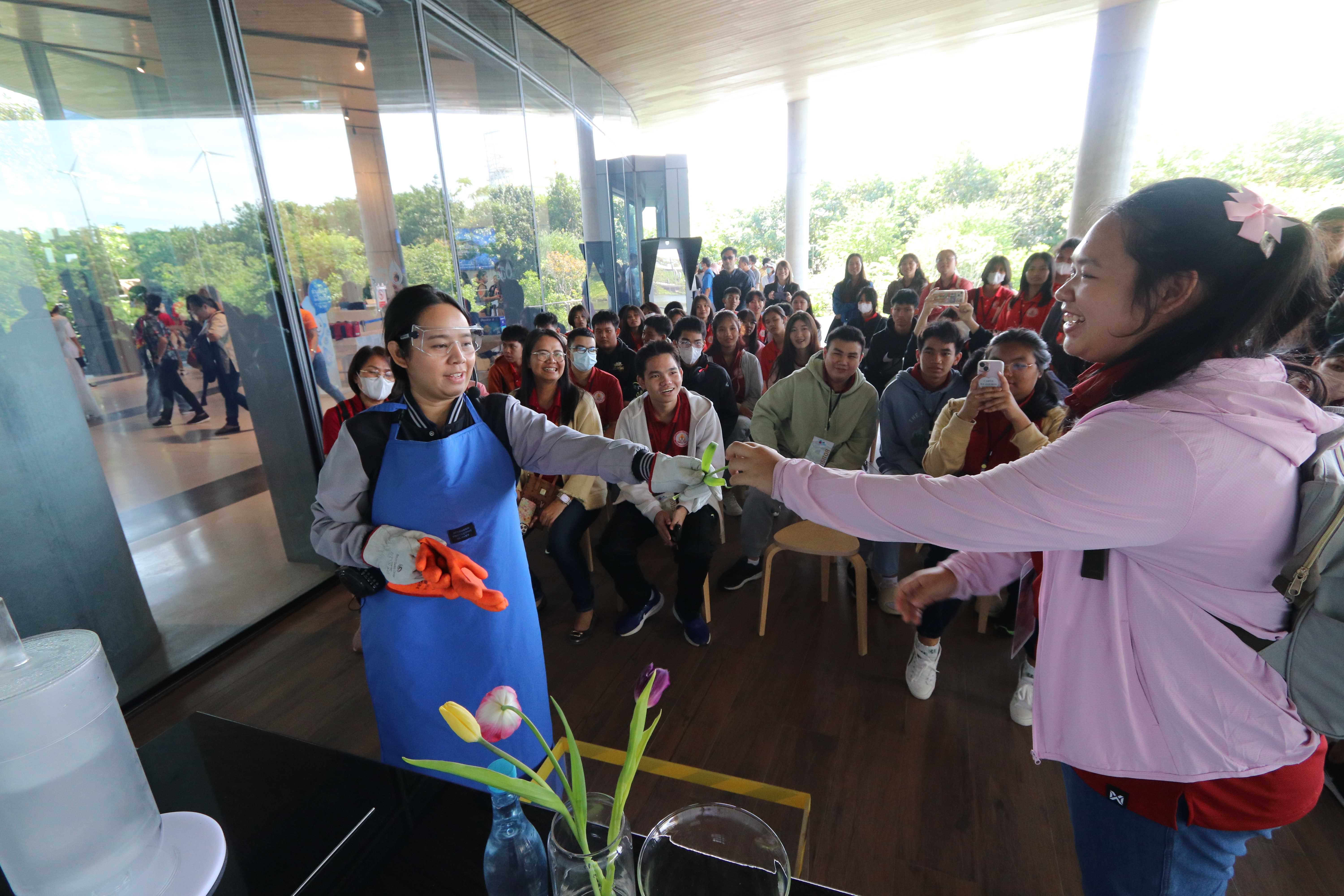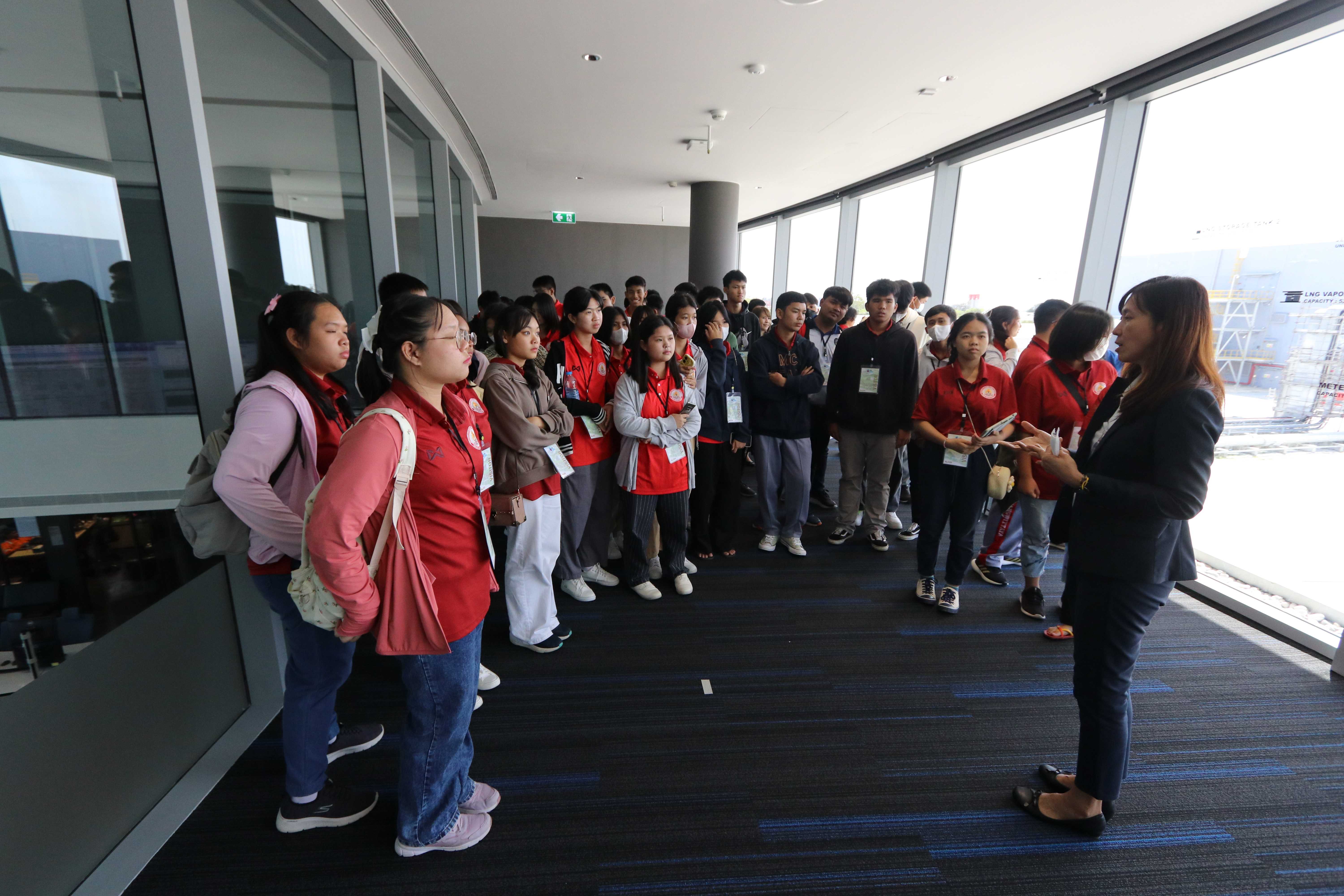 วันที่ 2 ธันวาคม 2566 เวลา 10.30 น. PTTLNG ให้การต้อนรับคณะนักเรียนชั้นมัธยมศึกษาปีที่ 2 และมัธยมศึกษาปีที่ 5 แผนการเรียนวิทยาศาสตร์-คณิตศาสตร์ โรงเรียนหนองฉางวิทยา จังหวัดอุทัยธานี จำนวน 60 คน ในโอกาสเยี่ยมชม PTTLNG โดยได้รับฟังบรรยายภาพรวมการดำเนินธุรกิจ PTTLNG ณ ห้องออดิทอเรียม สถานีแอลเอ็นจี มาบตาพุด แห่งที่ 2 และรับชมการสาธิตคุณสมบัติก๊าซธรรมชาติเหลว หลังจากนั้น ได้เข้าเยี่ยมชมศูนย์ควบคุมการปฏิบัติการส่วนกลาง (Central Control Room) และไม้เมืองหนาว ภายในอาคารนิทรรศน์พรรณพฤกษา ที่นำความเย็นของก๊าซธรรมชาติเหลว (LNG) มาใช้ประโยชน์กับระบบปรับอากาศภายใน Climatic Dome เสริมสร้างการเรียนรู้ด้านวิทยาศาสตร์สิ่งแวดล้อม เปิดโลกทัศน์ให้นักเรียนได้รับความรู้และประสบการณ์จากสถานที่จริง