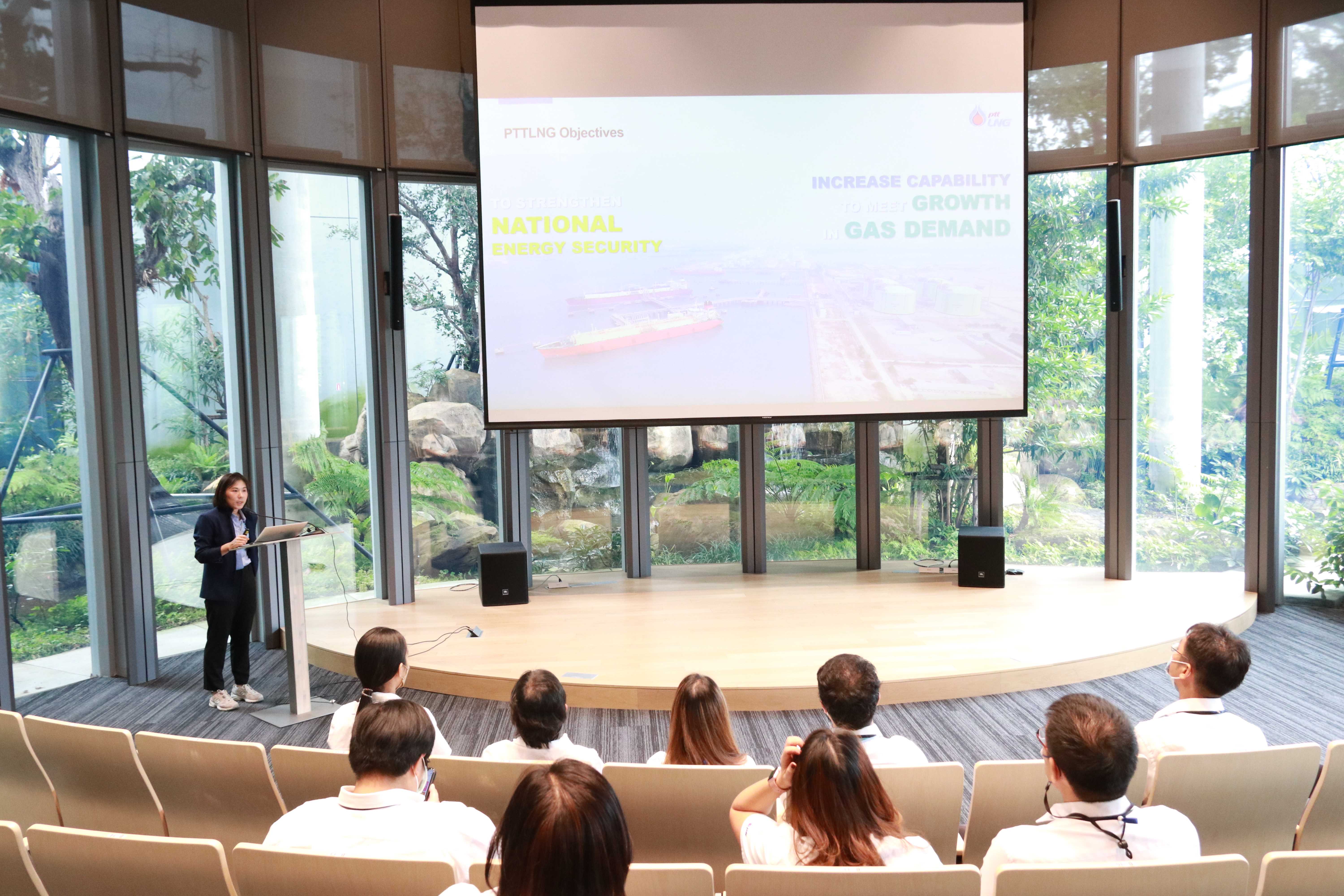 วันที่ 23 มกราคม 2567 เวลา 10.00 น. คุณชมพูนุช ไวศยะพันธ์ ผู้จัดการส่วนบริหารและปฏิบัติการท่าเรือ LMPT2 ให้การต้อนรับ คณะสายงานระบบท่อส่งก๊าซธรรมชาติ ปตท. จำนวน 10 คน  โดยได้รับฟังบรรยาย "ภาพรวมการดำเนินธุรกิจ PTTLNG และการใช้ประโยชน์จากพลังงานความเย็น LNG" ณ ห้องออดิทอเรียม สถานีแอลเอ็นจี มาบตาพุด แห่งที่ 2 หลังจากนั้นได้เข้าเยี่ยมชมศูนย์ควบคุม การปฏิบัติการส่วนกลาง (Central Control Room) พร้อมทั้งเยี่ยมชมไม้เมืองหนาว ภายใน Climatic Dome อาคารนิทรรศน์พรรณพฤกษา ที่นำพลังงานความเย็น ก๊าซธรรมชาติเหลว (LNG) มาใช้ประโยชน์กับระบบปรับอากาศภายในอาคาร
