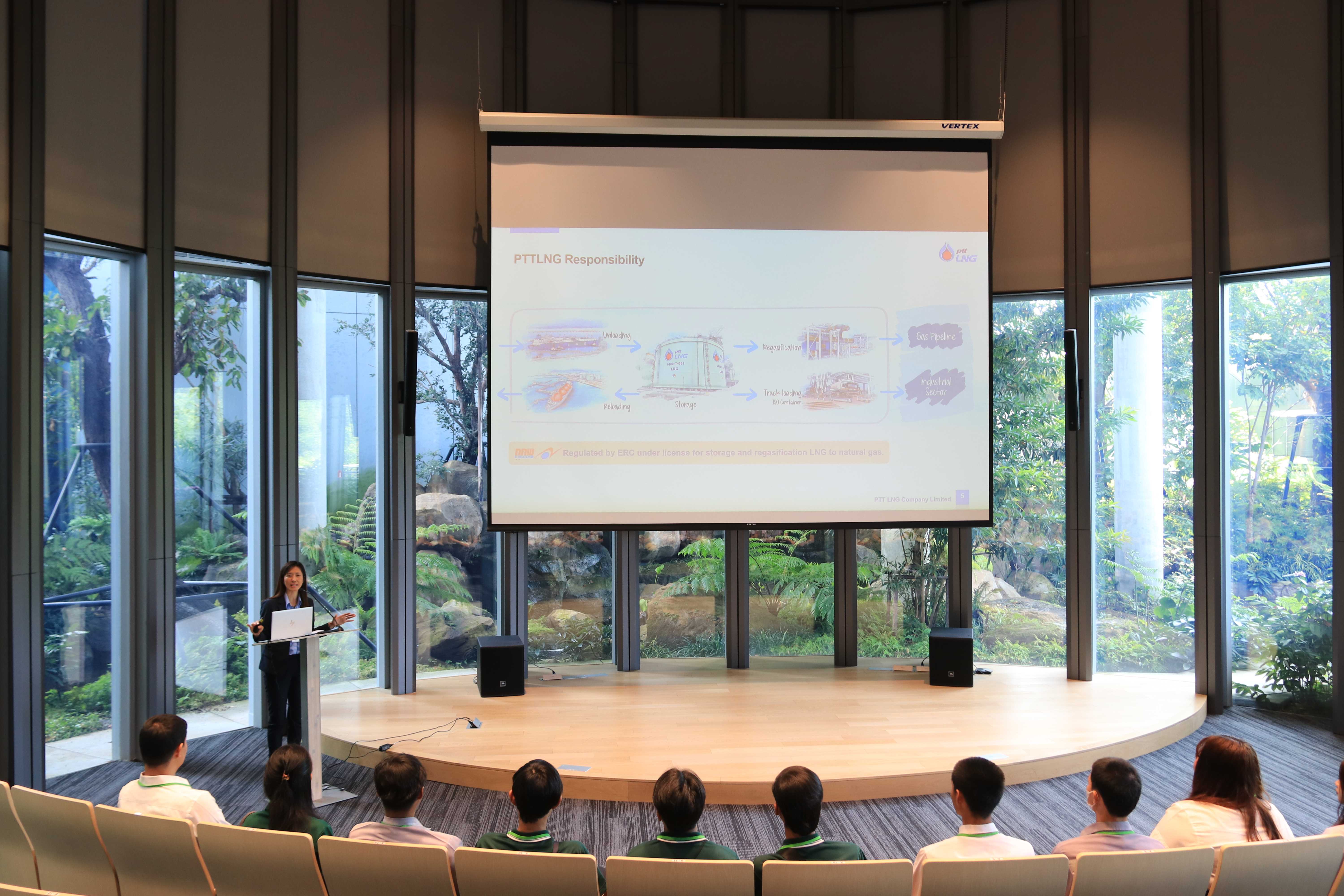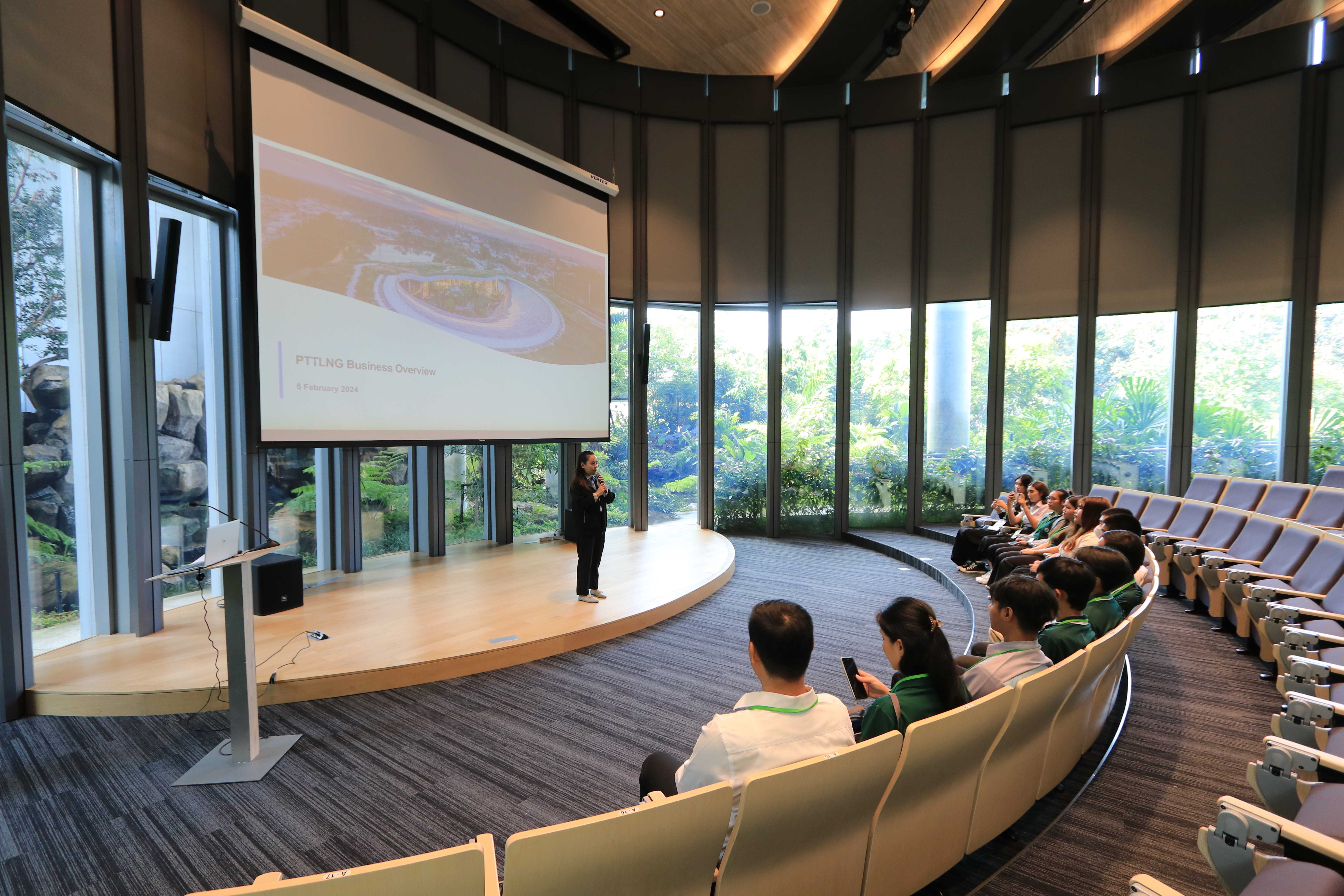 วันที่ 5 กุมภาพันธ์ 2567 เวลา 10.00 น. PTTLNG ให้การต้อนรับ ผู้บริหาร พนักงาน และนักศึกษาฝึกงาน บริษัท กงพัฒนา เอ็นจิเนียริ่ง แอนด์ คอนสตรัคชั่น จำกัด จำนวน 13 คน ในโอกาสศึกษาดูงาน อาคารนิทรรศน์พรรณพฤกษา โดยคุณจุฑารัตน์ พิทักษ์วาทิน พนักงานมวลชนสัมพันธ์ ได้บรรยายสรุป ภาพรวมการดำเนินธุรกิจ PTTLNG” ณ ห้องออดิทอเรียม สถานีแอลเอ็นจี มาบตาพุด แห่งที่ 2 หลังจากนั้น ได้เข้าเยี่ยมชม ศูนย์ควบคุมการปฏิบัติการส่วนกลาง (Central Control Room) พร้อมทั้งเยี่ยมชมไม้เมืองหนาว ภายในอาคารนิทรรศน์พรรณพฤกษาที่นำพลังงานความเย็นจากก๊าซธรรมชาติเหลว (LNG) มาใช้ในระบบปรับอากาศภายใน Climatic Dome เพื่อเพิ่มความรู้ความเข้าใจให้กับนักศึกษาเพื่อเป็นแนวทางในการประกอบอาชีพต่อไป