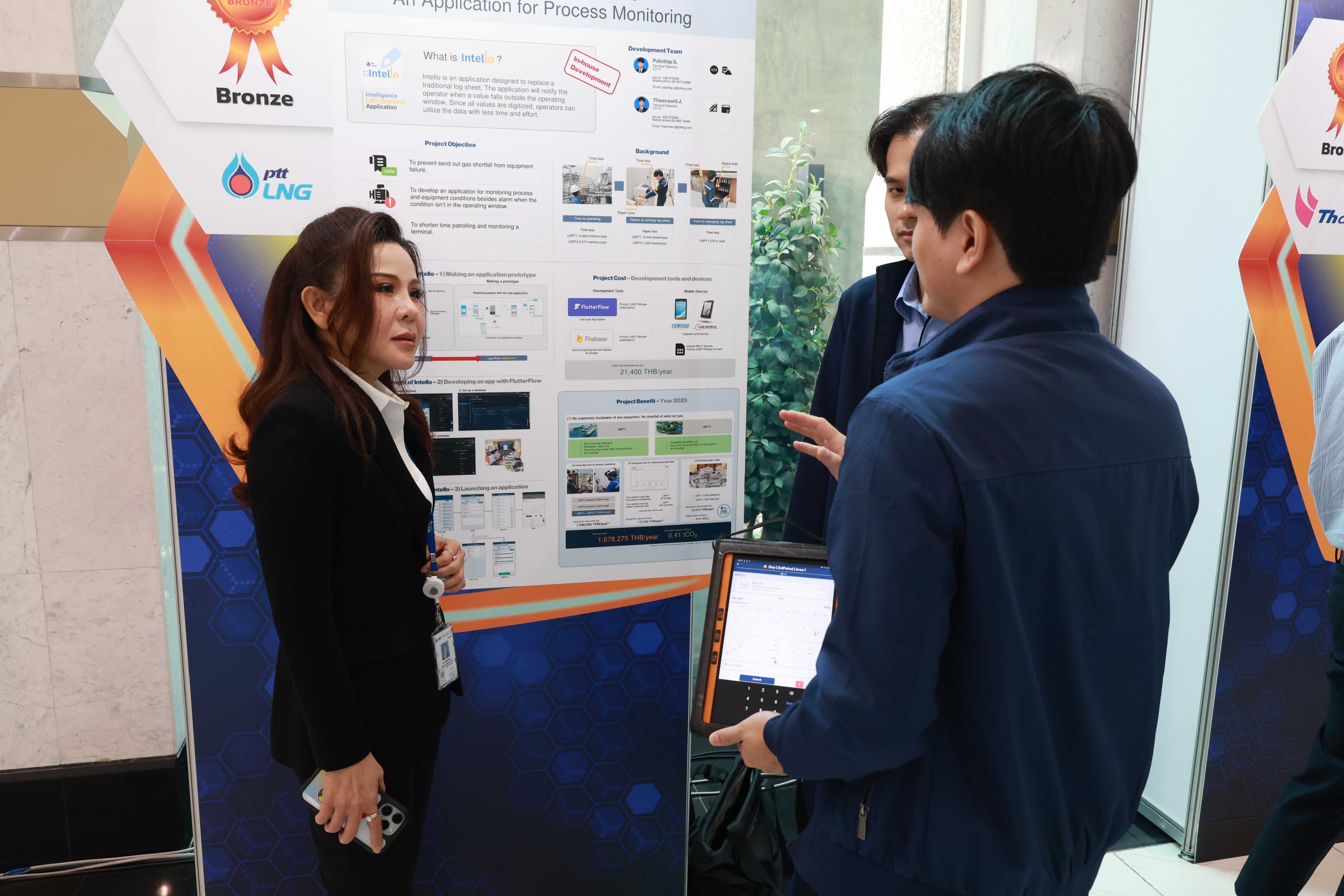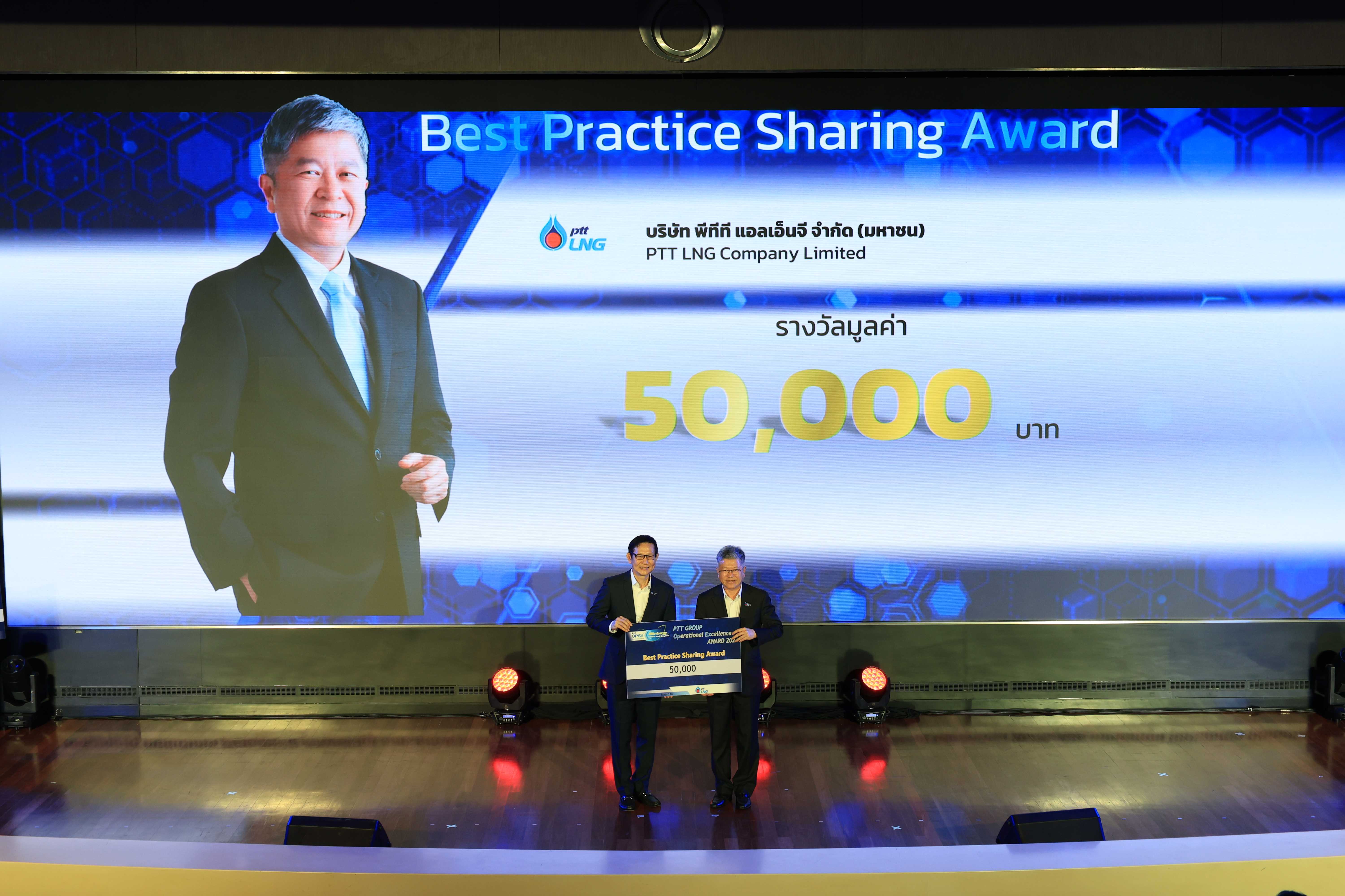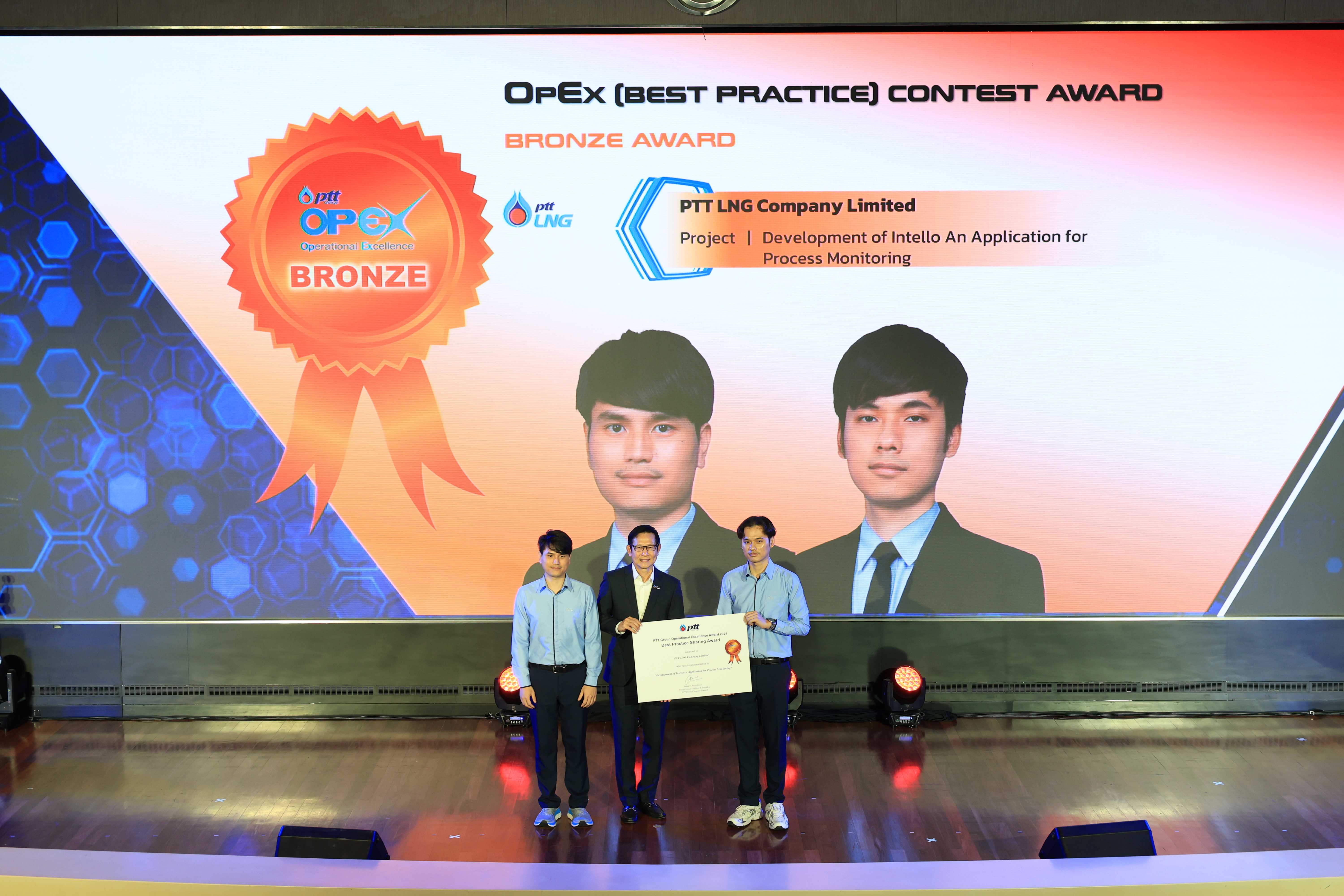 ทั้งนี้ PTTLNG ได้รับรางวัลสองรางวัล โดยคุณรัตติกูล ปิยะวงค์วาณิชย์ กรรมการผู้จัดการใหญ่ บริษัท พีทีที แอลเอ็นจี จํากัด เป็นตัวแทนในการรับรางวัล Best Practice Sharingและ คุณพลาธิป ศรีสุโขและคุณธีรวิทย์ แจ่มเพ็ชร ผู้แทนรับรางวัล รางวัล Best Practices Contest จากการส่งเรื่อง Development of Intello - An Application for Process Monitoring เข้าประกวด
