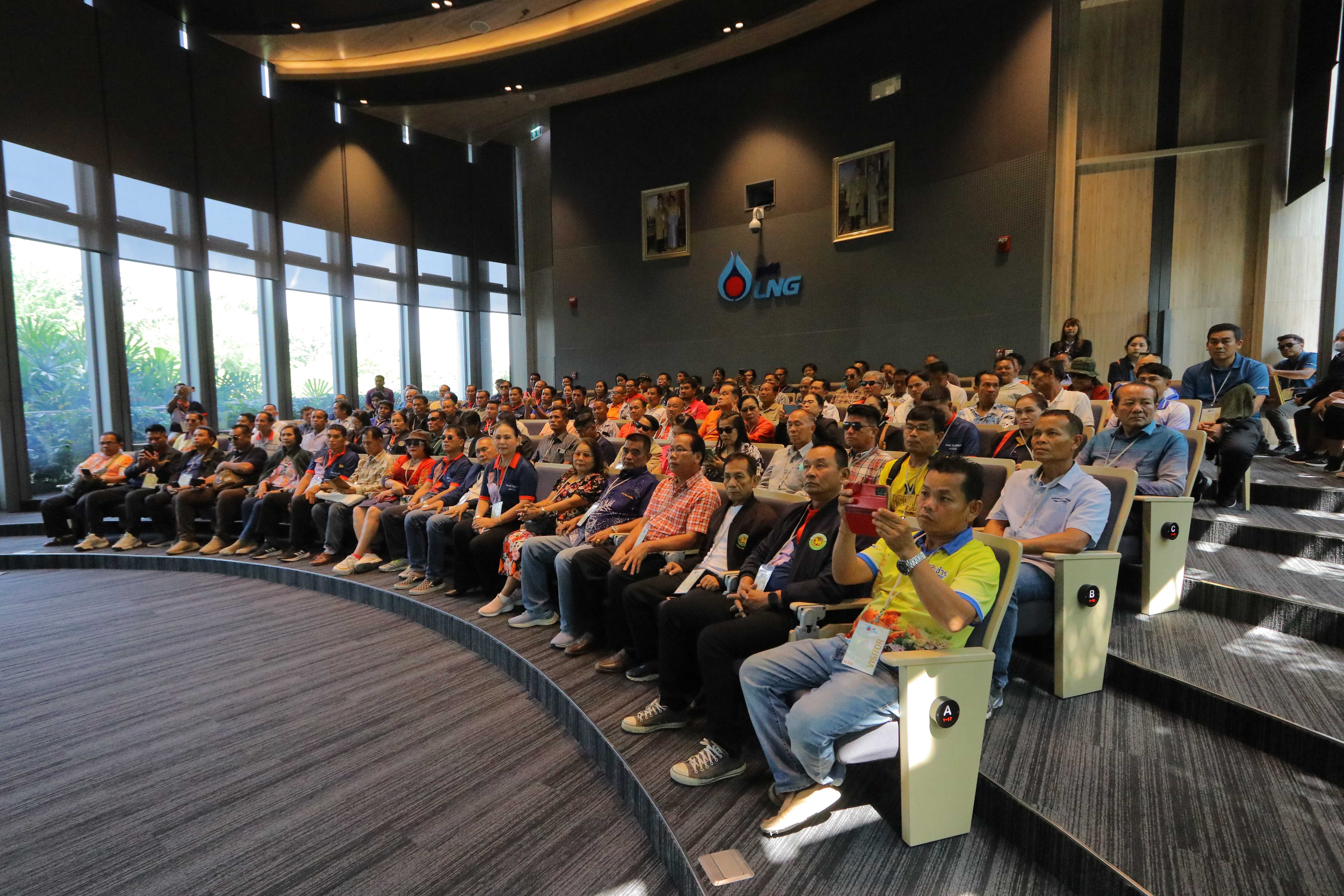 วันที่ 5 เมษายน 2567 เวลา 09.30 น. PTTLNG ให้การต้อนรับ คณะผู้เข้าร่วมโครงการสร้างความเข้มแข็งของผู้นำชุมชนตามนโยบายสร้างชุมชนเข้มแข็งของกระทรวงมหาดไทย องค์การบริหารส่วนจังหวัดอุบลราชธานี จำนวน 160 คน ในโอกาสศึกษาดูงาน อาคารนิทรรศน์พรรณพฤกษา โดยคุณวรัญญู วรธงไชย พนักงานมวลชนสัมพันธ์ ได้บรรยายสรุป ภาพรวมการดำเนินธุรกิจ PTTLNG ณ ห้องออดิทอเรียม สถานีแอลเอ็นจี มาบตาพุด แห่งที่ 2 หลังจากนั้น ได้เข้าเยี่ยมชม ไม้เมืองหนาว ภายในอาคารนิทรรศน์พรรณพฤกษาที่นำพลังงานความเย็นจากก๊าซธรรมชาติเหลว (LNG) มาใช้ในระบบปรับอากาศภายใน Climatic Dome