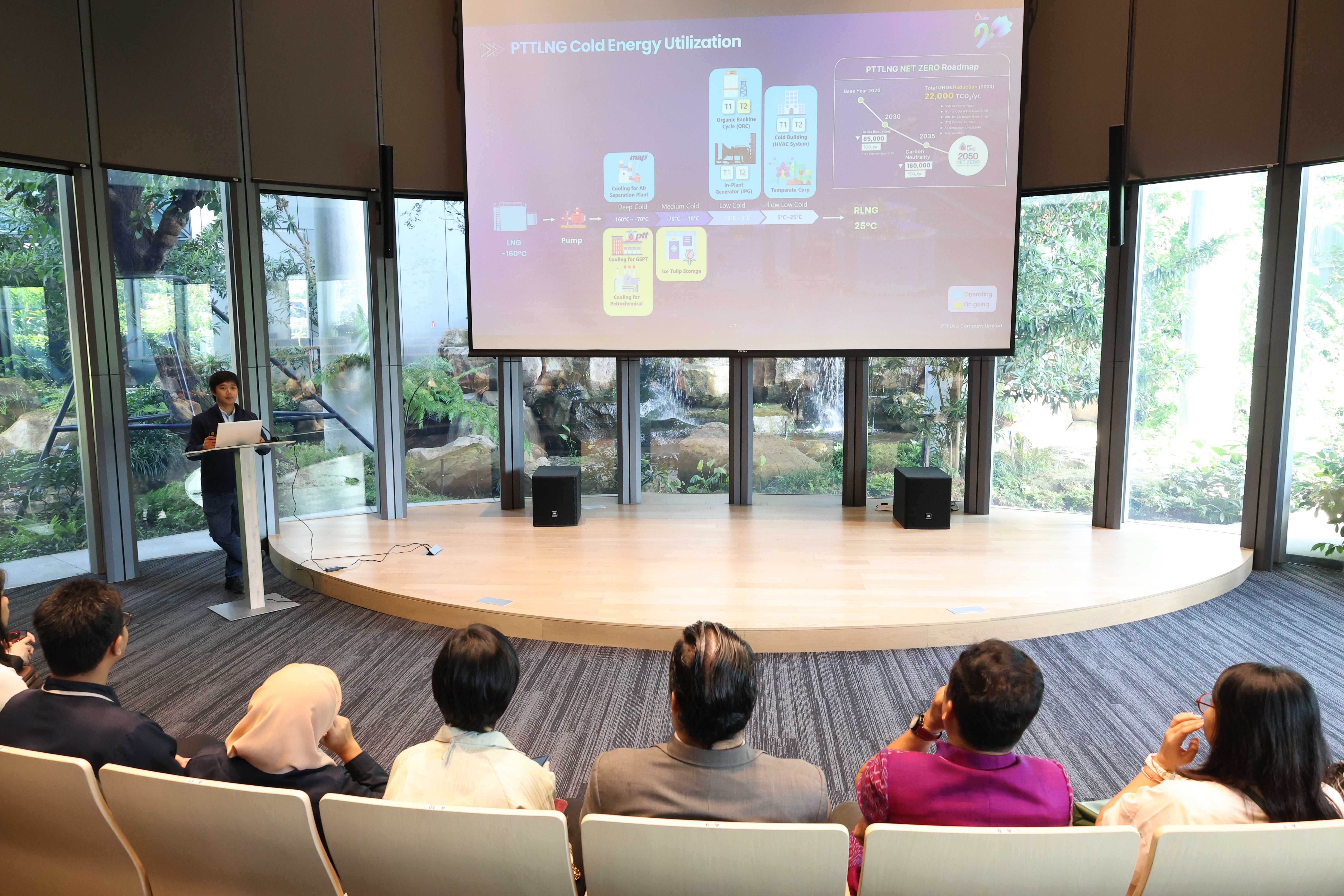 วันที่ 2 กรกฎาคม 2567 เวลา 14.00 น. คุณปิยะชัย มั่งคั่ง รักษาการผู้จัดการส่วนบริหารงานก่อสร้าง ให้การต้อนรับคณะเยี่ยมชม จำนวน 20 คน และได้บรรยายสรุป "ภาพรวมการดำเนินธุรกิจ PTTLNG และการใช้ประโยชน์จากพลังงานความเย็น LNG" ณ ห้องออดิทอเรียม สถานีแอลเอ็นจี มาบตาพุด แห่งที่ 2 หลังจากนั้นได้เข้าเยี่ยมชมไม้เมืองหนาวภายใน Climatic Dome อาคารนิทรรศน์พรรณพฤกษา ที่นำพลังงานความเย็น ก๊าซธรรมชาติเหลว (LNG) มาใช้ประโยชน์กับระบบปรับอากาศภายในอาคาร