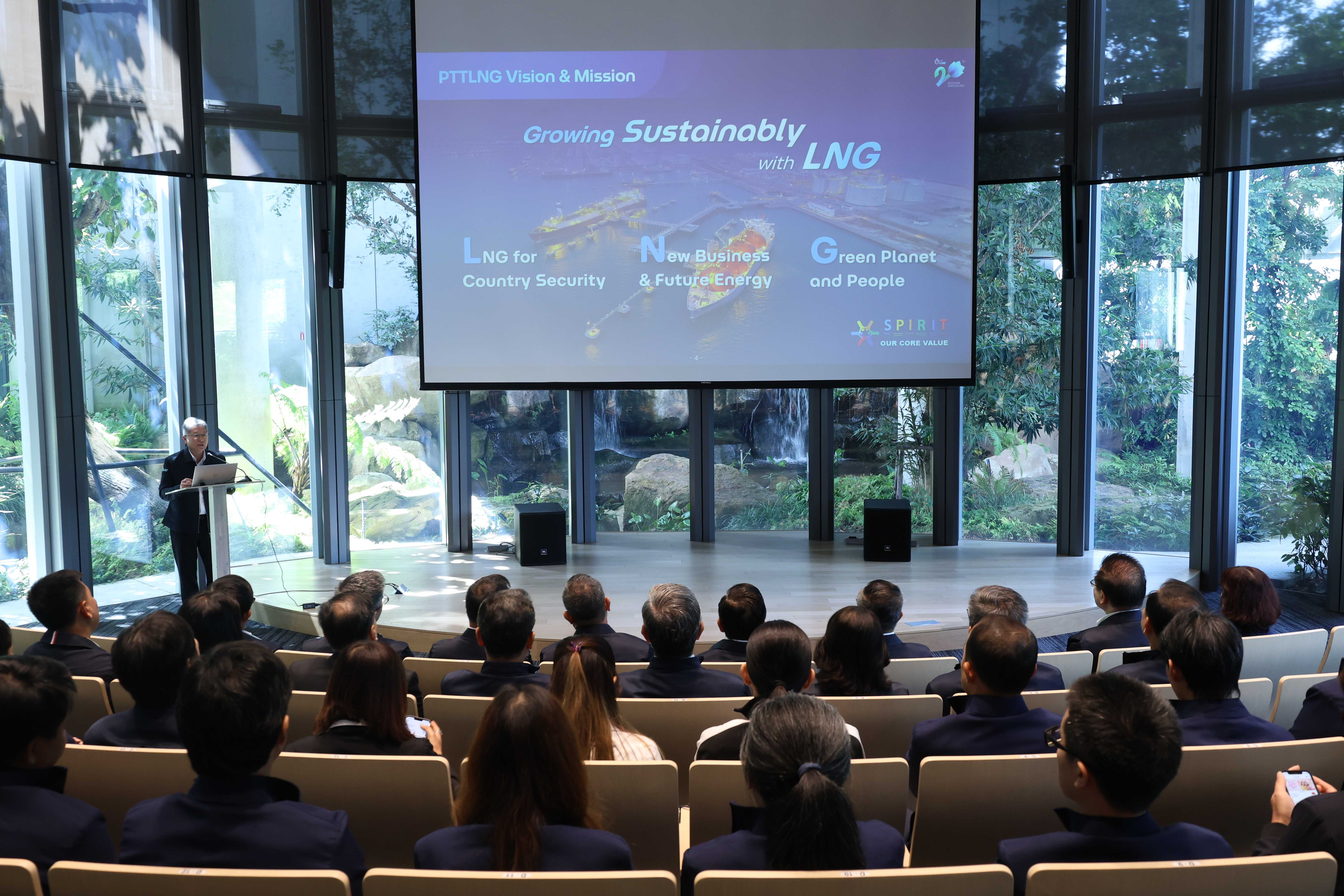 ดร.คงกระพัน อินทรแจ้ง ประธานเจ้าหน้าที่บริหารและกรรมการผู้จัดการใหญ่ และคณะผู้บริหาร บริษัท ปตท. จำกัด (มหาชน) เยี่ยมชม PTTLNG วันที่ 6 สิงหาคม 2567 เวลา 10.00 น. โดยคุณรัตติกูล ปิยะวงค์วาณิชย์ กรรมการรักษาการกรรมการผู้จัดการใหญ่ บริษัท พีทีที แอลเอ็นจี จำกัด พร้อมผู้บริหารและพนักงานให้การต้อนรับในโอกาสเยี่ยมชมและพบปะพนักงาน PTTLNG ณ อาคารนิทรรศน์พรรณพฤกษา คุณรัตติกูล ปิยะวงค์วาณิชย์ ได้บรรยายสรุป "ภาพรวมการดำเนินธุรกิจ PTTLNG และการใช้ประโยชน์จากพลังงานความเย็น LNG" ณ ห้องออดิทอเรียม สถานีแอลเอ็นจี มาบตาพุด แห่งที่ 2 หลังจากนั้นได้เข้าเยี่ยมชมศูนย์ควบคุม การปฏิบัติการส่วนกลาง (Central Control Room) พร้อมทั้งพบปะพนักงานแต่ละส่วนงาน หลังจากนั้นเยี่ยมชมไม้เมืองหนาว ภายใน Climatic Dome อาคารนิทรรศน์พรรณพฤกษา ที่นำพลังงานความเย็นจากก๊าซธรรมชาติเหลว (LNG) มาใช้ประโยชน์ในระบบปรับอากาศของอาคาร