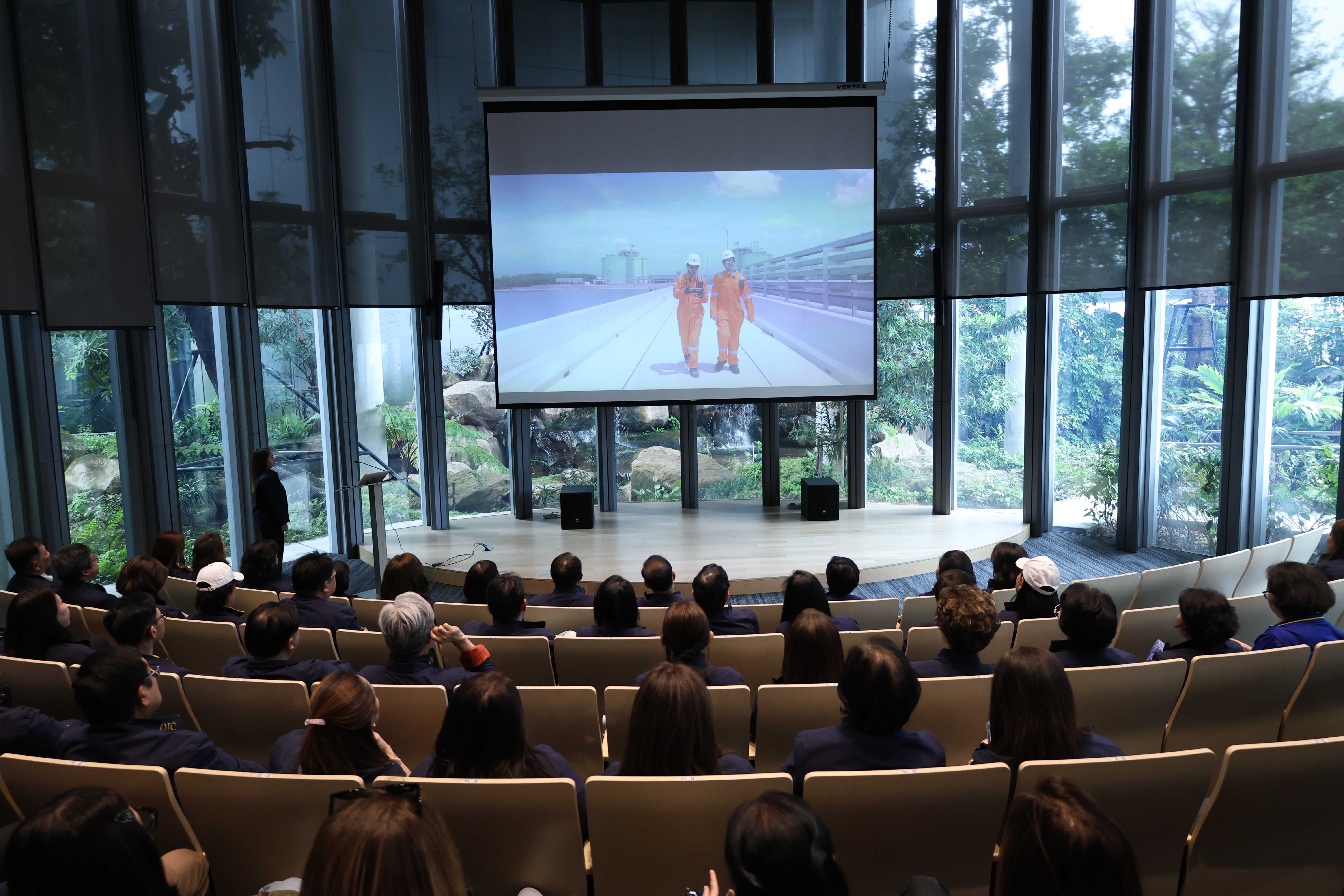 วันที่ 23 สิงหาคม 2567 เวลา 14.00 น. คุณทศพล โสภโณวงศ์ รองกรรมการผู้จัดการใหญ่ปฏิบัติการ} คุณวารินทร์ เอี่ยมธีระไพบูลย์ รองกรรมการผู้จัดการใหญ่ปฏิบัติการ สถานีแอลเอ็นจี มาบตาพุด แห่งที่ 2 และคุณนรา โตแย้ม ผู้จัดการส่วนสื่อสารองค์กรและกิจการเพื่อสังคม ให้การต้อนรับคณะหลักสูตรวิทยาการประกันภัยระดับสูง (วปส.) รุ่นที่ 12  จำนวน 144 คน ในโอกาสเยี่ยมชม PTTLNG  เพื่อศึกษาดูงานการดำเนินด้านนวัตกรรมการนำพลังงงานความเย็นจาก LNG ที่เหลือใช้ มาพัฒนาให้เกิดประโยชน์สูงสุด โดยคณะฯ ได้รับฟังการบรรยายสรุป “ภาพรวมการดำเนินธุรกิจ PTTLNG” โดย คุณทศพล โสภโณวงศ์ รองกรรมการผู้จัดการใหญ่ปฏิบัติการ ณ ห้องออดิทอเรียม สถานีแอลเอ็นจี มาบตาพุด แห่งที่ 2 และเข้าเยี่ยมชมศูนย์ควบคุมการปฏิบัติการส่วนกลาง (Central Control Room) ตลอดจนไม้เมืองหนาวภายใน Climatic Dome อาคารนิทรรศน์พรรณพฤกษา ที่นำพลังงานความเย็นจากก๊าซธรรมชาติเหลว (LNG) มาใช้ประโยชน์กับระบบปรับอากาศภายในอาคาร