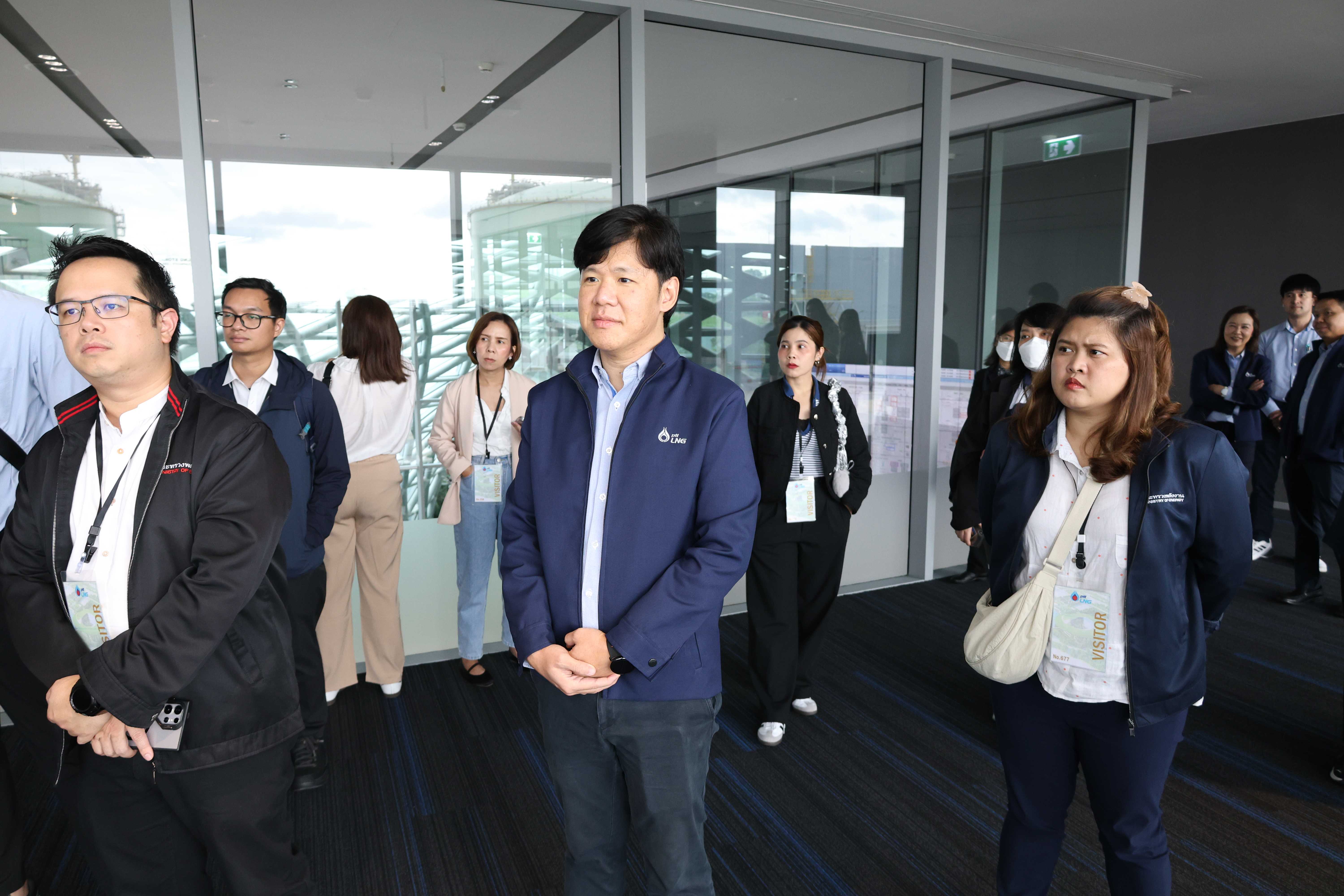 วันที่ 12 กันยายน 2567 เวลา 10.00 น. คุณระวิวัฒน์ เถลิงโชค รองกรรมการผู้จัดการใหญ่แผนกลยุทธ์และการเงิน PTTLNG ให้การต้อนรับคณะโครงการพัฒนาประสิทธิภาพการแก้ไขสภาวะฉุกเฉิน ด้านพลังงาน สำนักงานปลัดกระทรวงพลังงาน จำนวน 27 คน ในโอกาสเยี่ยมชมการดำเนินงาน PTTLNG และนวัตกรรมการนำพลังงานความเย็นจาก LNG  ที่เหลือใช้มาพัฒนาให้เกิดประโยชน์ รวมถึงศึกษาดูงานและหารือประเด็นด้านการแก้ไขสถานการณ์ฉุกเฉินด้านพลังงาน โดยคณะฯ ได้รับฟังการบรรยาย “ภาพรวมการดำเนินธุรกิจ PTTLNG” และหารือเกี่ยวกับแนวทางและความพร้อมการบริหารจัดการเหตุฉุกเฉิน ณ ห้องวังแก้ว สถานีแอลเอ็นจี มาบตาพุด แห่งที่ 1 ตลอดจนเข้าเยี่ยมชมพื้นที่กระบวนการผลิต และเดินทางมาที่สถานี แอลเอ็นจี มาบตาพุด แห่งที่ 2 เพื่อเข้าเยี่ยมชมศูนย์ควบคุมการปฏิบัติการส่วนกลาง (Central Control Room) และเยี่ยมชมไม้ดอกเมืองหนาว ภายใน Climatic Dome อาคารนิทรรศน์พรรณพฤกษา ที่นำพลังงานความเย็นจากก๊าซธรรมชาติเหลว (LNG) มาใช้ประโยชน์กับระบบปรับอากาศภายในอาคาร