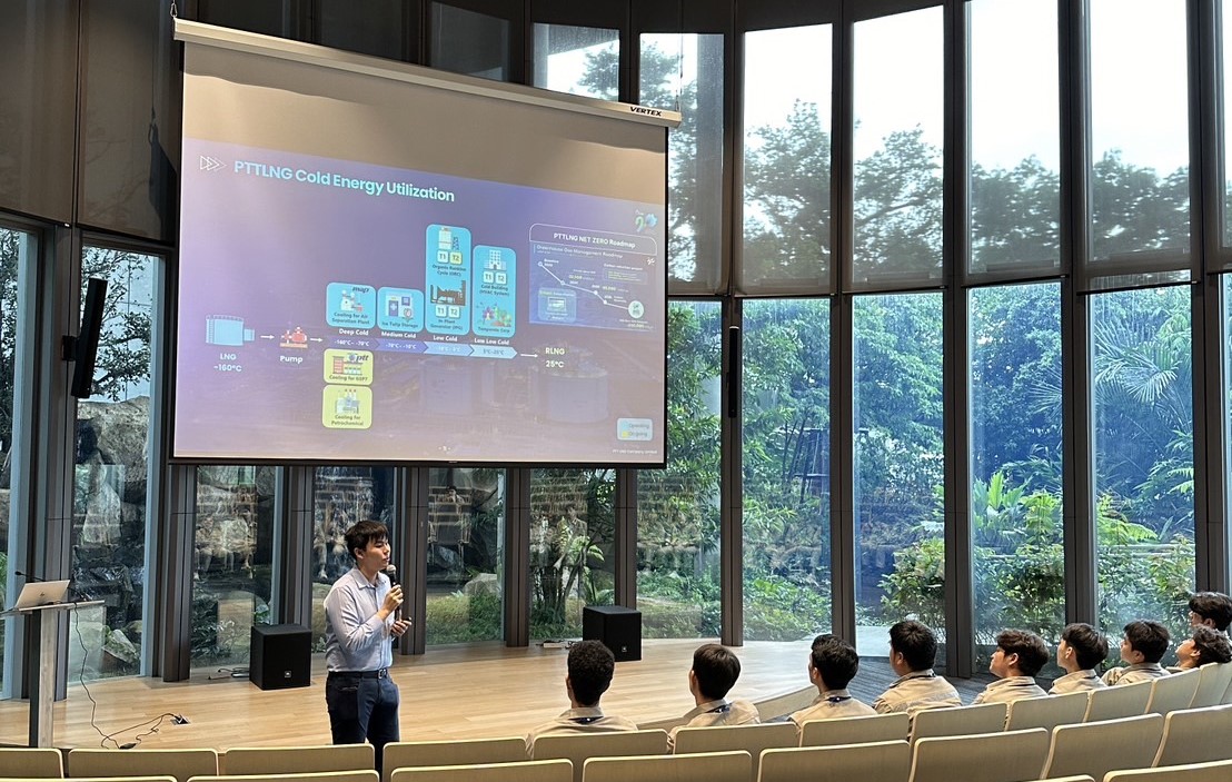 วันที่ 16 ตุลาคม 2567 เวลา 14.30 น. PTTLNG ให้การต้อนรับคณะผู้เข้าร่วมกิจกรรม GSP Orientation Program จำนวน 14 คน ในโอกาสเยี่ยมชม PTTLNG เพื่อศึกษาดูงานการดำเนินด้านนวัตกรรมการนำพลังงงานความเย็นจาก LNG ที่เหลือใช้ มาพัฒนาให้เกิดประโยชน์สูงสุด โดยคณะฯ ได้รับฟังการบรรยายสรุป “ภาพรวมการดำเนินธุรกิจ PTTLNG” โดย คุณนฤนาถ หุ่นเจริญ ผู้จัดการส่วนทรัพยากรบุคคลและพัฒนาองค์กร ณ ห้องออดิทอเรียม สถานีแอลเอ็นจี มาบตาพุด แห่งที่ 2  หลังจากนั้นเข้าเยี่ยมชมศูนย์ควบคุมการปฏิบัติการส่วนกลาง (Central Control Room) ตลอดจนไม้เมืองหนาวภายใน Climatic Dome อาคารนิทรรศน์พรรณพฤกษา ที่นำพลังงานความเย็นจากก๊าซธรรมชาติเหลว (LNG) มาใช้ประโยชน์กับระบบปรับอากาศภายในอาคาร