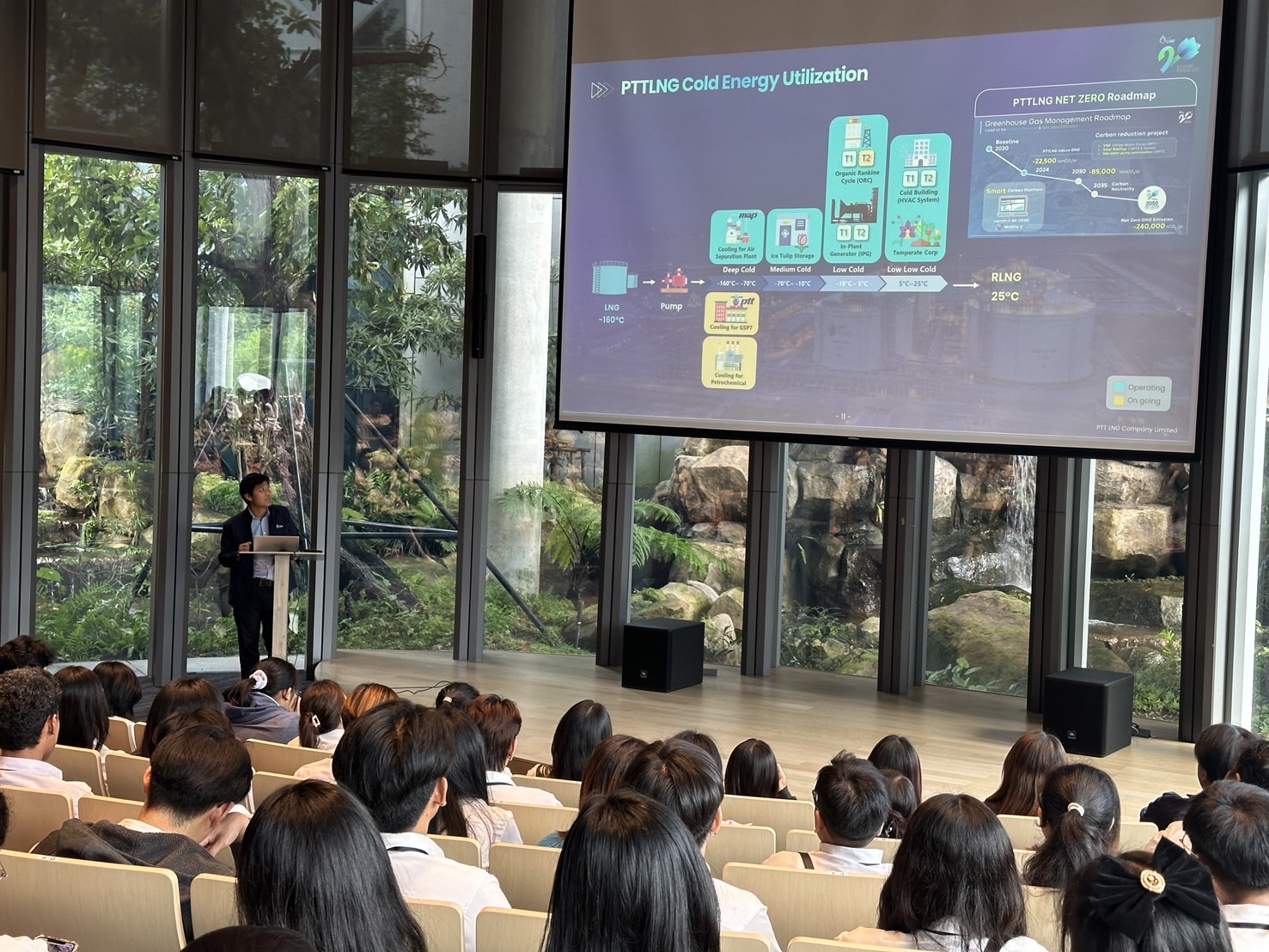 วันที่ 17 ตุลาคม 2567 เวลา 13.30 น. PTTLNG ให้การต้อนรับคณะภาควิชานิติศาสตร์ คณะรัฐศาสตร์และนิติศาสตร์ มหาวิทยาลัยบูรพา จำนวน 119 คน ในโอกาสเยี่ยมชม PTTLNG เพื่อศึกษาดูงานการดำเนินด้านนวัตกรรมการนำพลังงงานความเย็นจาก LNG ที่เหลือใช้ มาพัฒนาให้เกิดประโยชน์สูงสุด โดยคณะฯ ได้รับฟังการบรรยายสรุป “ภาพรวมการดำเนินธุรกิจ PTTLNG” โดย คุณณัฐกรณ์ สิทธิศักดิ์ ผู้จัดการส่วนบำรุงรักษา LMPT2 ณ ห้องออดิทอเรียม สถานีแอลเอ็นจี มาบตาพุด แห่งที่ 2  หลังจากนั้นเข้าเยี่ยมชมไม้เมืองหนาวภายใน Climatic Dome อาคารนิทรรศน์พรรณพฤกษา ที่นำพลังงานความเย็นจากก๊าซธรรมชาติเหลว (LNG) มาใช้ประโยชน์กับระบบปรับอากาศภายในอาคาร