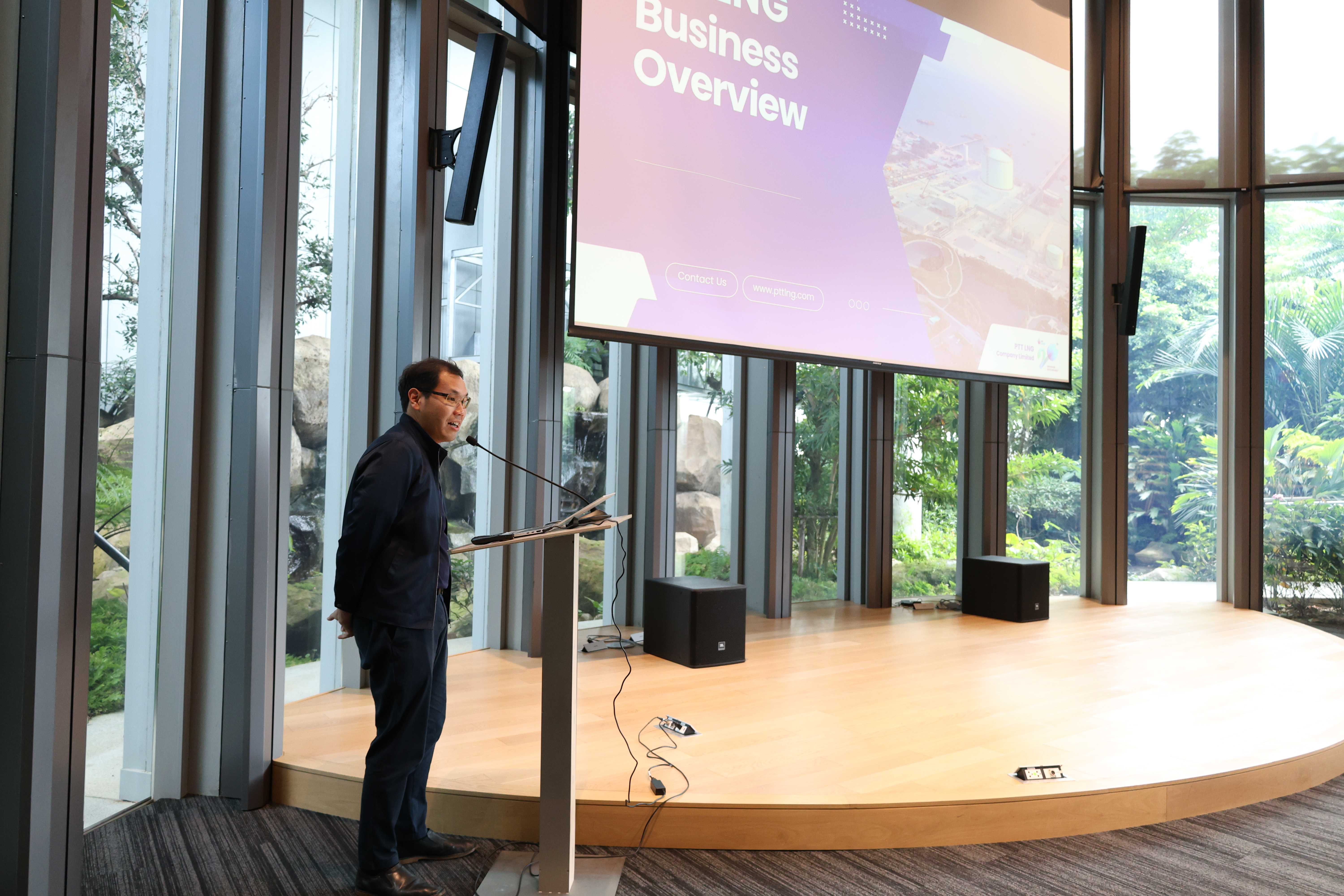 วันที่ 9 พฤศจิกายน 2567 เวลา 14.00 น. คุณวารินทร์ เอี่ยมธีระไพบูลย์ รองกรรมการผู้จัดการใหญ่ปฏิบัติการ สถานีแอลเอ็นจี มาบตาพุด แห่งที่ 2 ให้การต้อนรับคณะสถานเอกอัครราชฑูต ณ กรุงเวลลิงตัน จำนวน 10 คน ในโอกาสเยี่ยมชม PTTLNG เพื่อศึกษาดูงานการดำเนินด้านนวัตกรรมการนำพลังงงานความเย็นจาก LNG ที่เหลือใช้ มาพัฒนาให้เกิดประโยชน์สูงสุด โดยคณะฯ ได้รับฟังการบรรยายสรุป “ภาพรวมการดำเนินธุรกิจ PTTLNG” โดย คุณอิสร์รัชช์ ขจรรุ่งศิลป์ ผู้จัดการส่วนวิศวกรรม LMPT2 ณ ห้องออดิทอเรียม สถานีแอลเอ็นจี มาบตาพุด แห่งที่ 2 และเข้าเยี่ยมชมศูนย์ควบคุมการปฏิบัติการส่วนกลาง (Central Control Room) ตลอดจนไม้เมืองหนาวภายใน Climatic Dome อาคารนิทรรศน์พรรณพฤกษา ที่นำพลังงานความเย็นจากก๊าซธรรมชาติเหลว (LNG) มาใช้ประโยชน์กับระบบปรับอากาศภายในอาคาร