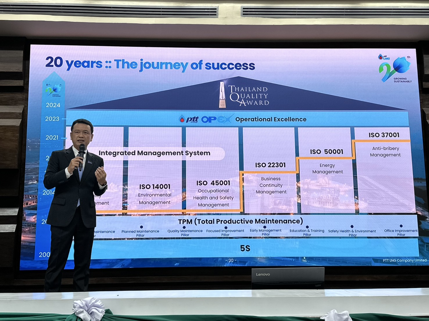 วันที่ 21 พฤศจิกายน 2567 คุณสมชาย ระมาศ รองกรรมการผู้จัดการใหญ่วิศวกรรมและบำรุงรักษา เป็นตัวแทนของบริษัท PTTLNG ในการบรรยายพิเศษ ในงาน MED CMU Quality Fair ครั้งที่ 5 ประจำปี 2567 ในห้วข้อ  PTTLNG's Journey to Excellence: เส้นทางแห่งความสำเร็จของ PTTLNG เพื่อแลกเปลี่ยนการเรียนรู้ร่วมกันจากกระบวนการทำงานของบริษัท พีทีที แอลเอ็นจี จำกัด กับ คณะแพทย์ศาสตร์ มหาลัยเชียงใหม่