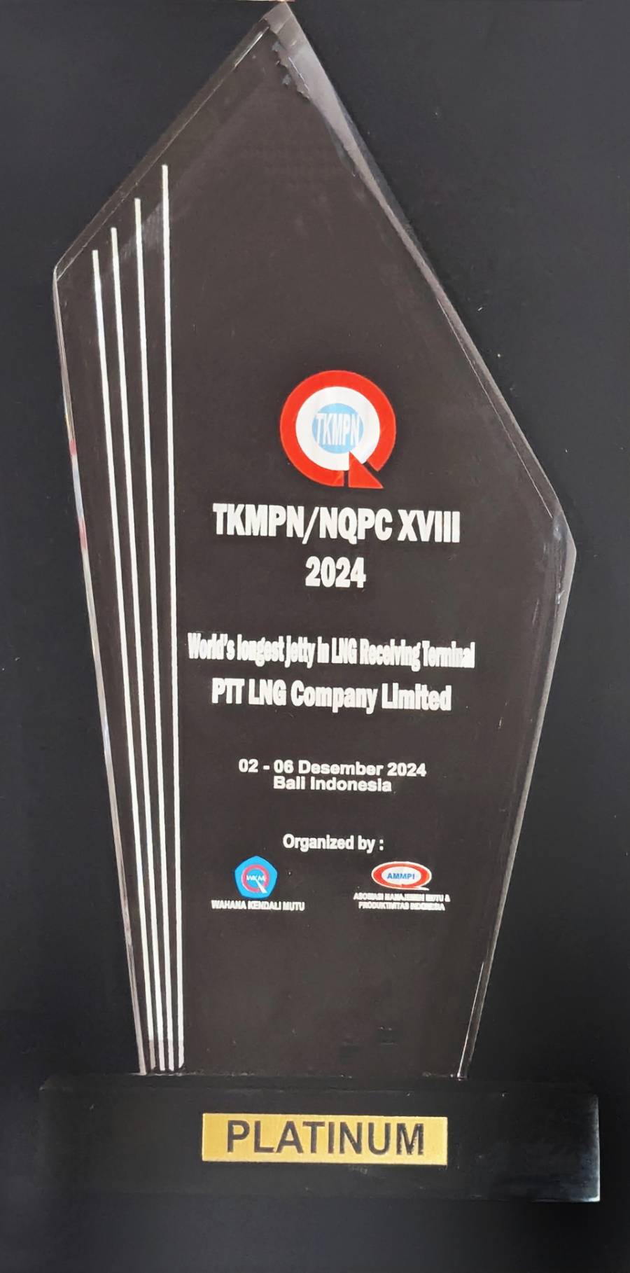 นำทีมคุณภาพโดยทีมจากส่วนปค. LMPT2 และตัวแทนจากส่วน ปส. ภายใต้ชื่อผลงาน "World's longest jetty in LNG Receiving Terminal" ด้วยโครงการลดต้นทุนไฟฟ้าในกระบวนการจัดการก๊าซ BOG
