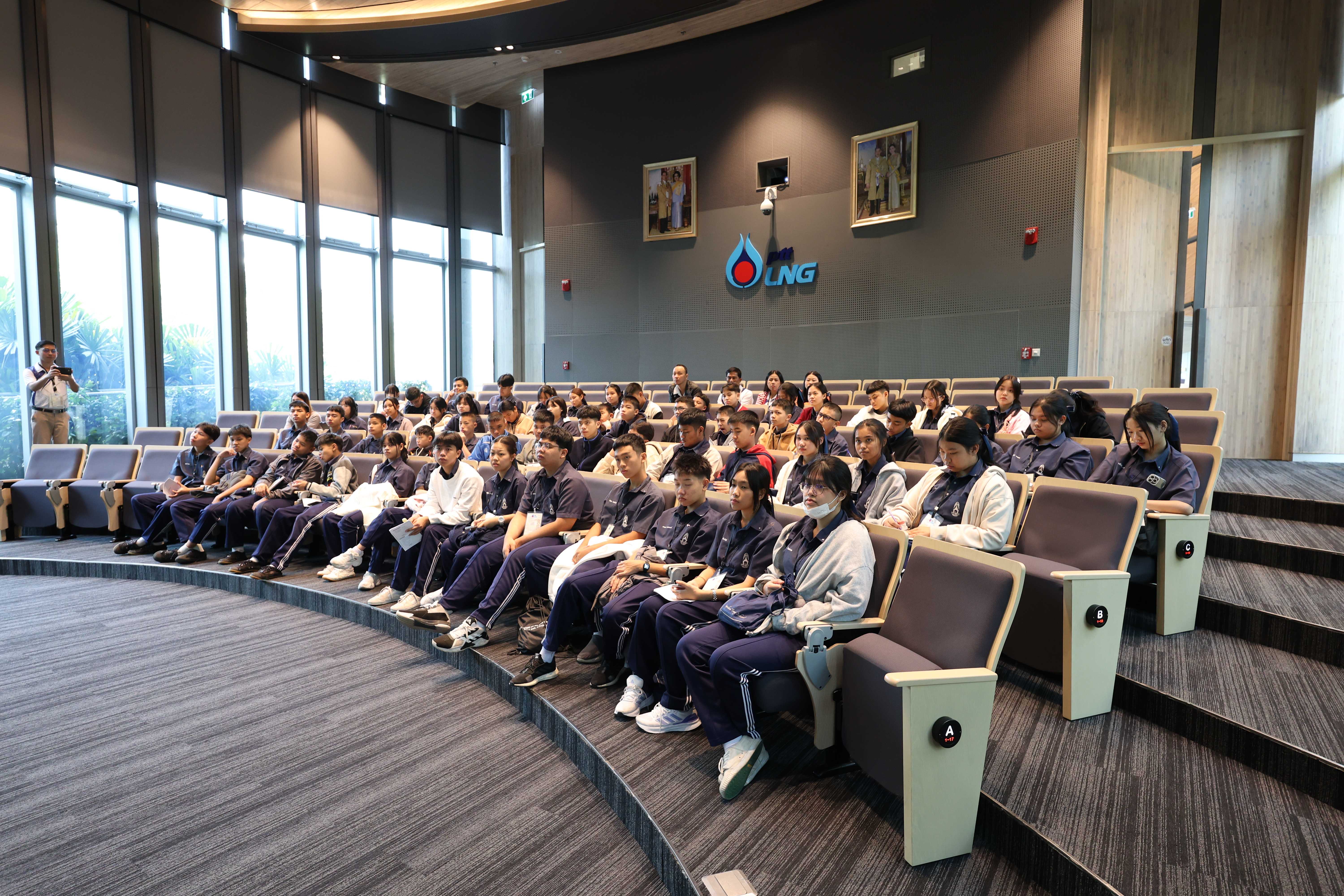 วันที่ 9 มกราคม 2568 เวลา 09.30 น. PTTLNG ให้การต้อนรับคณะโรงเรียนสภาราชินี จังหวัดตรัง จำนวน 70 คน ในโอกาสเยี่ยมชม PTTLNG เพื่อศึกษาดูงานการดำเนินด้านนวัตกรรมการนำพลังงงานความเย็นจาก LNG ที่เหลือใช้ มาพัฒนาให้เกิดประโยชน์สูงสุด โดยคณะฯ ได้รับฟังการบรรยายสรุป “ภาพรวมการดำเนินธุรกิจ PTTLNG” โดย คุณจุฑารัตน์ พิทักษ์วาทิน พนักงานประชาสัมพันธ์อาวุโส ณ ห้องออดิทอเรียม สถานีแอลเอ็นจี มาบตาพุด แห่งที่ 2 หลังจากนั้นเข้าเยี่ยมชมไม้เมืองหนาวภายใน Climatic Dome อาคารนิทรรศน์พรรณพฤกษา