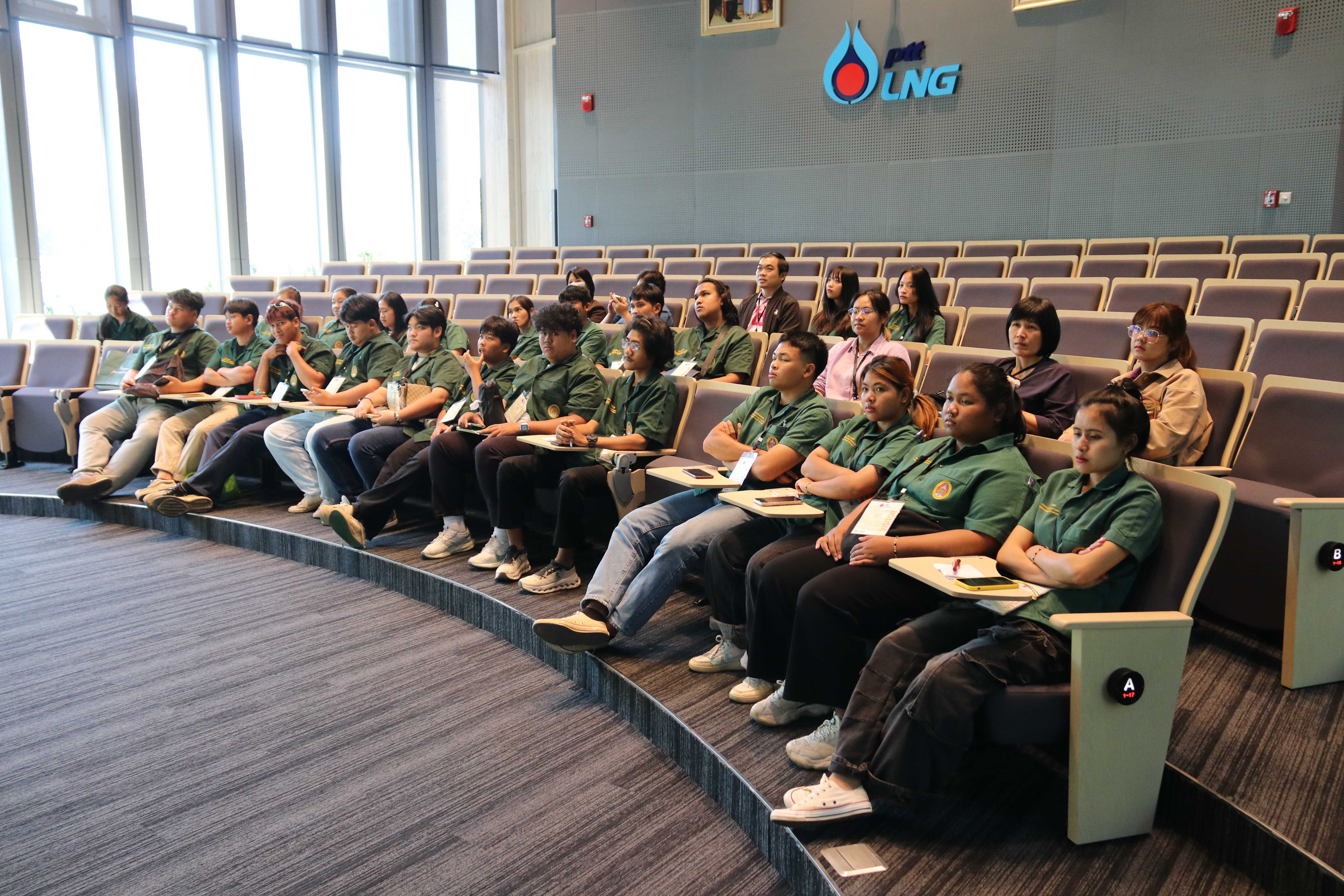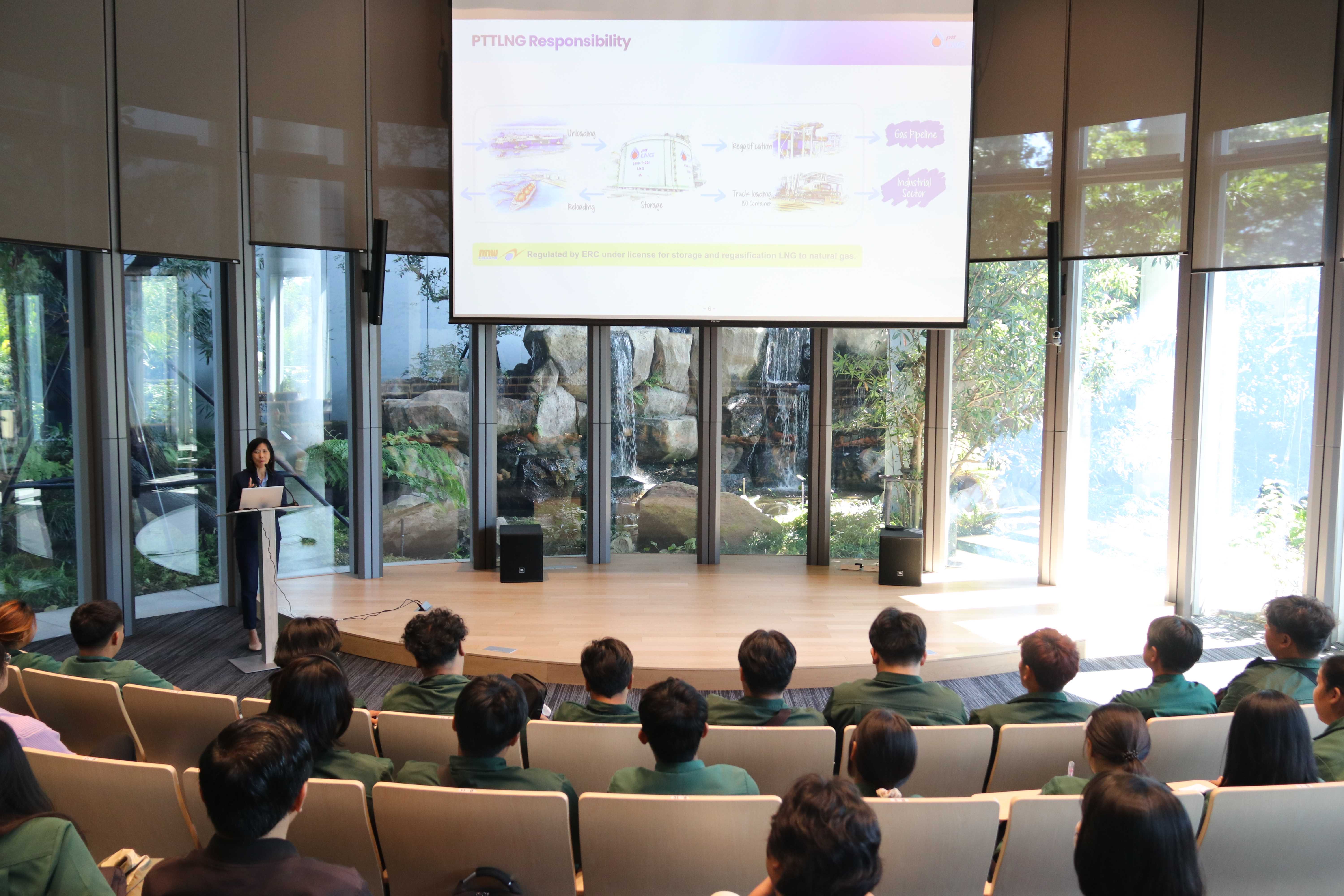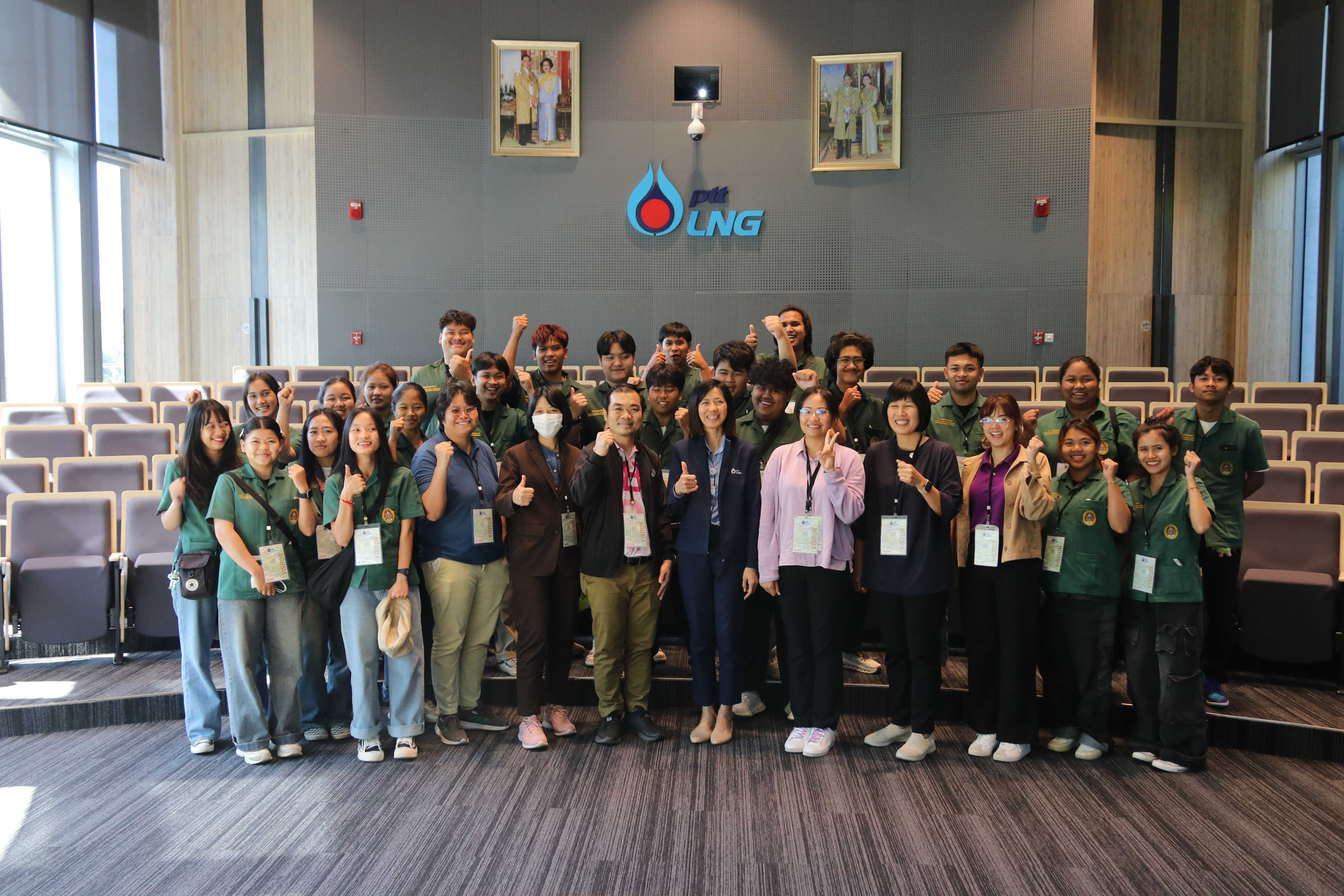 วันที่ 16 มกราคม 2568 เวลา 13.30 น. PTTLNG ให้การต้อนรับคณะหลักสูตรวิทยาศาสตรบัณฑิต สาขาวิชาเกษตรศาสตร์ คณะเทคโนโลยีการเกษตร มหาวิทยาลัยราชภัฏรำไพพรรณี จำนวน 30 คน เนื่องในโอกาสเยี่ยมชม PTTLNG เพื่อศึกษาดูงานการดำเนินด้านนวัตกรรมการนำพลังงงานความเย็นจาก LNG ที่เหลือใช้ มาพัฒนาให้เกิดประโยชน์สูงสุด และเสริมสร้างความรู้เกี่ยวกับการนำก๊าซธรรมชาติเหลวมาใช้ในด้านเกษตร รวมไปถึงเสริมสร้างความเข้าใจและค่านิยมที่ดีเกี่ยวกับการมีส่วนร่วมในการรับผิดชอบต่อชุมชนและสังคมให้แก่นักศึกษาในสาขาวิชาเกษตรศาสตร์ โดยคณะฯ ได้รับฟังการบรรยายสรุป “ภาพรวมการดำเนินธุรกิจ PTTLNG” โดย คุณจุฑารัตน์ พิทักษ์วาทิน พนักงานประชาสัมพันธ์อาวุโส ณ ห้องออดิทอเรียม สถานีแอลเอ็นจี มาบตาพุด แห่งที่ 2 หลังจากนั้นเข้าเยี่ยมชมไม้เมืองหนาวภายใน Climatic Dome อาคารนิทรรศน์พรรณพฤกษา ที่นำพลังงานความเย็นจากก๊าซธรรมชาติเหลว (LNG) มาใช้ประโยชน์กับระบบปรับอากาศภายในอาคาร