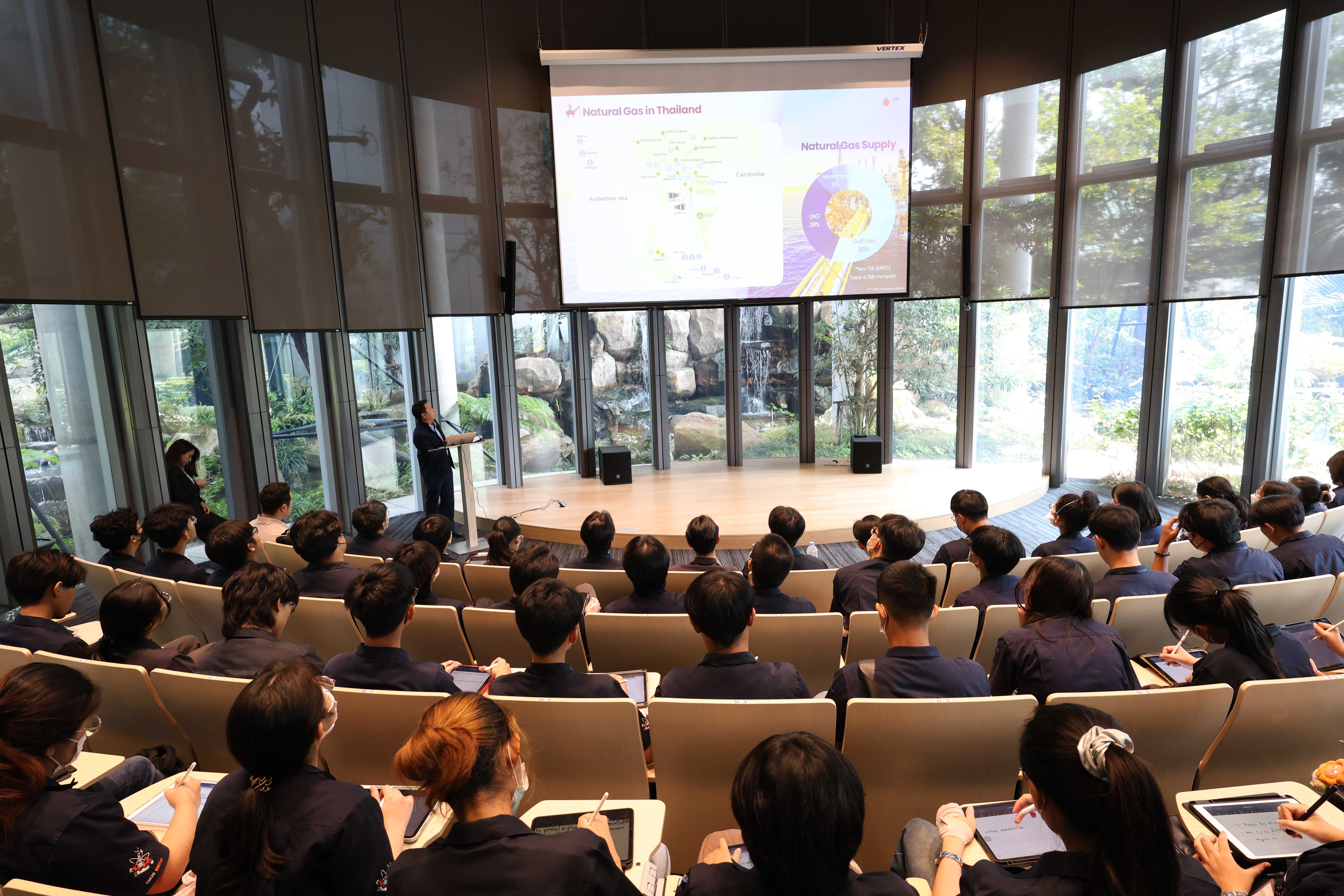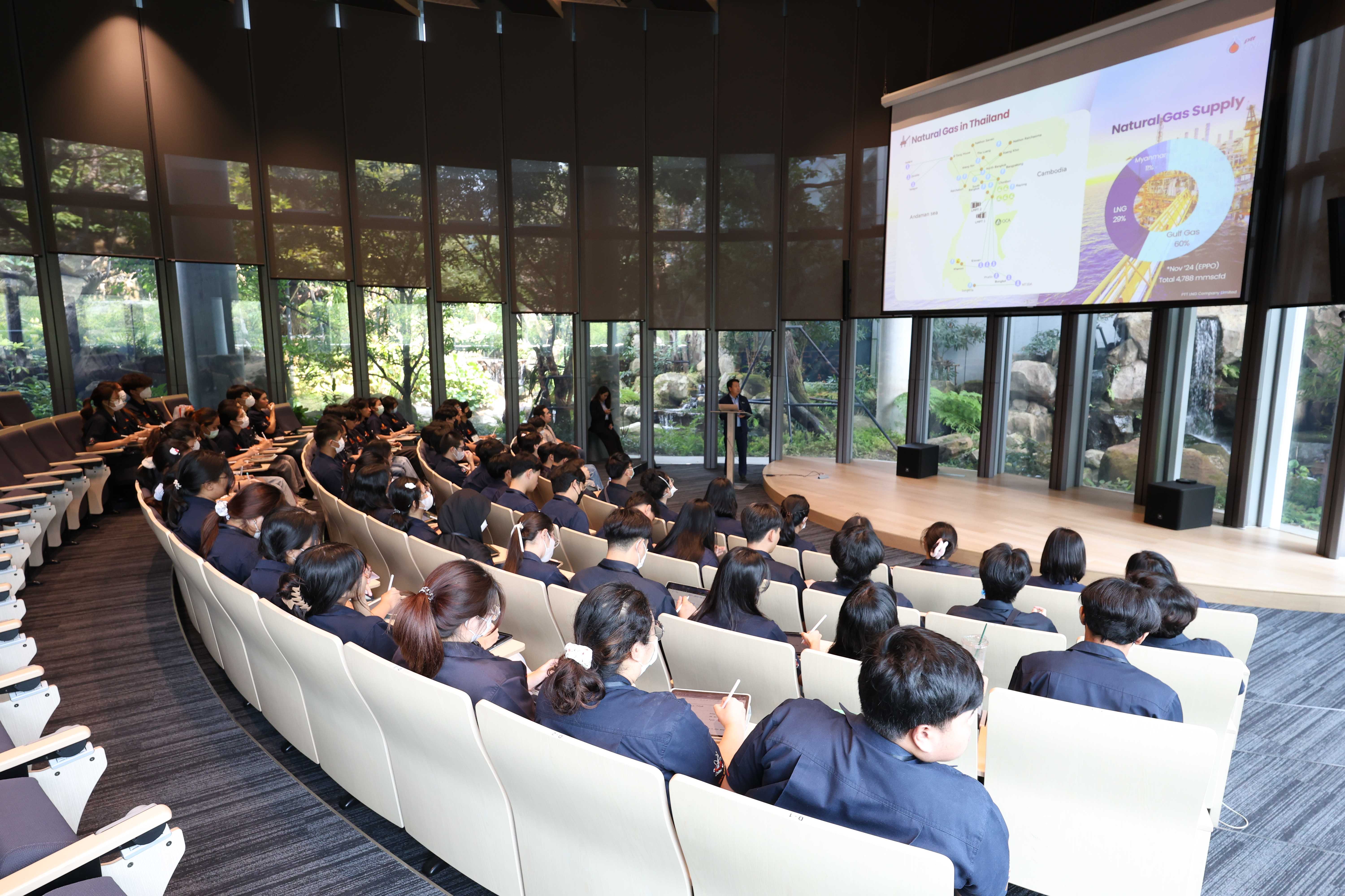 วันที่ 6 กุมภาพันธ์ 2568 เวลา 13.00 น. PTTLNG ให้การต้อนรับคณะหลักสูตรวิศวกรรมศาสตรบัณฑิต สาขาวิชาวิศวกรรมเคมี คณะวิศวกรรมศาสตร์ สถาบันเทคโนโลยีพระจอมเกล้าเจ้าคุณทหารลาดกระบัง จำนวน 74 คน เนื่องในโอกาสเยี่ยมชม PTTLNG เพื่อศึกษาดูงานการดำเนินด้านนวัตกรรมการนำพลังงานความเย็นจาก LNG ที่เหลือใช้ มาพัฒนาให้เกิดประโยชน์สูงสุด รวมถึงศึกษาดูงานกระบวนการผลิต เพื่อเป็นการเสริมสร้างความรู้ความเข้าใจเนื้อหาในการเรียนการสอนของสถาบัน โดยคณะฯ ได้รับฟังการบรรยายสรุป “ภาพรวมการดำเนินธุรกิจ PTTLNG” โดย คุณนรา โตแย้ม ผู้จัดการส่วนบริการกลาง จัดหาและคลังพัสดุ ณ ห้องออดิทอเรียม สถานีแอลเอ็นจี มาบตาพุด แห่งที่ 2 หลังจากนั้นเข้าเยี่ยมชมไม้เมืองหนาวภายใน Climatic Dome อาคารนิทรรศน์พรรณพฤกษา ที่นำพลังงานความเย็นจากก๊าซธรรมชาติเหลว (LNG) มาใช้ประโยชน์กับระบบปรับอากาศภายในอาคาร