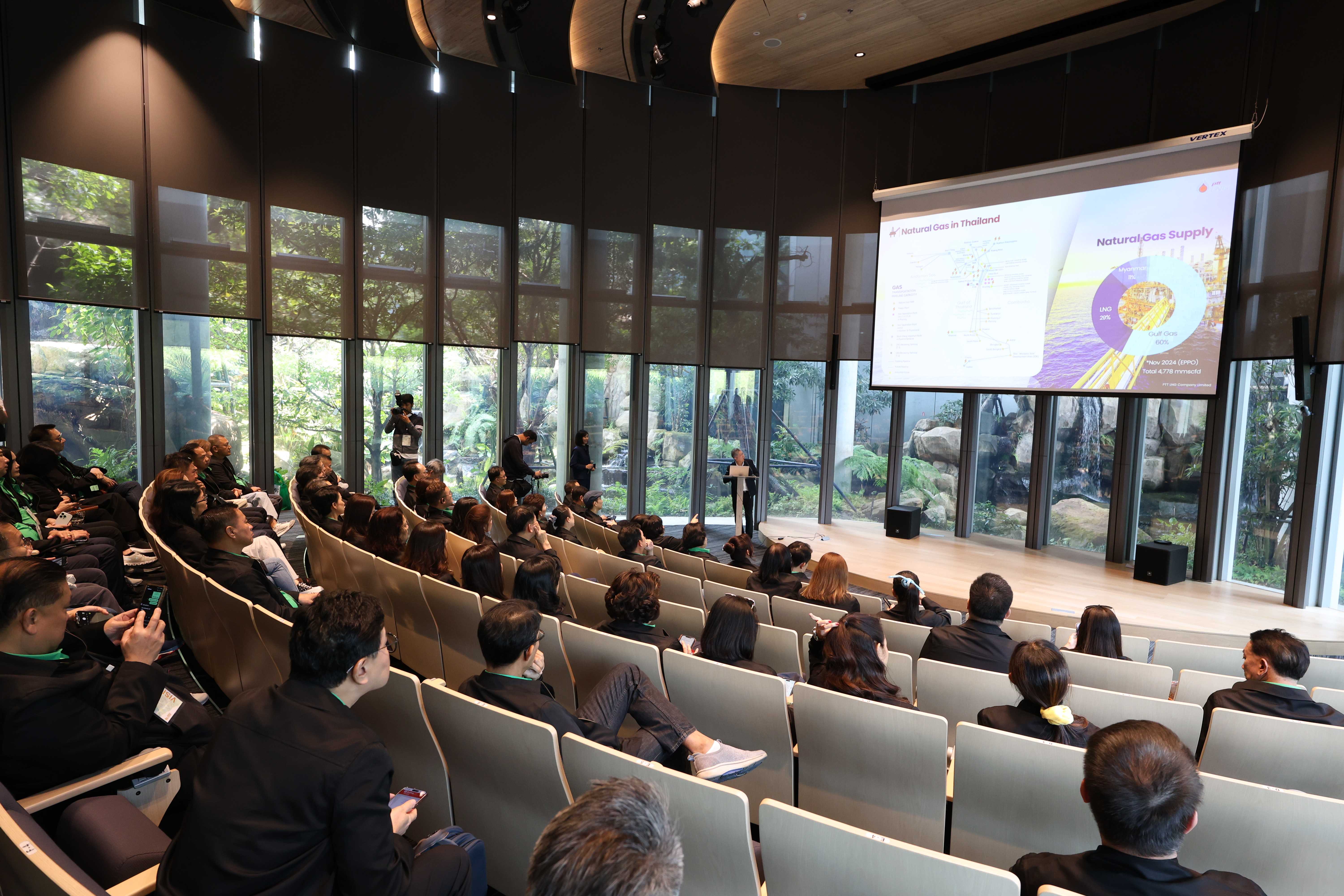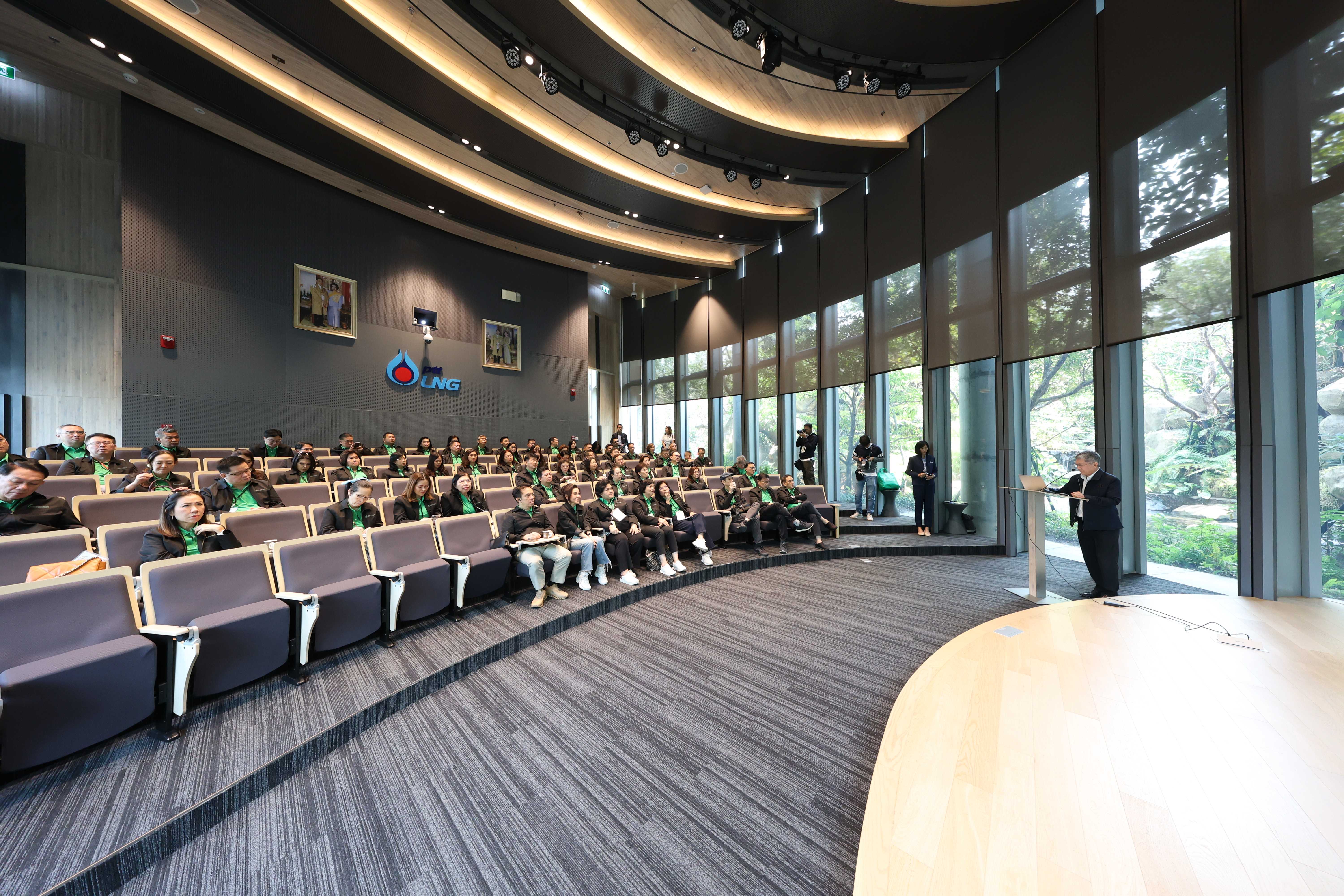 วันที่ 14 กุมภาพันธ์ 2568 เวลา 10.30 น. คุณรัตติกูล ปิยะวงค์วาณิชย์ กรรมการผู้จัดการใหญ่ บริษัท พีทีที แอลเอ็นจี จำกัด ให้การต้อนรับและบรรยายสรุปภาพรวมการดำเนินธุรกิจ PTTLNG ให้กับ คณะผู้เข้าอบรมหลักสูตรผู้บริหารระดับสูงด้านวิทยาการพลังงาน รุ่นที่ 21 (วพน.21) จำนวน 90 คน ในโอกาสเยี่ยมชม PTTLNG ณ ห้องออดิทอเรียม สถานีแอลเอ็นจี มาบตาพุด แห่งที่ 2 หลังจากนั้นได้เยี่ยมชมศูนย์ควบคุมการปฏิบัติการส่วนกลาง (Central Control Room) และ Rooftop Garden พร้อมทั้งเยี่ยมชมไม้เมืองหนาวภายในอาคารนิทรรศน์พรรณพฤกษา ที่ได้จากการนำพลังงานความเย็นของก๊าซธรรมชาติเหลว LNG มาใช้ให้เกิดประโยชน์กับระบบปรับอากาศภายใน Climatic Dome