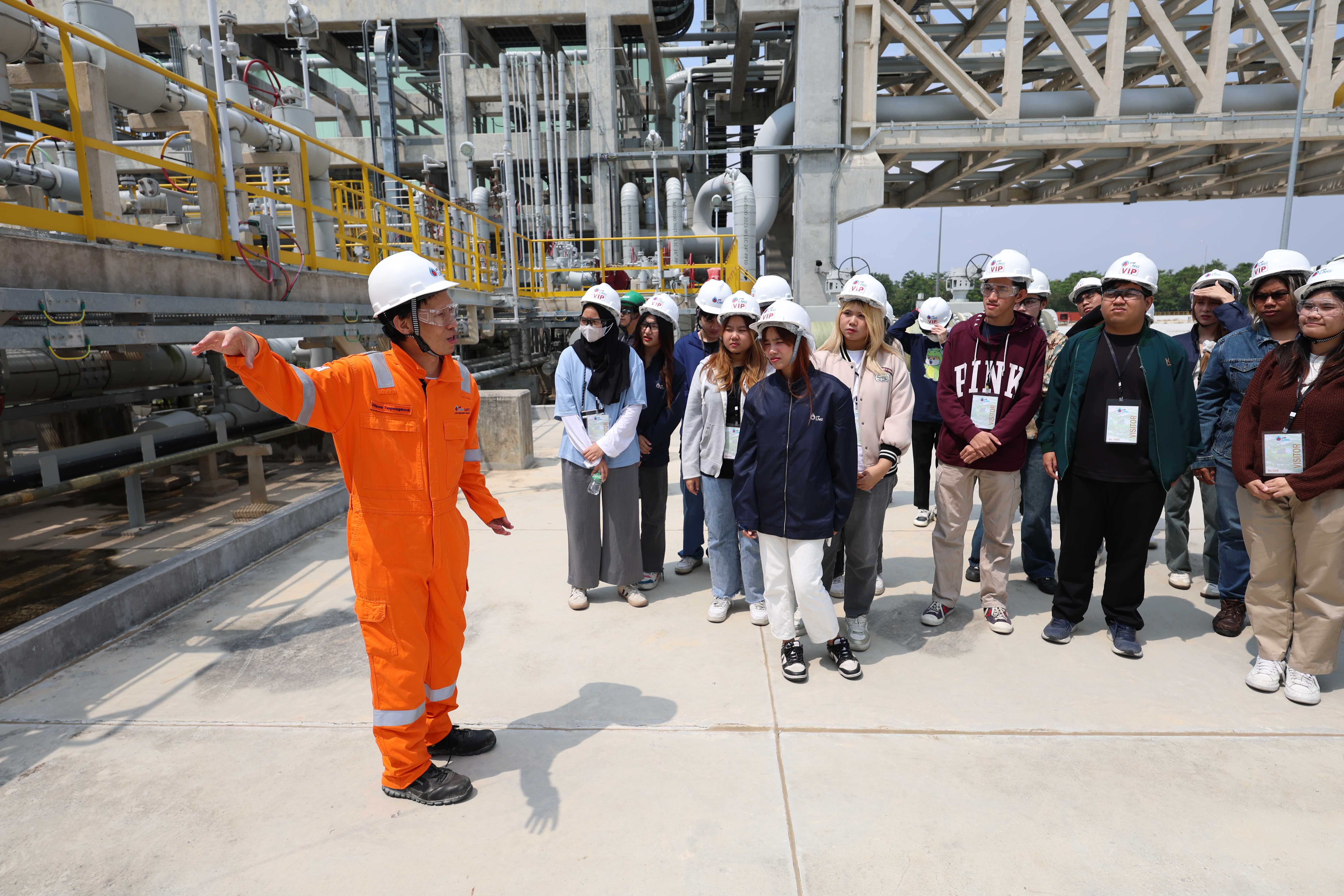 วันที่ 22 กุมภาพันธ์ 2568 เวลา 09.00 น. PTTLNG ให้การต้อนรับภาควิชาวิศวกรรมเคมี คณะวิศวกรรมศาสตร์ มหาวิทยาลัยเกษตรศาสตร์ จำนวน 80 คน เนื่องในโอกาสเยี่ยมชม PTTLNG เพื่อศึกษาดูงานการดำเนินธุรกิจของ PTTLNG รวมถึงเสริมสร้างความรู้ ความเข้าใจ ระบบการบริหารจัดการที่ดีของบริษัทฯ และระบบการจัดการพลังงานควบคู่กับการอนุรักษ์สิ่งแวดล้อมได้อย่างยั่งยืน โดยคณะฯได้รับฟังการบรรยายสรุป “ภาพรวมการดำเนินธุรกิจ PTTLNG” โดยคุณรณพร คล่องคำนวณการ ผู้จัดการส่วนธุรกิจวิศวกรรม ณ ห้องออดิทอเรียม สถานีแอลเอ็นจี มาบตาพุด แห่งที่ 2 และรับชมการสาธิตคุณสมบัติของก๊าซธรรมชาติเหลว โดยคุณวรัญญู วรธงไชย พนักงานประชาสัมพันธ์ รวมถึงเข้าเยี่ยมชมศูนย์ควบคุมการปฏิบัติการส่วนกลาง (Central Control Room) และพื้นที่กระบวนการผลิต โดยมีคุณกิติภูมิ ตั้งวงษ์พิมุข ผู้จัดการส่วนสื่อสารองค์กรและกิจการเพื่อสังคม และคุณจักรกฤษณ์ ชินบุตร ผู้จัดการแผนกควบคุมการผลิต ร่วมบรรยายและตอบข้อซักถาม หลังจากนั้นได้เข้าเยี่ยมชมไม้เมืองหนาวภายใน Climatic Dome อาคารนิทรรศน์พรรณพฤกษา ที่นำพลังงานความเย็นจากก๊าซธรรมชาติเหลว (LNG) มาใช้ประโยชน์กับระบบปรับอากาศภายในอาคาร