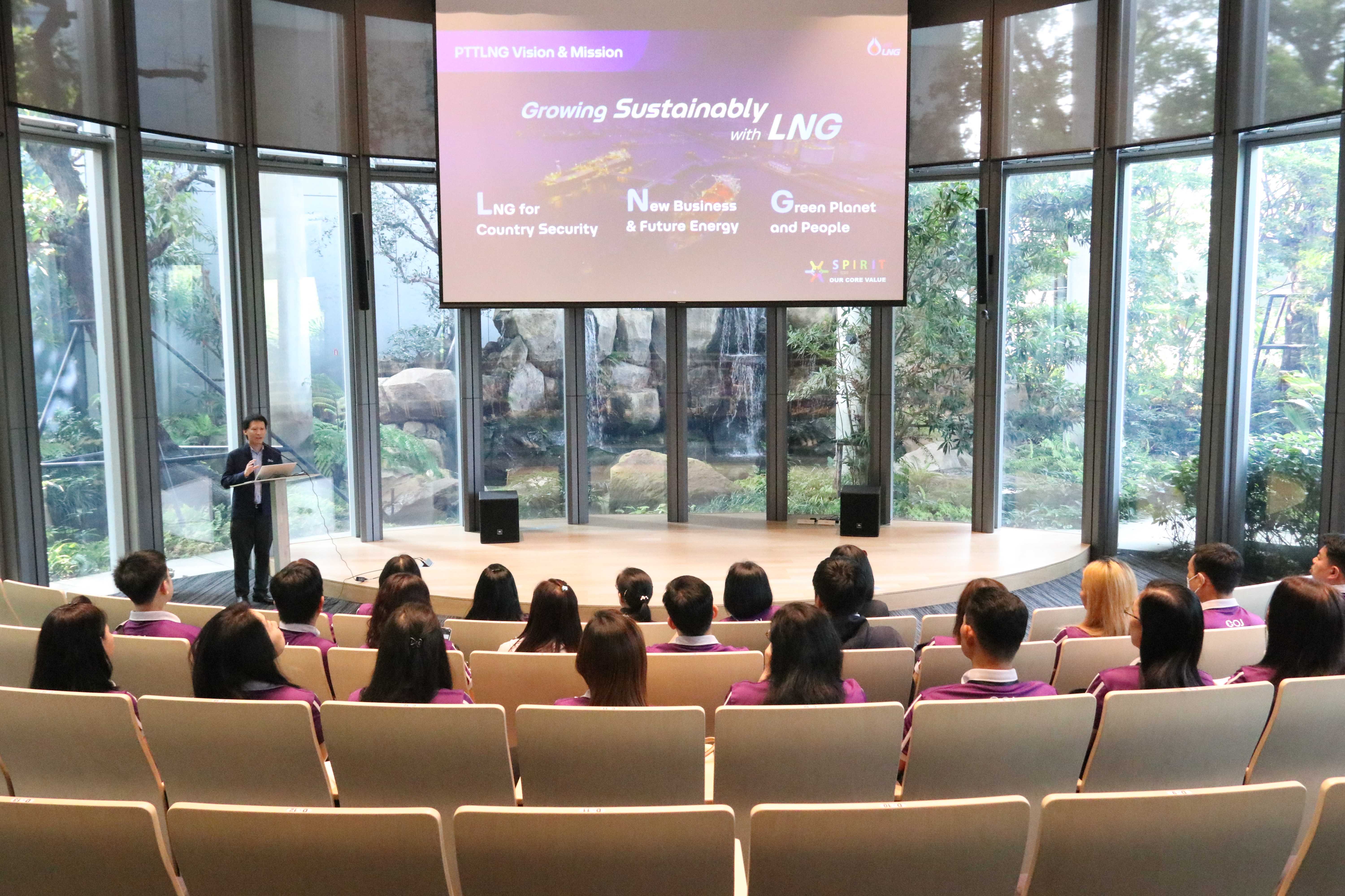 วันที่ 7 มีนาคม พ.ศ. 2568 PTTLNG ให้การต้อนรับสำนักคณะกรรมการบริหารศาลยุติธรรม สำนักงานศาลยุติธรรม เนื่องในโอกาสเยี่ยมชม PTTLNG เพื่อศึกษาดูงานด้านการจัดการระบบนิเวศน์ และการบริหารจัดการพลังงานควบคู่กับการอนุรักษ์สิ่งแวดล้อมได้อย่างยั่งยืน โดยคณะฯได้รับฟังการบรรยายสรุป “ภาพรวมการดำเนินธุรกิจ PTTLNG” โดย คุณกิติภูมิ ตั้งวงษ์พิมุข ผู้จัดการส่วนสื่อสารองค์กรและกิจการเพื่อสังคม หลังจากนั้นเข้าเยี่ยมชมศูนย์ควบคุมการปฏิบัติการส่วนกลาง (Central Control Room) รวมถึงเข้าเยี่ยมชมไม้เมืองหนาวภายในอาคารนิทรรศน์พรรณพฤกษา ศูนย์เลิศพนานุรักษ์ ที่นำพลังงานความเย็นจากก๊าซธรรมชาติเหลว (LNG) มาใช้ประโยชน์กับระบบปรับอากาศภายในอาคาร