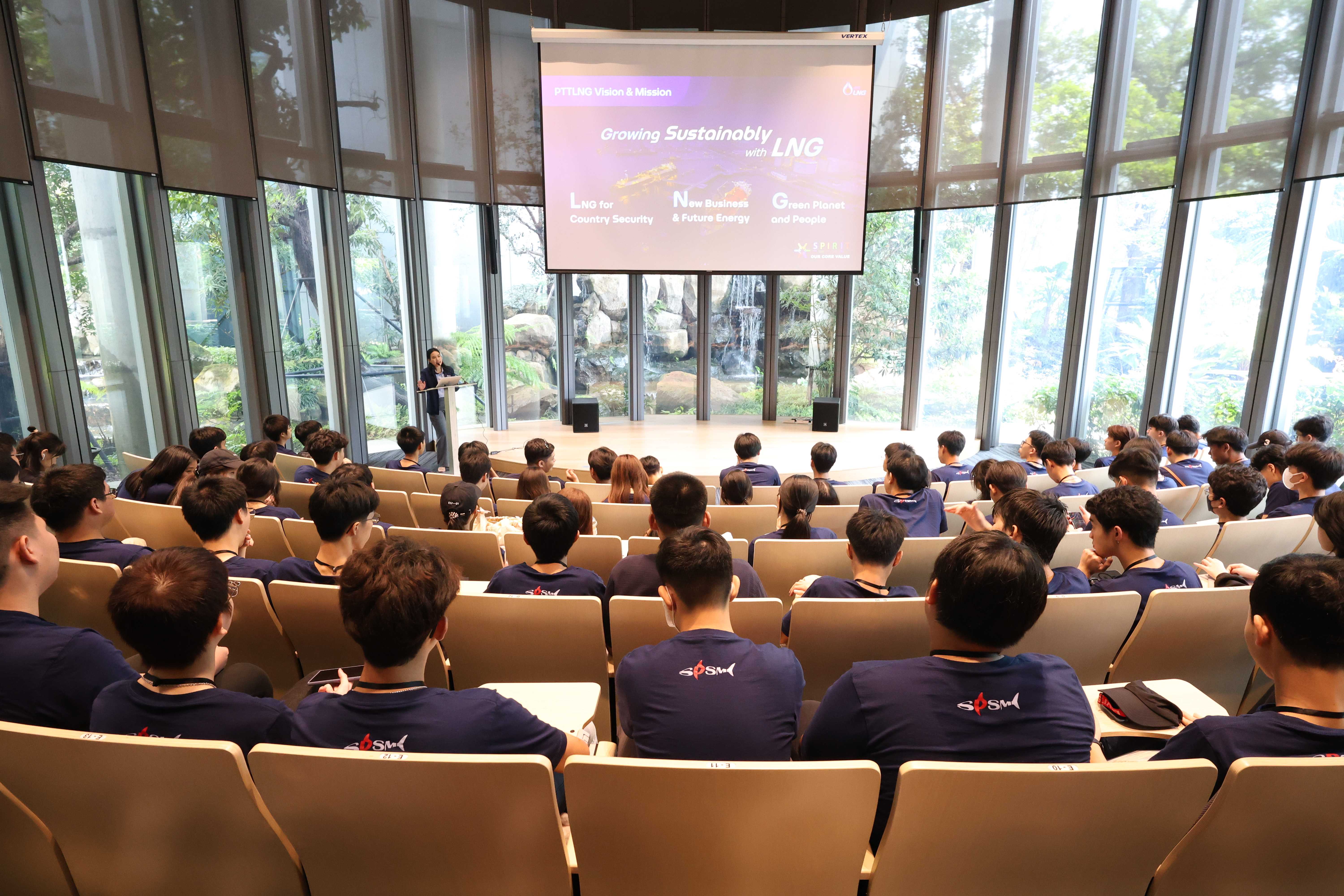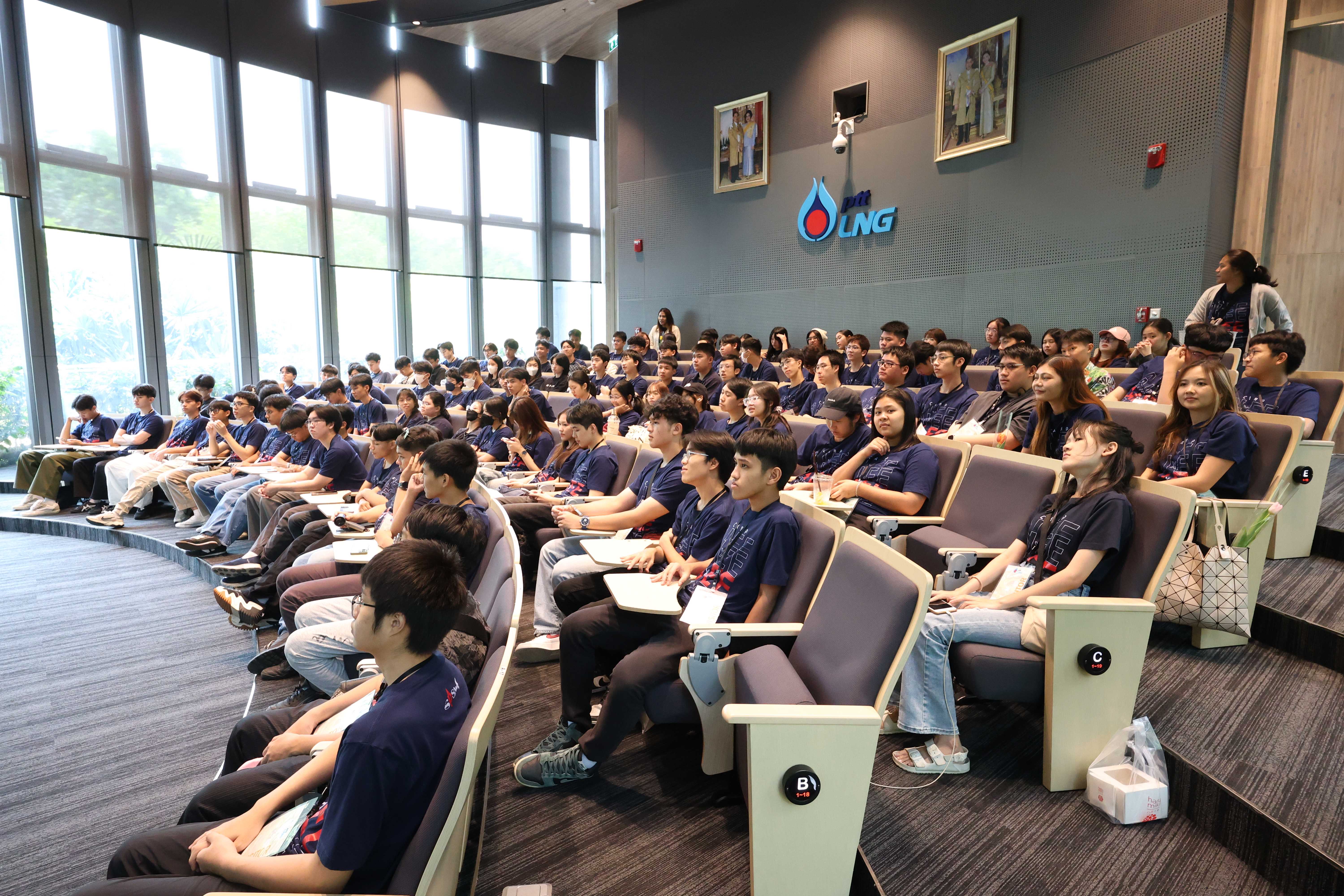 วันที่ 18 มีนาคม พ.ศ. 2568 PTTLNG ให้การต้อนรับคณาจารย์และนักเรียนระดับชั้นมัธยมศึกษาปีที่ 4-6 วิชาเอกวิศวกรรมปัญญาประดิษฐ์ (AI) และวิชาเอกวิศวกรรมไฟฟ้าและยานยนต์ (EE) สาขาวิทยาการคอมพิวเตอร์ โรงเรียนสาธิตมหาวิทยาลัยศรีนครินทรวิโรฒ ประสานมิตร (ฝ่ายมัธยม) เนื่องในโอกาสเยี่ยมชม PTTLNG เพื่อศึกษาดูงานการดำเนินงานของบริษัท รวมถึงการบริหารจัดการพลังงานควบคู่กับการอนุรักษ์สิ่งแวดล้อมได้อย่างยั่งยืน โดยคณะฯได้รับฟังการบรรยายสรุป “ภาพรวมการดำเนินธุรกิจ PTTLNG” โดย คุณวรัญญู วรธงไชย พนักงานประชาสัมพันธ์ หลังจากนั้นเข้าเยี่ยมชมไม้เมืองหนาวภายในอาคารนิทรรศน์พรรณพฤกษา ศูนย์เลิศพนานุรักษ์ ที่นำพลังงานความเย็นจากก๊าซธรรมชาติเหลว (LNG) มาใช้ประโยชน์กับระบบปรับอากาศภายในอาคาร