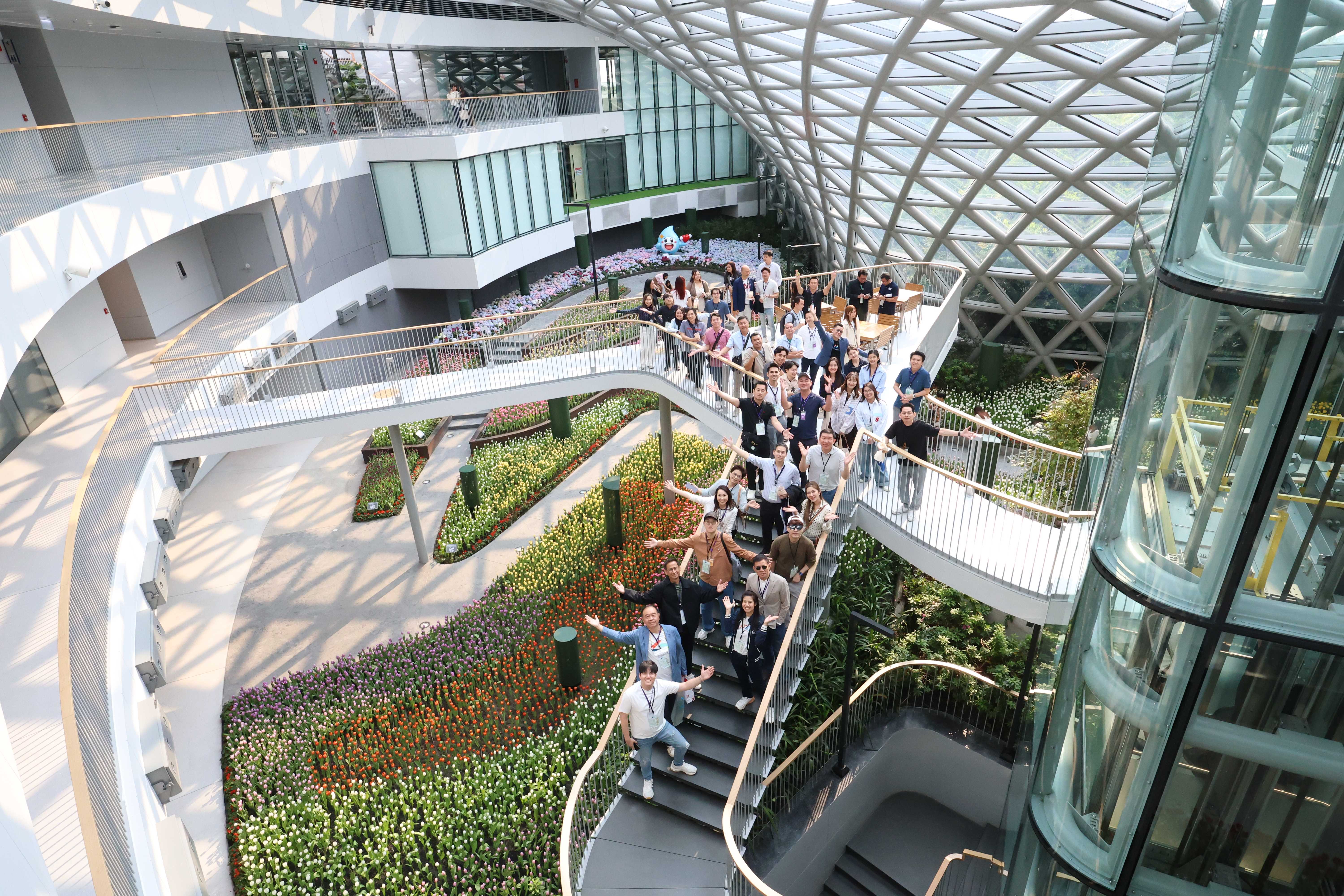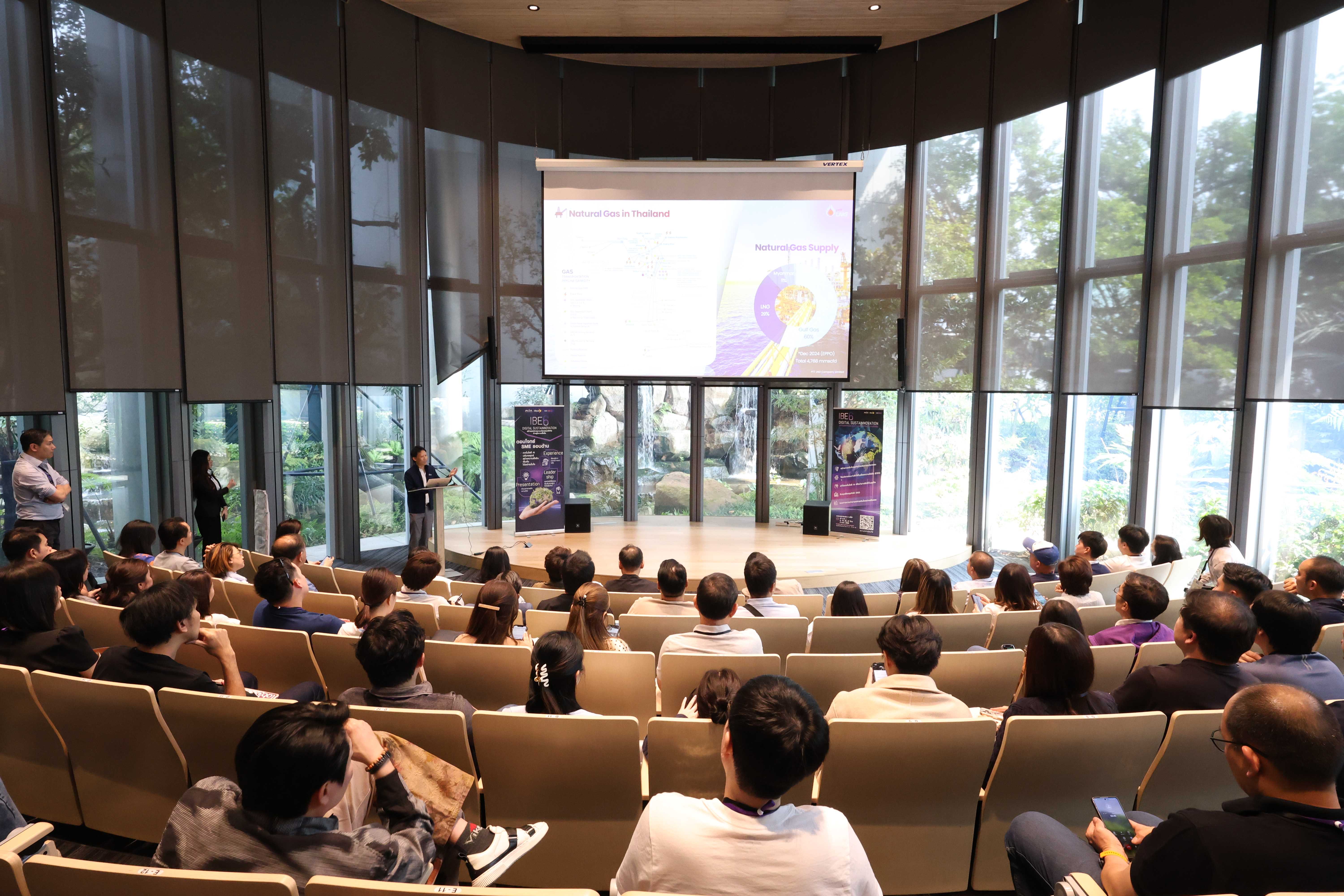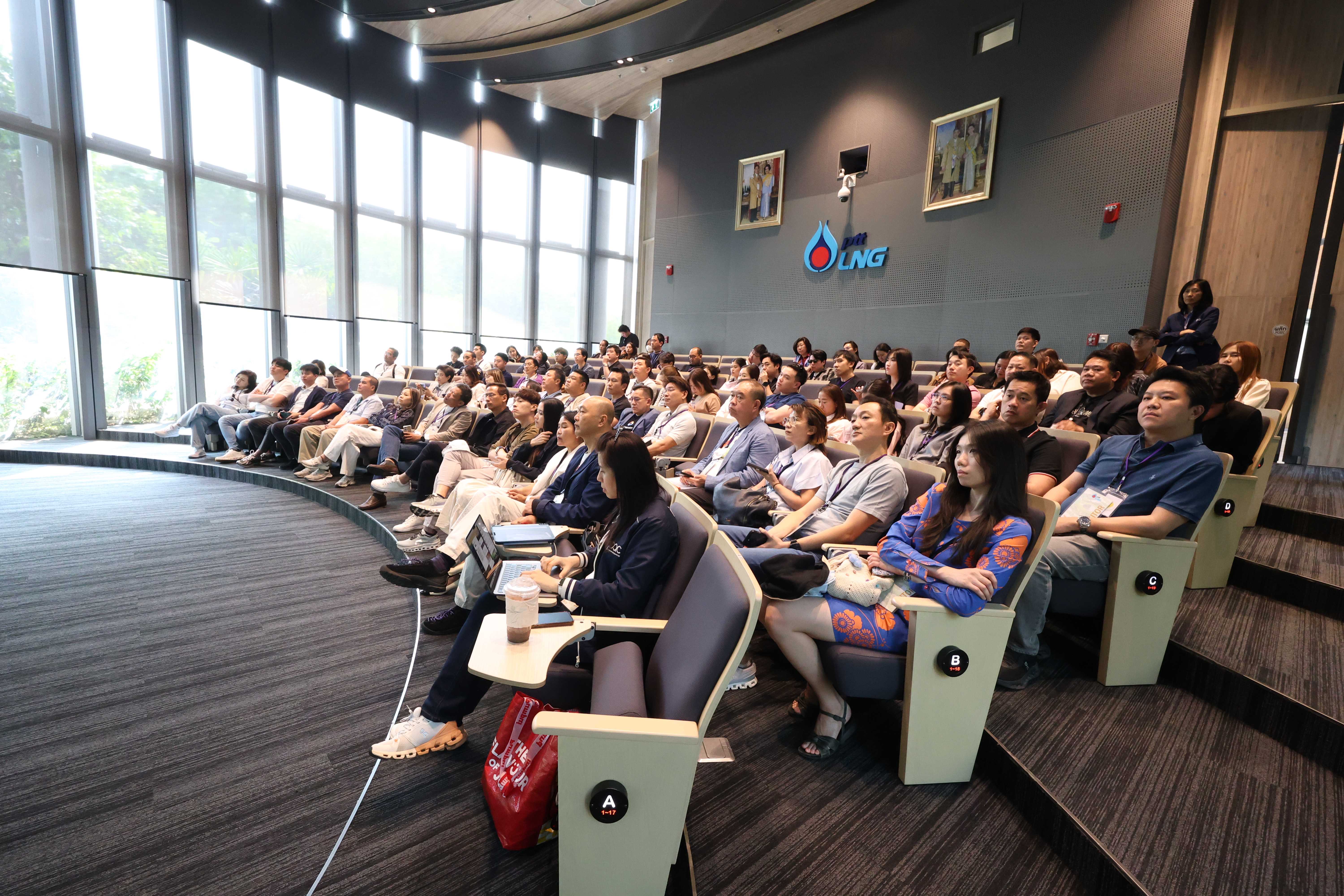 วันที่ 21 มีนาคม พ.ศ. 2568 PTTLNG ให้การต้อนรับคณะผู้ประกอบการ SMEs ที่เข้าร่วมอบรมหลักสูตร IBE6 Digital Sustainovation ธนาคารไทยพาณิชย์ จำกัด (มหาชน) เนื่องในโอกาสเยี่ยมชม PTTLNG เพื่อศึกษาดูงานระบบการบริหารจัดการที่ดีของบริษัทฯ และระบบการจัดการพลังงานควบคู่กับการอนุรักษ์สิ่งแวดล้อมได้อย่างมีประสิทธิภาพ โดยการนำความเย็นจากกระบวนการแปรสภาพก๊าซธรรมชาติเหลว (LNG) มาใช้ให้เกิดประโยชน์สูงสุด ควบคู่กับการอนุรักษ์สิ่งแวดล้อมได้อย่างยั่งยืน โดยคณะฯได้รับฟังการบรรยายสรุป “ภาพรวมการดำเนินธุรกิจ PTTLNG” โดย คุณกิติภูมิ ตั้งวงษ์พิมุข ผู้จัดการส่วนสื่อสารองค์กรและกิจการเพื่อสังคม หลังจากนั้นเข้าเยี่ยมชมศูนย์ควบคุมการปฏิบัติการส่วนกลาง (Central Control Room) ตลอดจนเข้าเยี่ยมชมไม้เมืองหนาวภายในอาคารนิทรรศน์พรรณพฤกษา ศูนย์เลิศพนานุรักษ์ ที่นำพลังงานความเย็นจากก๊าซธรรมชาติเหลว (LNG) มาใช้ประโยชน์กับระบบปรับอากาศภายในอาคาร