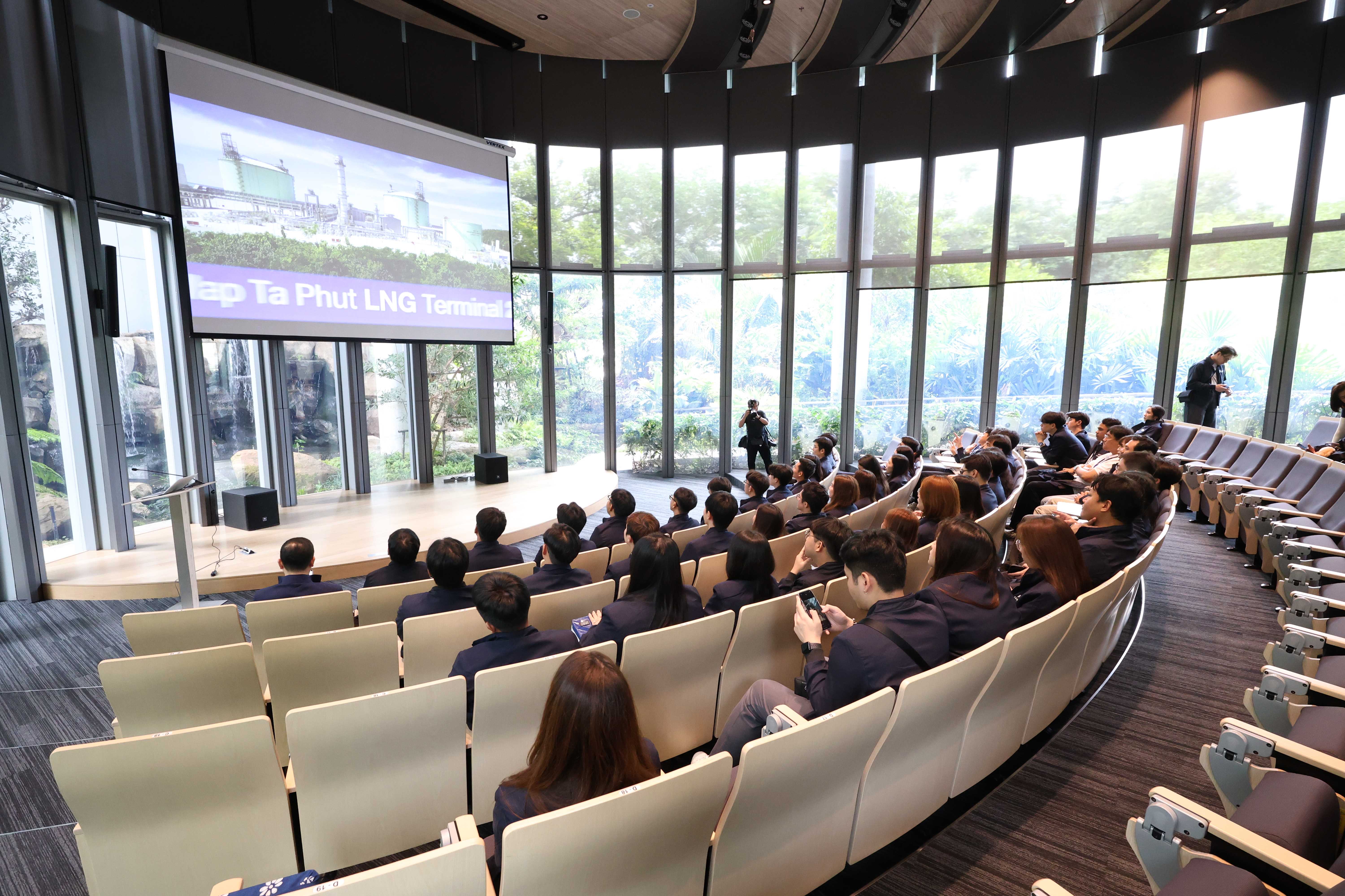 วันที่ 26 มีนาคม พ.ศ. 2568 PTTLNG ให้การต้อนรับพนักงานใหม่หลักสูตร PTT Orientation ประจำปี 2568 เนื่องในโอกาสเยี่ยมชม PTTLNG เพื่อศึกษาดูงานการดำเนินธุรกิจของ PTTLNG ให้เกิดความรู้ ความเข้าใจ ที่มาและการดำเนินด้านนวัตกรรมการนำพลังงานความเย็นจาก LNG ที่เหลือใช้มาพัฒนาให้เกิดประโยชน์สูงสุด รวมถึงระบบการจัดการพลังงานควบคู่กับการอนุรักษ์สิ่งแวดล้อมได้อย่างยั่งยืน โดยคณะฯได้รับฟังการบรรยายสรุป “ภาพรวมการดำเนินธุรกิจ PTTLNG” โดย คุณนฤนาถ หุ่นเจริญ ผู้จัดการส่วนทรัพยากรบุคคลและพัฒนาองค์กร หลังจากนั้นเข้าเยี่ยมชมศูนย์ควบคุมการปฏิบัติการส่วนกลาง (Central Control Room) ตลอดจนเข้าเยี่ยมชมไม้เมืองหนาวภายในอาคารนิทรรศน์พรรณพฤกษา ศูนย์เลิศพนานุรักษ์ ที่นำพลังงานความเย็นจากก๊าซธรรมชาติเหลว (LNG) มาใช้ประโยชน์กับระบบปรับอากาศภายในอาคาร