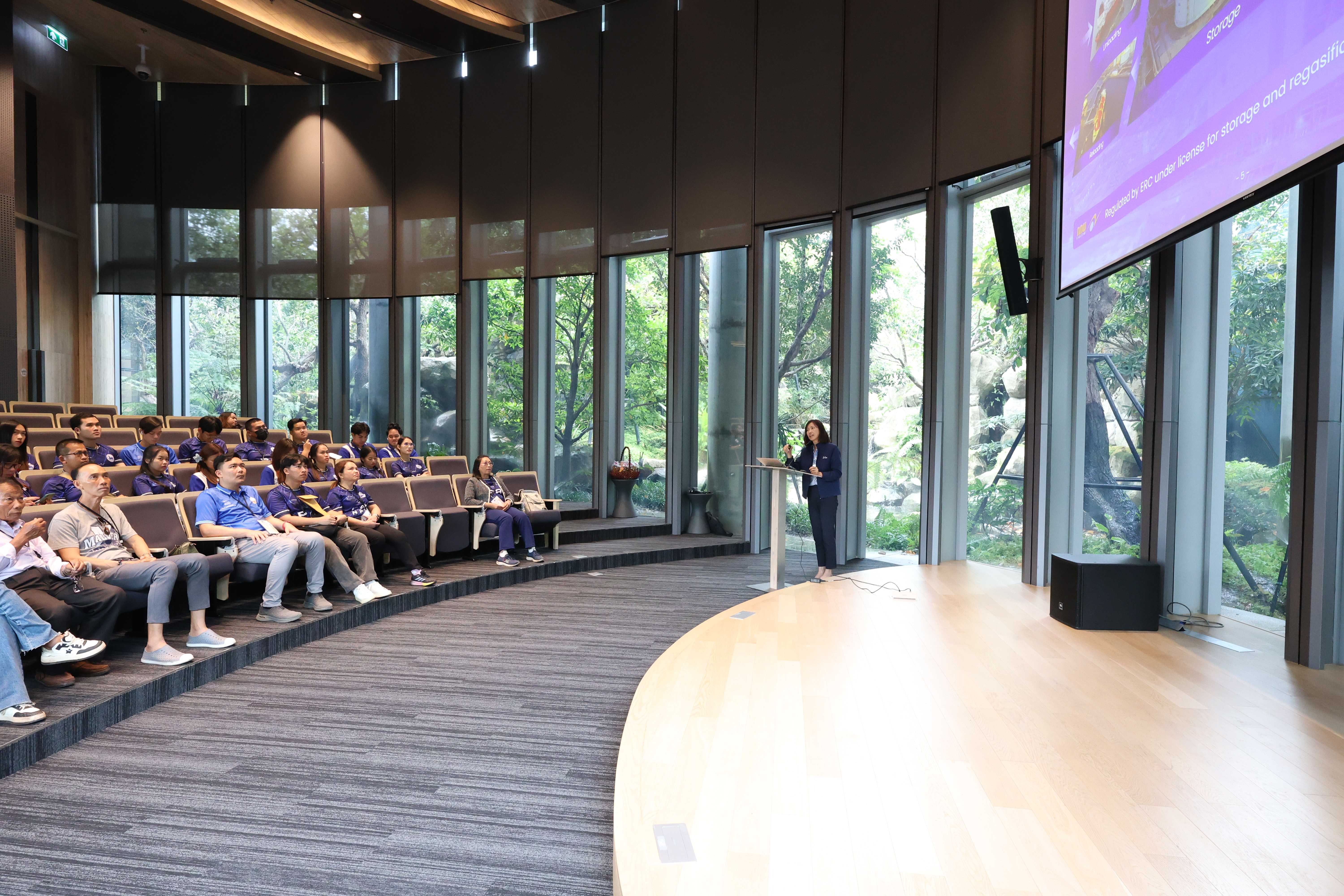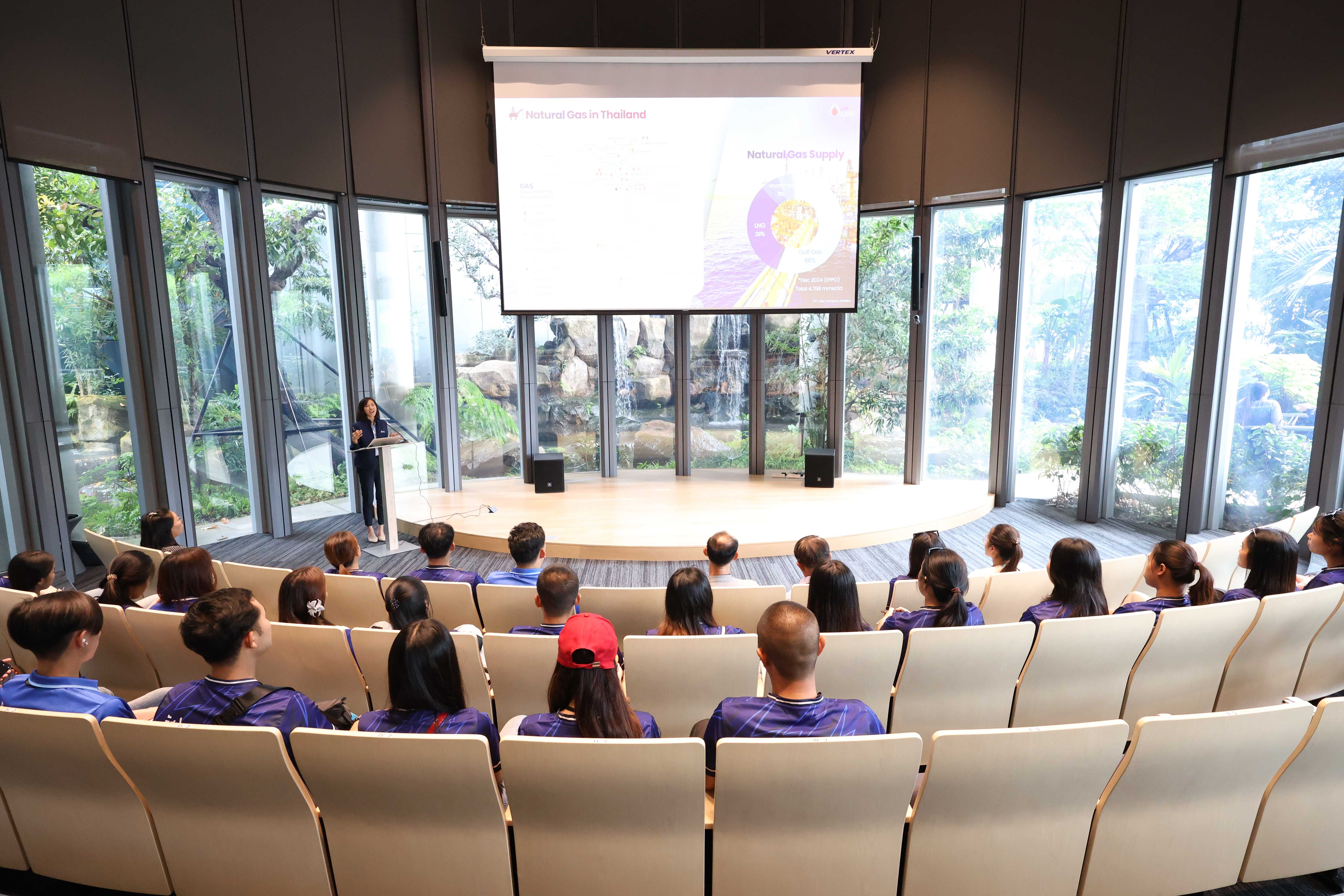 วันที่ 27 มีนาคม พ.ศ. 2568 PTTLNG ให้การต้อนรับคณาจารย์และนักศึกษา คณะศิลปะศาสตร์และวิทยาศาสตร์ สาขาวิชารัฐประศาสนศาสตร์ มหาวิทยาลัยนครพนม เนื่องในโอกาสเยี่ยมชม PTTLNG เพื่อศึกษาดูงานให้เกิดความรู้ ความเข้าใจ ที่มาของการดำเนินธุรกิจของ PTTLNG และการดำเนินงานตามภารกิจ โดยคำนึงถึงการมีส่วนรับผิดชอบต่อชุมชนและสังคมอย่างยั่งยืน โดยคณะฯได้รับฟังการบรรยายสรุป “ภาพรวมการดำเนินธุรกิจ PTTLNG” โดย คุณจุฑารัตน์ พิทักษ์วาทิน พนักงานประชาสัมพันธ์อาวุโส หลังจากนั้นเข้าเยี่ยมชมไม้เมืองหนาวภายในอาคารนิทรรศน์พรรณพฤกษา ศูนย์เลิศพนานุรักษ์ ที่นำพลังงานความเย็นจากก๊าซธรรมชาติเหลว (LNG) มาใช้ประโยชน์กับระบบปรับอากาศภายในอาคาร