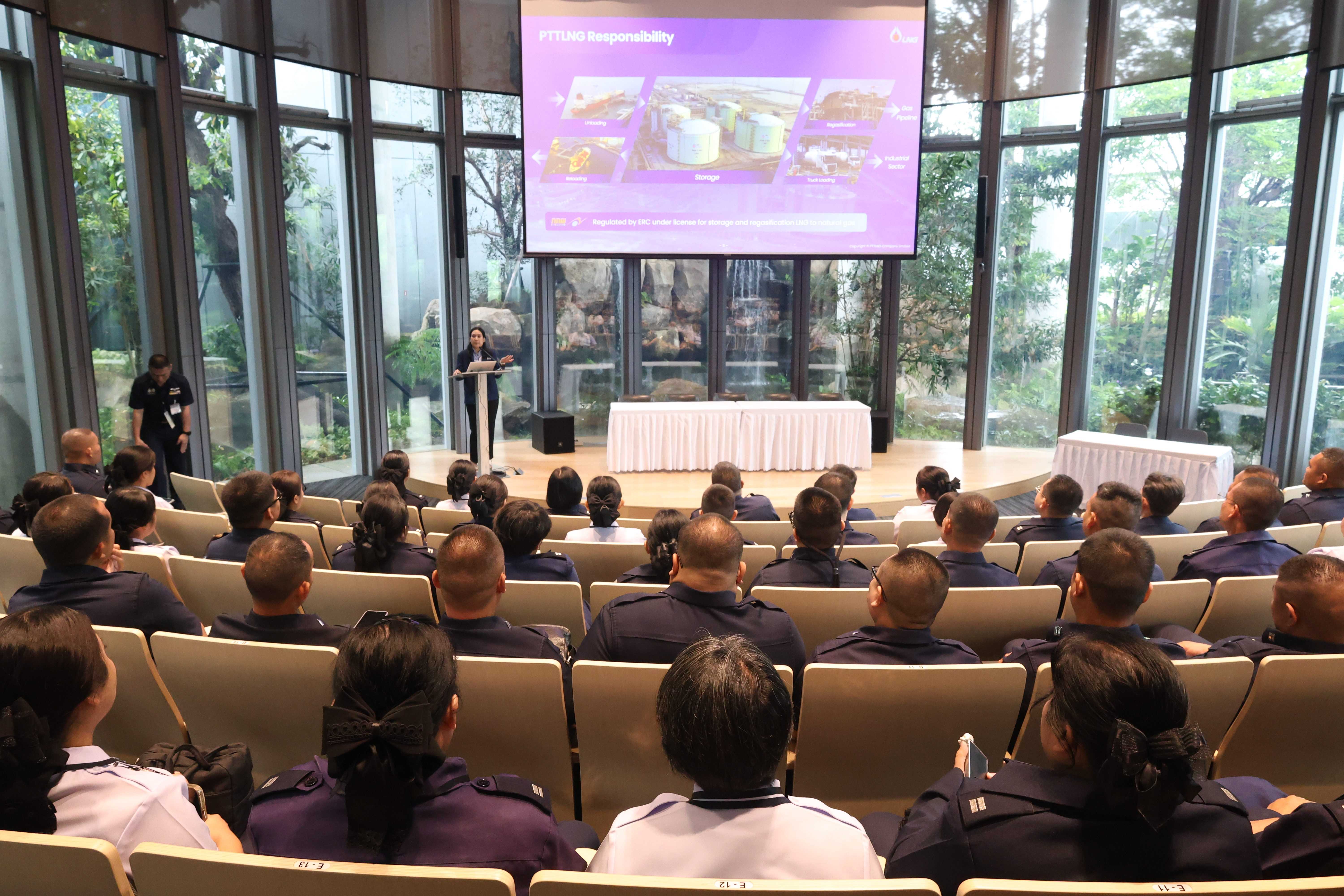 วันที่ 1 เมษายน พ.ศ. 2568 PTTLNG ให้การต้อนรับคณะนายทหารชั้นสัญญาบัตรที่เข้าร่วมอบรมหลักสูตรนายทหารส่งกำลังบำรุงชั้นต้น พร้อมคณะอาจารย์และเจ้าหน้าที่ กรมส่งกำลังบำรุงทหารอากาศ เนื่องในโอกาสเยี่ยมชม PTTLNG เพื่อศึกษาดูงานการดำเนินธุรกิจของ PTTLNG รวมถึงระบบการจัดการพลังงานควบคู่กับการอนุรักษ์สิ่งแวดล้อมได้อย่างยั่งยืน โดยคณะฯได้รับฟังการบรรยายสรุป “ภาพรวมการดำเนินธุรกิจ PTTLNG” โดย คุณวรัญญู วรธงไชย พนักงานประชาสัมพันธ์ หลังจากนั้นเข้าเยี่ยมชมไม้เมืองหนาวภายในอาคารนิทรรศน์พรรณพฤกษา ศูนย์เลิศพนานุรักษ์ ที่นำพลังงานความเย็นจากก๊าซธรรมชาติเหลว (LNG) มาใช้ประโยชน์กับระบบปรับอากาศภายในอาคาร