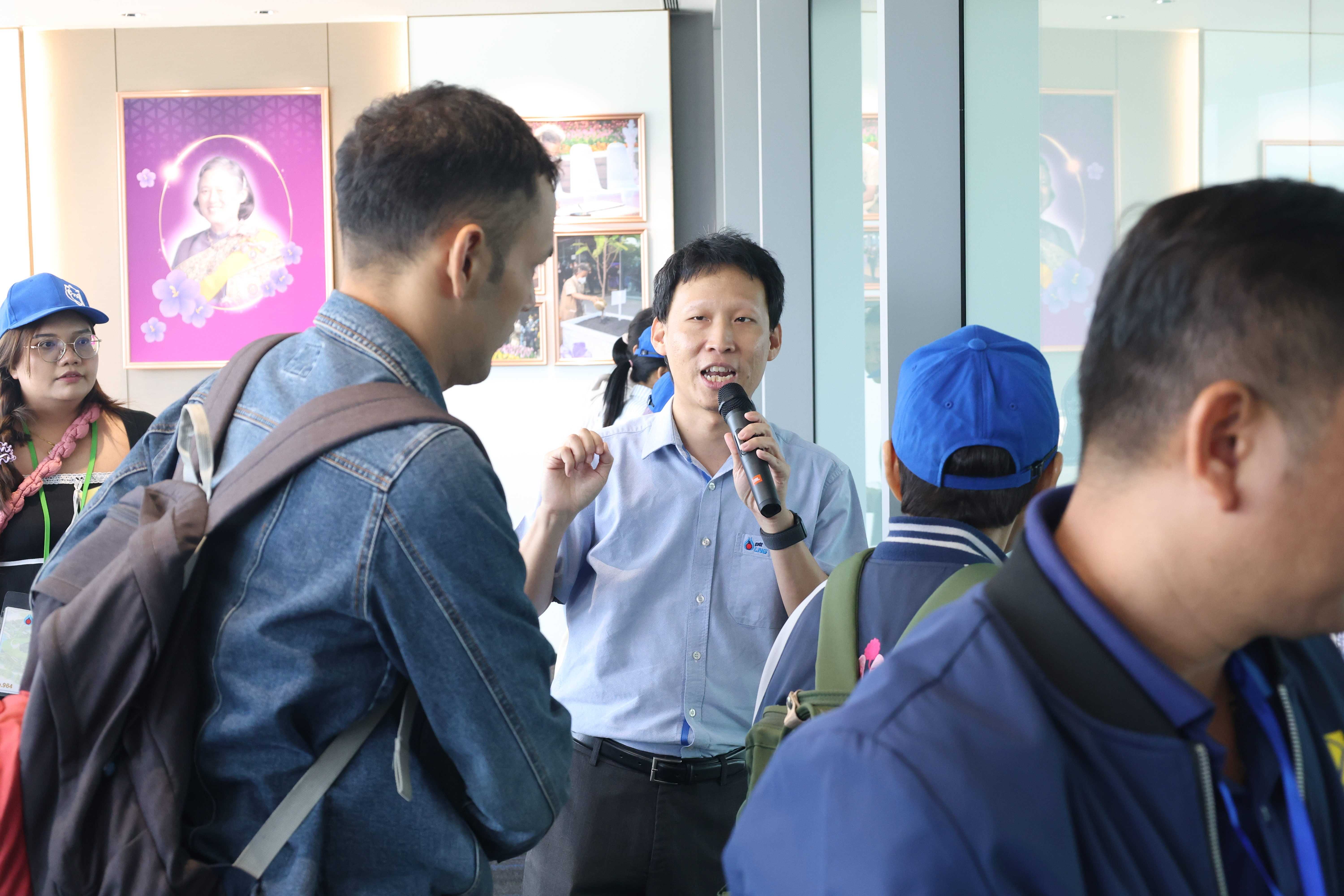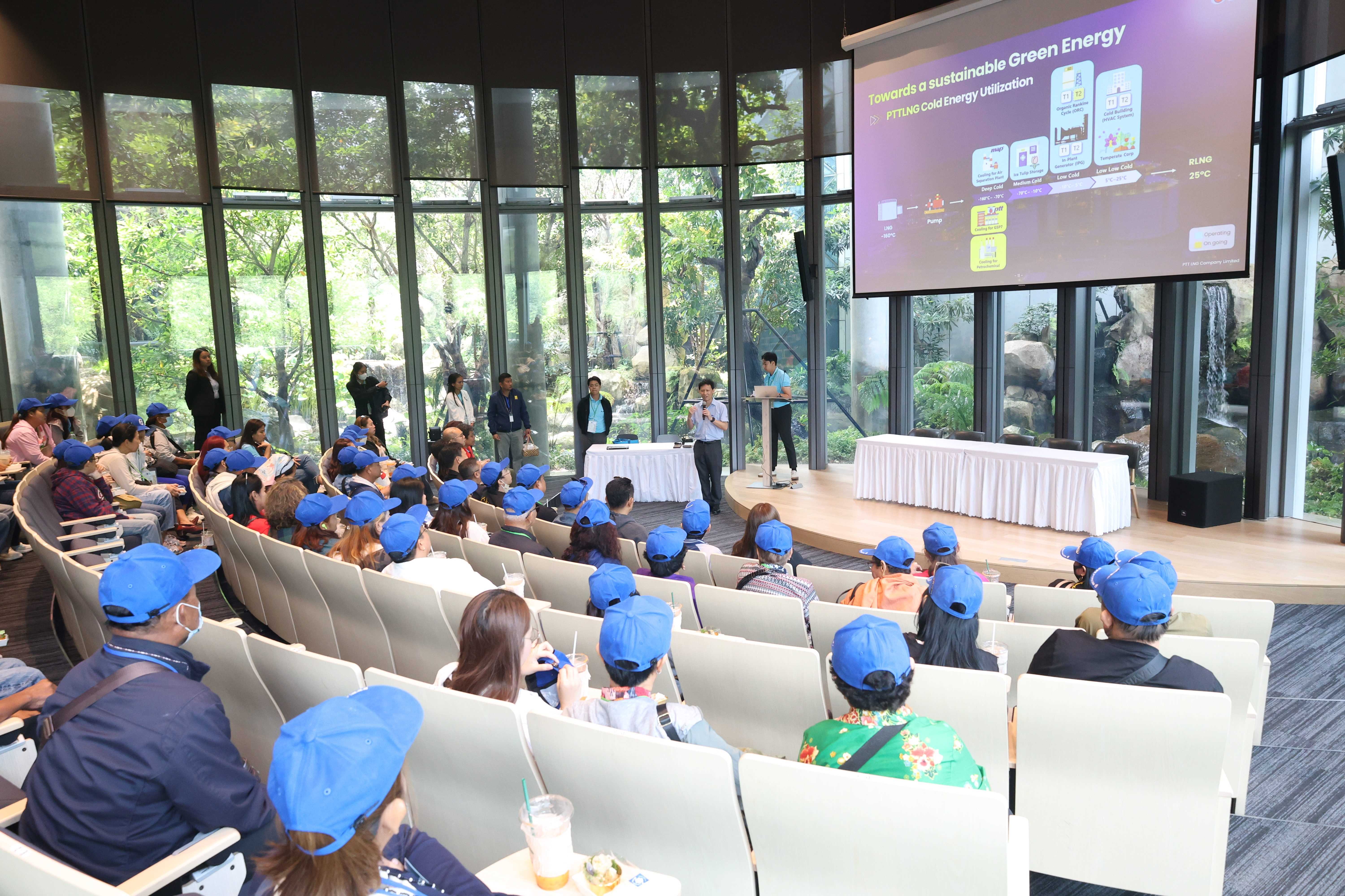 วันที่ 1 เมษายน พ.ศ. 2568 PTTLNG ให้การต้อนรับคณะหัวหน้าส่วนราชการ ผู้นำ และประชาชน ตำบลบางแก้ว อำเภอบางพลี จังหวัดสมุทรปราการ ในโครงการระบบท่อส่งก๊าซธรรมชาติจากบางปะกง ไปโรงไฟฟ้าพระนครใต้ (คบพ.) บริษัท ปตท. จำกัด (มหาชน) เนื่องในโอกาสเยี่ยมชม PTTLNG เพื่อศึกษาดูงานการดำเนินธุรกิจของ PTTLNG และให้เกิดความรู้ ความเข้าใจ ที่มาและการดำเนินด้านนวัตกรรมการนำพลังงานความเย็นจาก LNG ที่เหลือใช้มาพัฒนาให้เกิดประโยชน์สูงสุด รวมถึงระบบการจัดการพลังงานควบคู่กับการอนุรักษ์สิ่งแวดล้อมได้อย่างยั่งยืน โดยคณะฯได้รับฟังการบรรยายสรุป “ภาพรวมการดำเนินธุรกิจ PTTLNG” โดย คุณกิติภูมิ ตั้งวงษ์พิมุข ผู้จัดการส่วนสื่อสารองค์กรและกิจการเพื่อสังคม หลังจากนั้นเข้าเยี่ยมชมศูนย์ควบคุมการปฏิบัติการส่วนกลาง (Central Control Room) ตลอดจนเข้าเยี่ยมชมไม้เมืองหนาวภายในอาคารนิทรรศน์พรรณพฤกษา ศูนย์เลิศพนานุรักษ์ ที่นำพลังงานความเย็นจากก๊าซธรรมชาติเหลว (LNG) มาใช้ประโยชน์กับระบบปรับอากาศภายในอาคาร