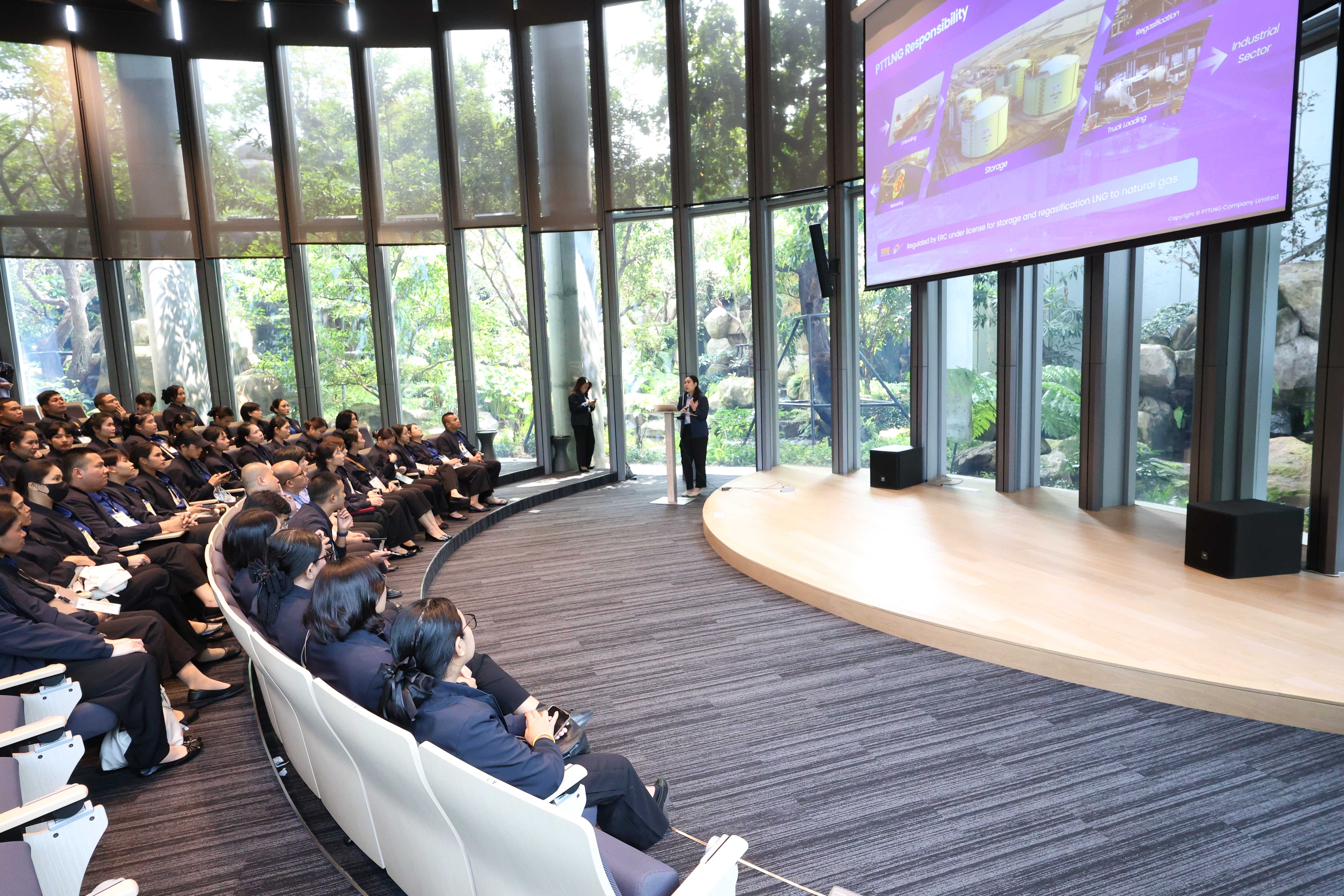 วันที่ 9 เมษายน พ.ศ. 2568 PTTLNG ให้การต้อนรับคณะข้าราชการตำรวจชั้นสัญญาบัตร ที่เข้าร่วมอบรมหหลักสูตรฝ่ายอำนวยการตำรวจรุ่นที่ 46 วิทยาลัยการตำรวจ เนื่องในโอกาสเยี่ยมชม PTTLNG เพื่อศึกษาดูงานการดำเนินธุรกิจของ PTTLNG รวมถึงระบบการจัดการพลังงานควบคู่กับการอนุรักษ์สิ่งแวดล้อมได้อย่างยั่งยืน โดยคณะฯได้รับฟังการบรรยายสรุป “ภาพรวมการดำเนินธุรกิจ PTTLNG” โดย คุณวรัญญู วรธงไชย พนักงานประชาสัมพันธ์ หลังจากนั้นเข้าเยี่ยมชมไม้เมืองหนาวภายในอาคารนิทรรศน์พรรณพฤกษา ศูนย์เลิศพนานุรักษ์ ที่นำพลังงานความเย็นจากก๊าซธรรมชาติเหลว (LNG) มาใช้ประโยชน์กับระบบปรับอากาศภายในอาคาร
