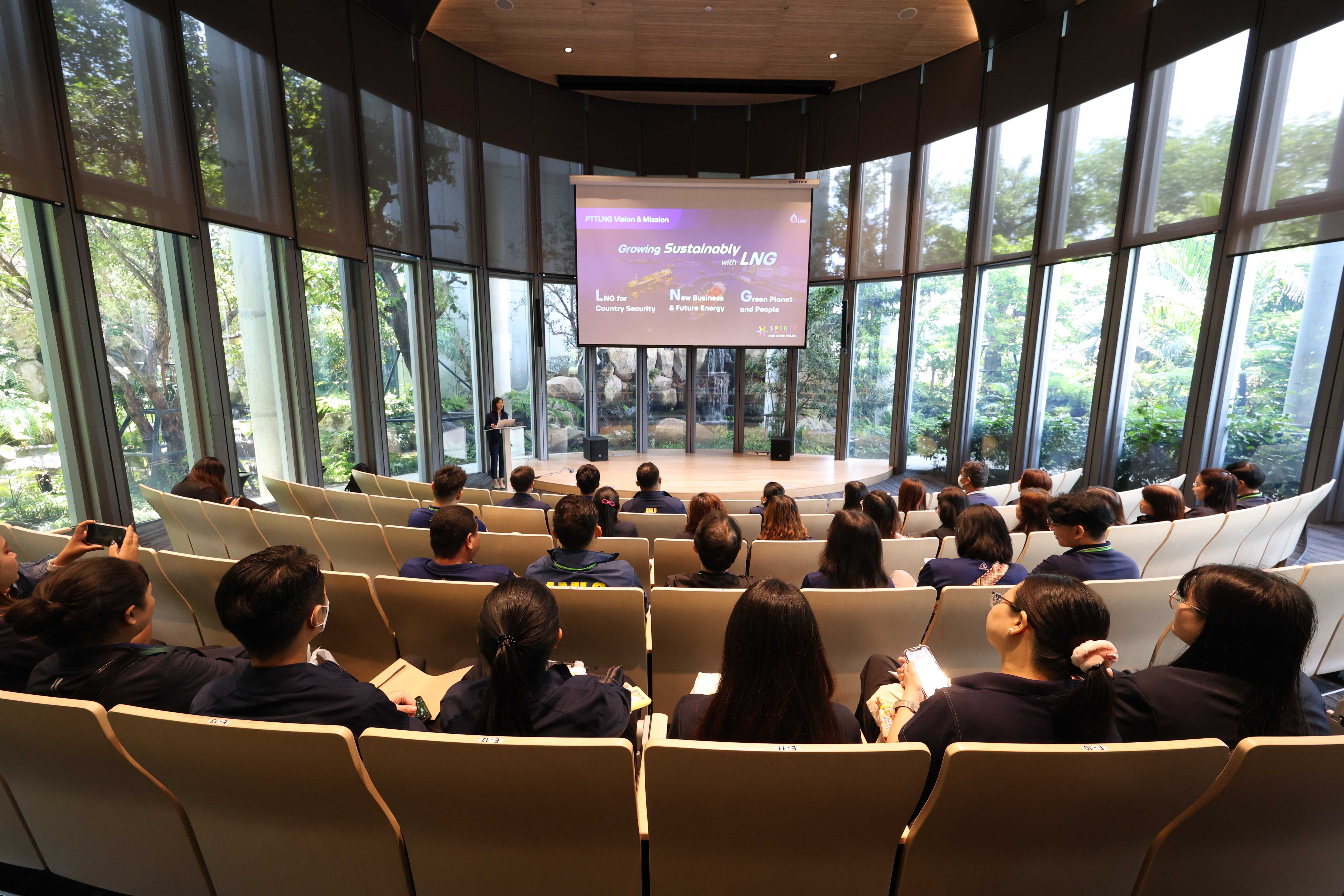 วันที่ 23 เมษายน พ.ศ. 2568  PTTLNG ให้การต้อนรับคณะผู้บริหารและบุคลากรของสำนักงานป้องกันและปราบปรามการฟอกเงิน เนื่องในโอกาสเยี่ยมชม PTTLNG เพื่อศึกษาดูงานการดำเนินธุรกิจของ PTTLNG และนวัตกรรมในการจัดการพลังงานควบคู่กับการอนุรักษ์สิ่งแวดล้อมได้อย่างยั่งยืน โดยคณะฯได้รับฟังการบรรยายสรุป “ภาพรวมการดำเนินธุรกิจ PTTLNG” โดย คุณจุฑารัตน์ พิทักษ์วาทิน พนักงานประชาสัมพันธ์อาวุโส หลังจากนั้นคณะฯได้เข้าเยี่ยมชมไม้เมืองหนาวภายในอาคารนิทรรศน์พรรณพฤกษา ศูนย์เลิศพนานุรักษ์ ที่นำพลังงานความเย็นจากก๊าซธรรมชาติเหลว (LNG) มาใช้ประโยชน์กับระบบปรับอากาศภายในอาคาร