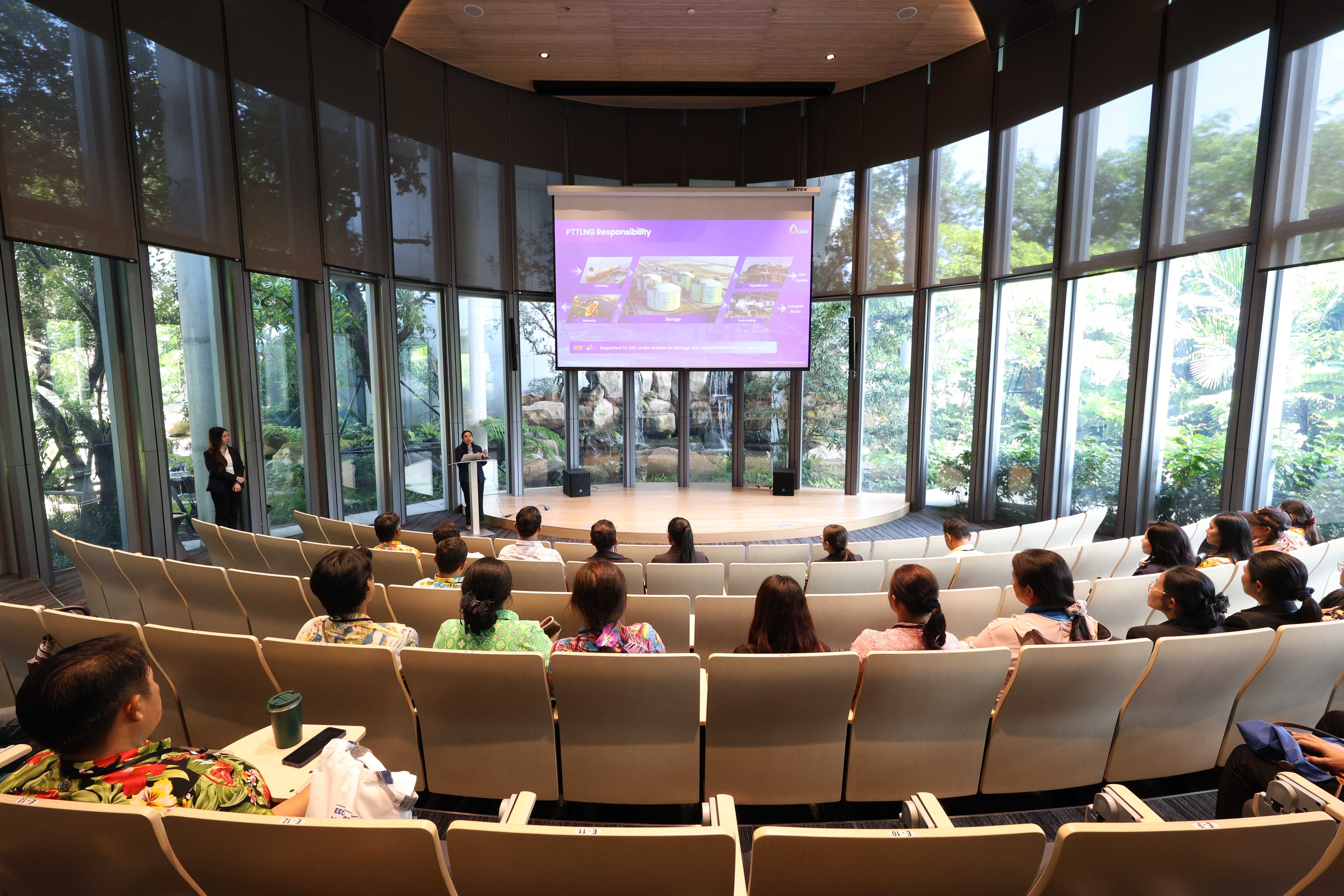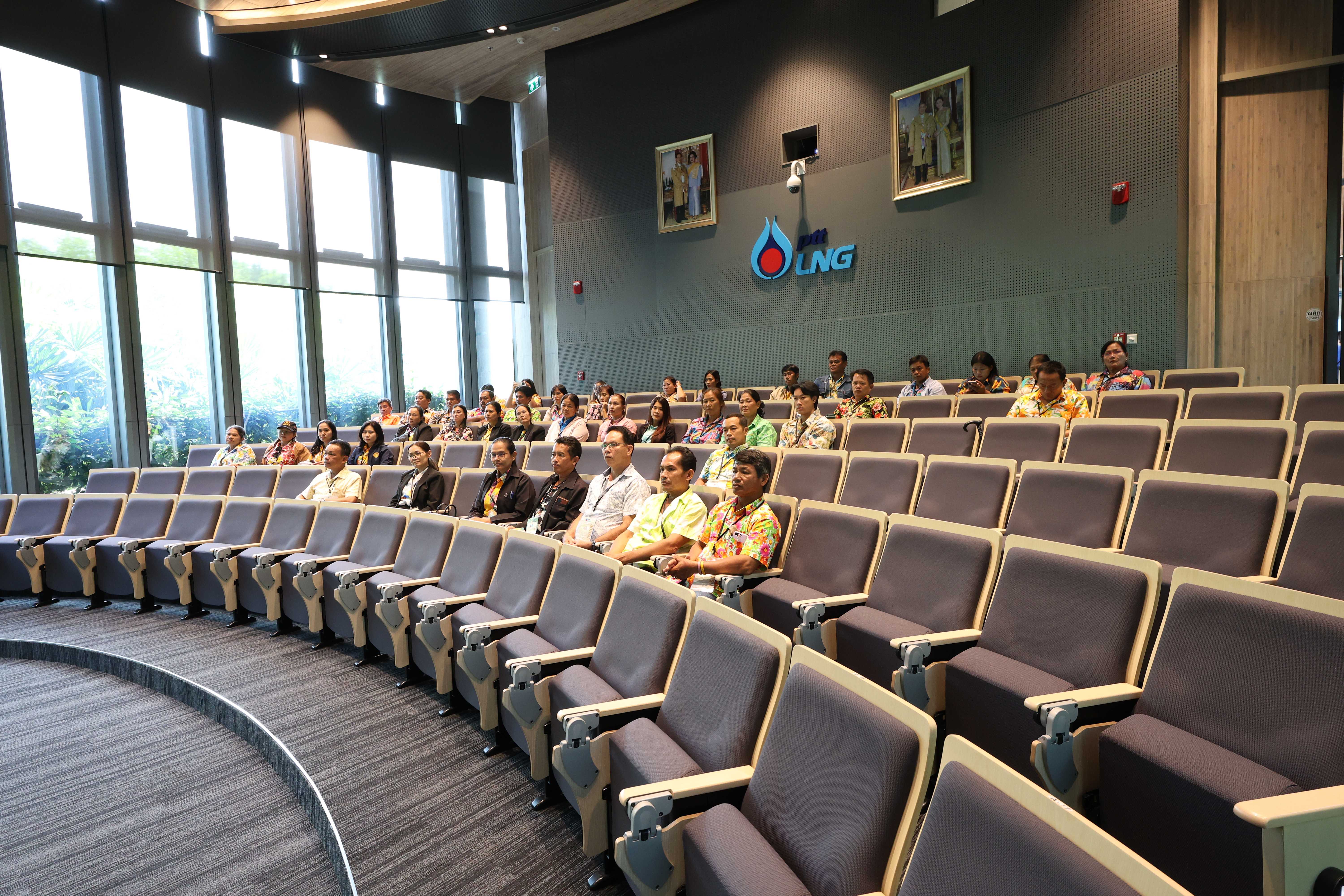 วันที่ 23 เมษายน พ.ศ. 2568  PTTLNG ให้การต้อนรับคณะส่วนราชการ คณะทำงาน กำนัน ผู้ใหญ่บ้าน และเจ้าหน้าที่ที่ว่าการอำเภอราชสาส์น เนื่องในโอกาสเยี่ยมชม PTTLNG เพื่อศึกษาดูงานการดำเนินธุรกิจของ PTTLNG และการมีส่วนร่วมในการพัฒนาชุมชนในพื้นที่ รวมถึงการตอบสนองต่อเป้าหมายการพัฒนาที่ยั่งยืน โดยคณะฯได้รับฟังการบรรยายสรุป “ภาพรวมการดำเนินธุรกิจ PTTLNG” โดย คุณวรัญญู วรธงไชย พนักงานประชาสัมพันธ์ หลังจากนั้นคณะฯได้เข้าเยี่ยมชมไม้เมืองหนาวภายในอาคารนิทรรศน์พรรณพฤกษา ศูนย์เลิศพนานุรักษ์ ที่นำพลังงานความเย็นจากก๊าซธรรมชาติเหลว (LNG) มาใช้ประโยชน์กับระบบปรับอากาศภายในอาคาร