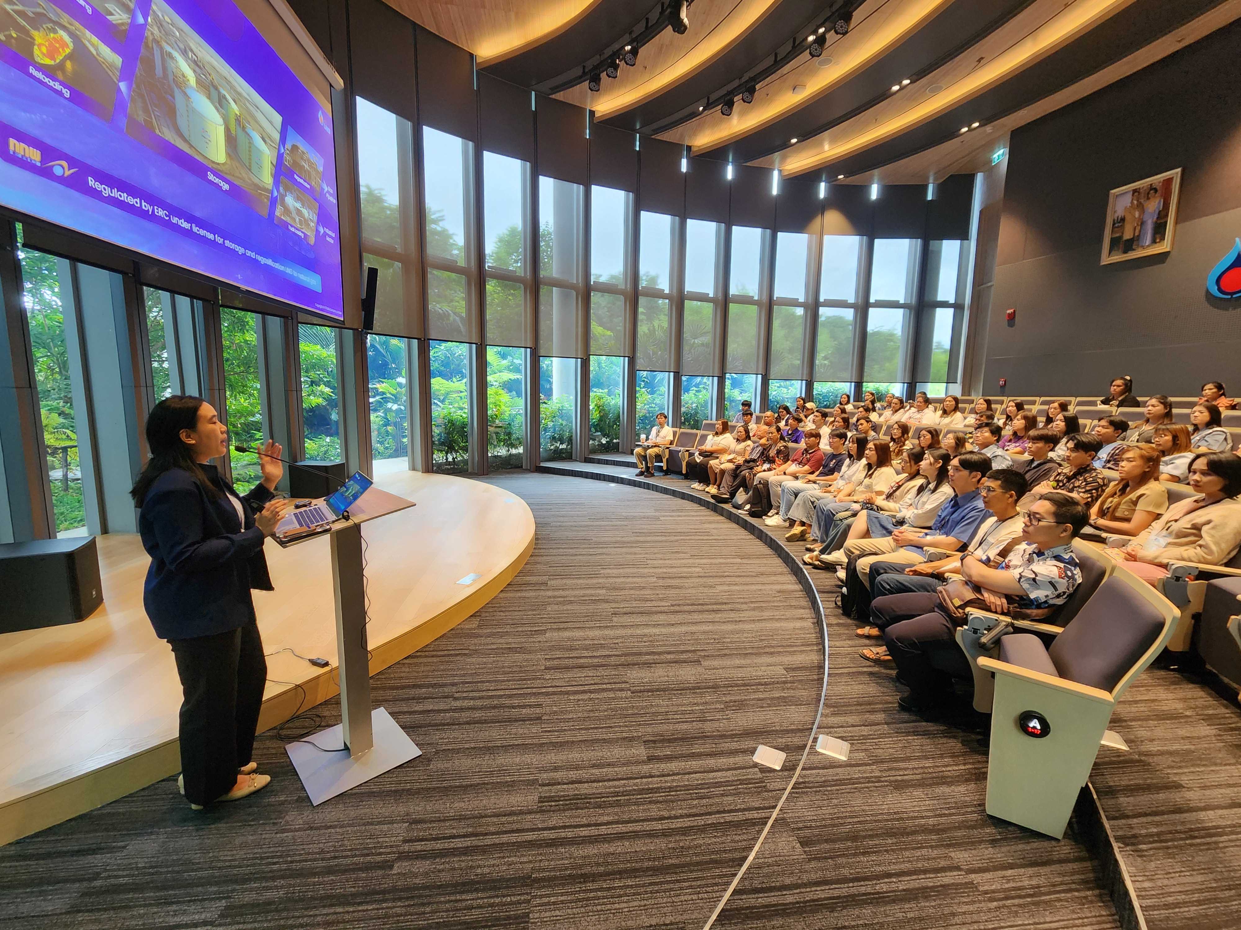 วันที่ 29 เมษายน พ.ศ. 2568  PTTLNG ให้การต้อนรับคณาจารย์และนิสิตหลักสูตรการศึกษามหาบัณฑิต สาขาวิชาสังคมศึกษา มหาวิทยาลัยนเรศวร เนื่องในโอกาสเยี่ยมชม PTTLNG เพื่อศึกษาดูงานการดำเนินธุรกิจของ PTTLNG และการมีส่วนร่วมในการพัฒนาชุมชนในพื้นที่ รวมถึงการตอบสนองต่อเป้าหมายการพัฒนาที่ยั่งยืน โดยคณะฯได้รับฟังการบรรยายสรุป “ภาพรวมการดำเนินธุรกิจ PTTLNG” โดย คุณวรัญญู วรธงไชย พนักงานประชาสัมพันธ์ หลังจากนั้นคณะฯได้เข้าเยี่ยมชมไม้เมืองหนาวภายในอาคารนิทรรศน์พรรณพฤกษา ศูนย์เลิศพนานุรักษ์ ที่นำพลังงานความเย็นจากก๊าซธรรมชาติเหลว (LNG) มาใช้ประโยชน์กับระบบปรับอากาศภายในอาคาร