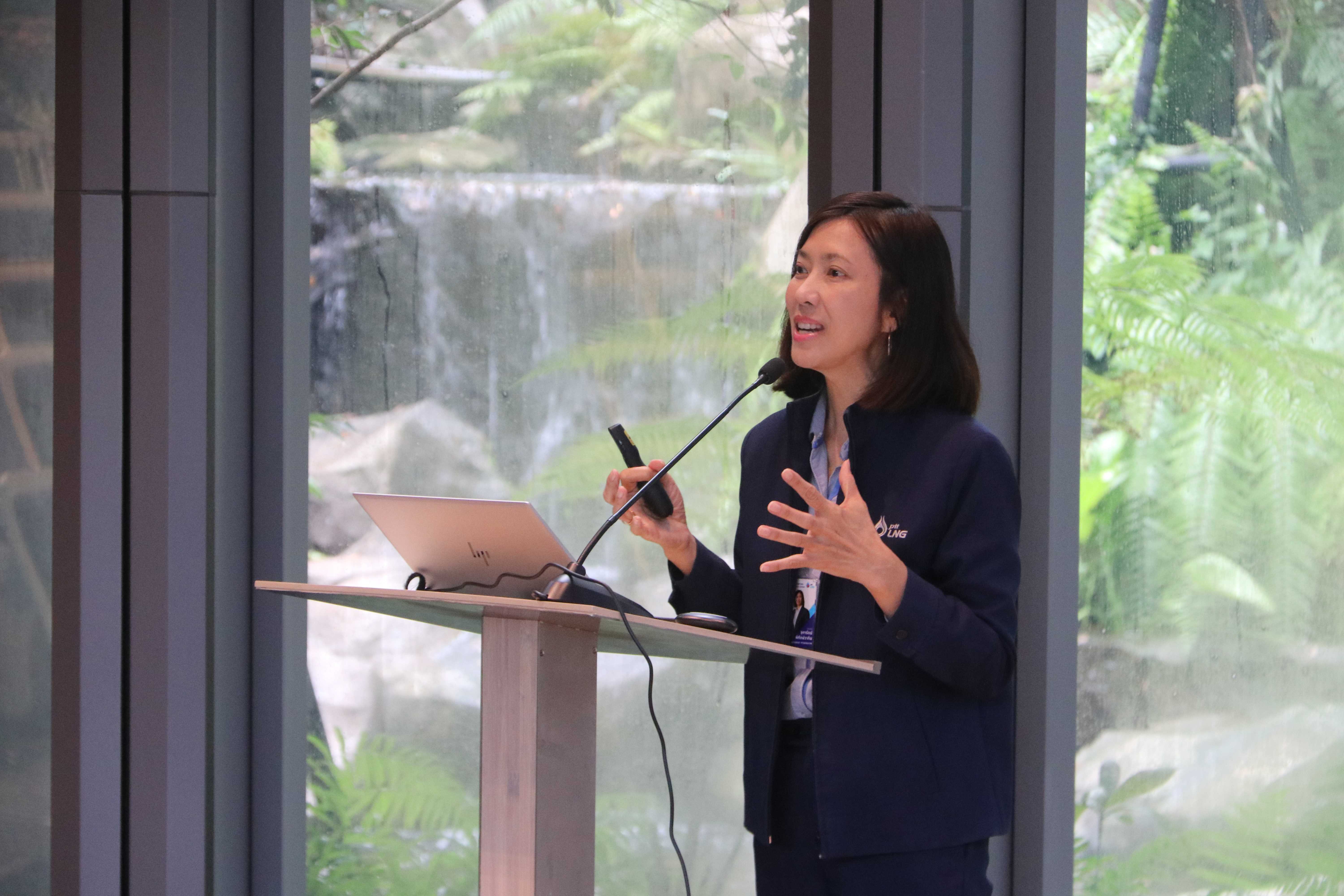 วันที่ 30 เมษายน พ.ศ. 2568 PTTLNG ให้การต้อนรับคณาจารย์และนักศึกษาคณะสถาปัตยกรรมศาสตร์ มหาวิทยาลัยเทคโนโลยีราชมงคลศรีวิชัย เนื่องในโอกาสเยี่ยมชม PTTLNG เพื่อศึกษาดูงานการดำเนินธุรกิจของ PTTLNG และให้เกิดความรู้ ความเข้าใจ ที่มาและการดำเนินด้านนวัตกรรมการนำพลังงานความเย็นจาก LNG ที่เหลือใช้มาพัฒนาให้เกิดประโยชน์สูงสุด รวมถึงระบบการจัดการพลังงานควบคู่กับการอนุรักษ์สิ่งแวดล้อมได้อย่างยั่งยืน โดยคณะฯได้รับฟังการบรรยายสรุป “ภาพรวมการดำเนินธุรกิจ PTTLNG” โดย คุณจุฑารัตน์ พิทักษ์วาทิน พนักงานประชาสัมพันธ์อาวุโส หลังจากนั้นคณะฯได้เข้าเยี่ยมชมไม้เมืองหนาวภายในอาคารนิทรรศน์พรรณพฤกษา ศูนย์เลิศพนานุรักษ์ ที่นำพลังงานความเย็นจากก๊าซธรรมชาติเหลว (LNG) มาใช้ประโยชน์กับระบบปรับอากาศภายในอาคาร