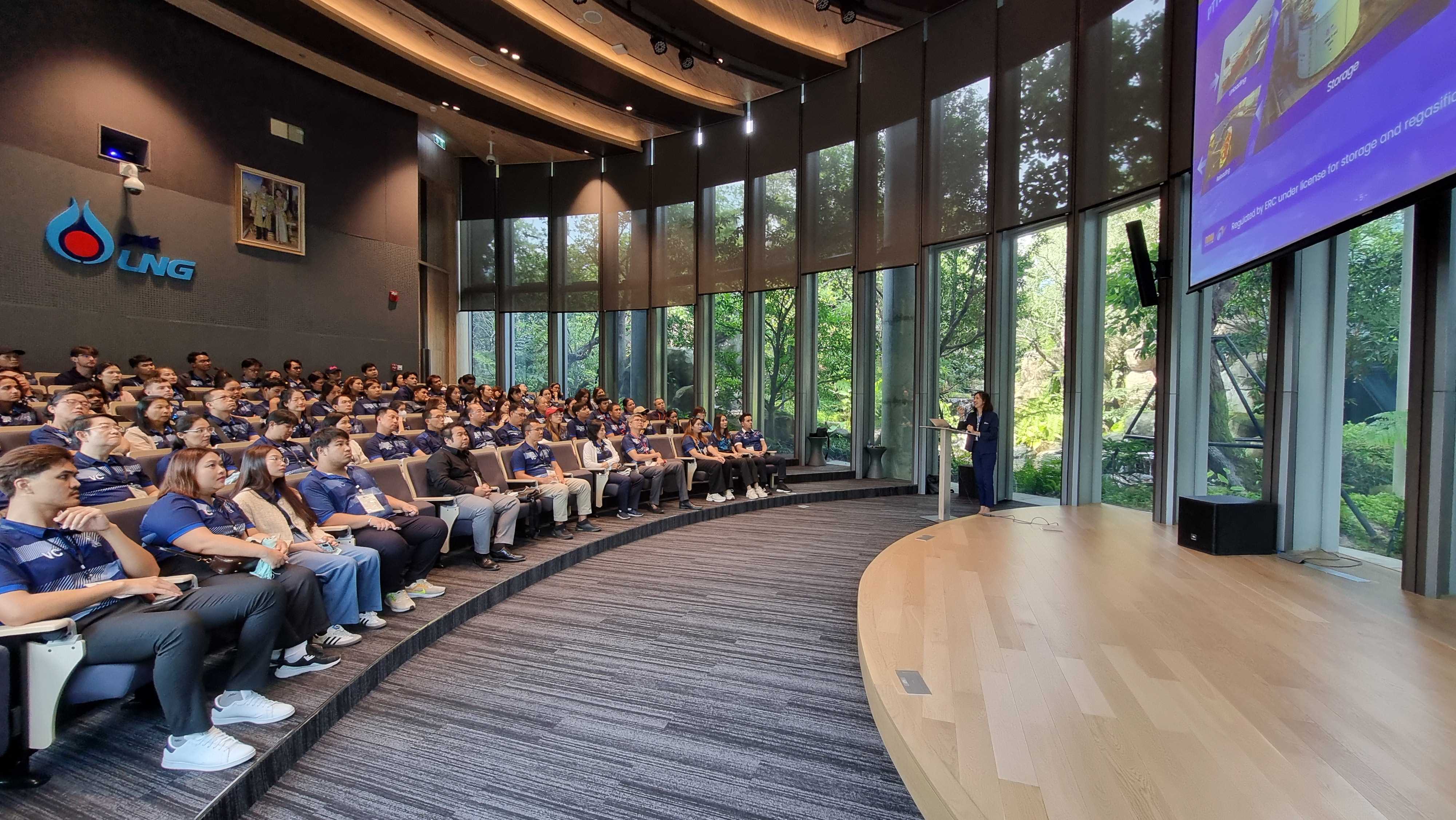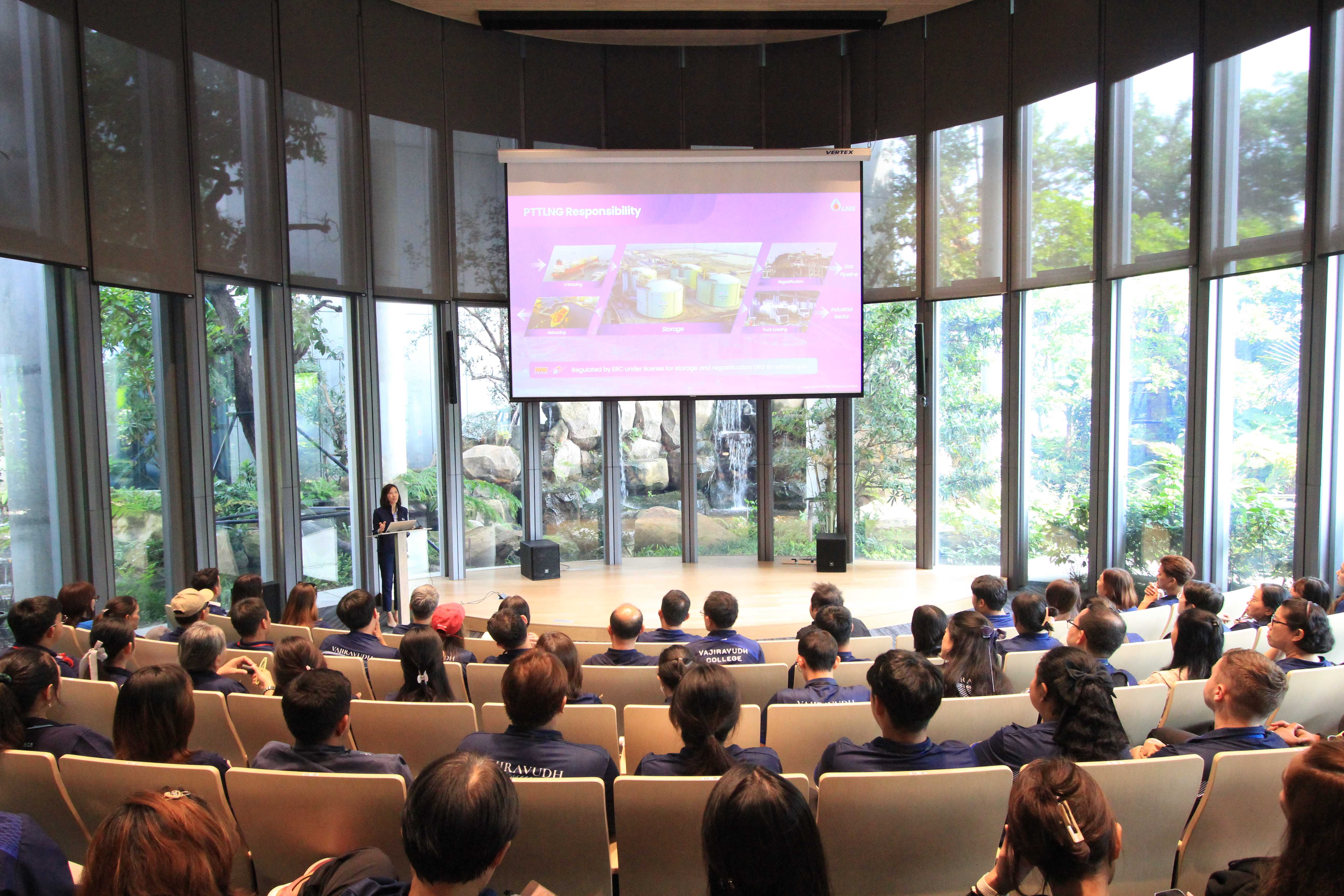 วันที่ 30 เมษายน พ.ศ. 2568 PTTLNG ให้การต้อนรับคณะผู้บริหาร ครู และบุคลากรจากวชิราวุธวิทยาลัย เนื่องในโอกาสเยี่ยมชม PTTLNG เพื่อศึกษาดูงานการดำเนินธุรกิจของ PTTLNG และให้เกิดความรู้ ความเข้าใจ ที่มาและการดำเนินด้านนวัตกรรมการนำพลังงานความเย็นจาก LNG ที่เหลือใช้มาพัฒนาให้เกิดประโยชน์สูงสุด รวมถึงระบบการจัดการพลังงานควบคู่กับการอนุรักษ์สิ่งแวดล้อมได้อย่างยั่งยืน โดยคณะฯได้รับฟังการบรรยายสรุป “ภาพรวมการดำเนินธุรกิจ PTTLNG” โดย คุณจุฑารัตน์ พิทักษ์วาทิน พนักงานประชาสัมพันธ์อาวุโส หลังจากนั้นคณะฯได้เข้าเยี่ยมชมไม้เมืองหนาวภายในอาคารนิทรรศน์พรรณพฤกษา ศูนย์เลิศพนานุรักษ์ ที่นำพลังงานความเย็นจากก๊าซธรรมชาติเหลว (LNG) มาใช้ประโยชน์กับระบบปรับอากาศภายในอาคาร