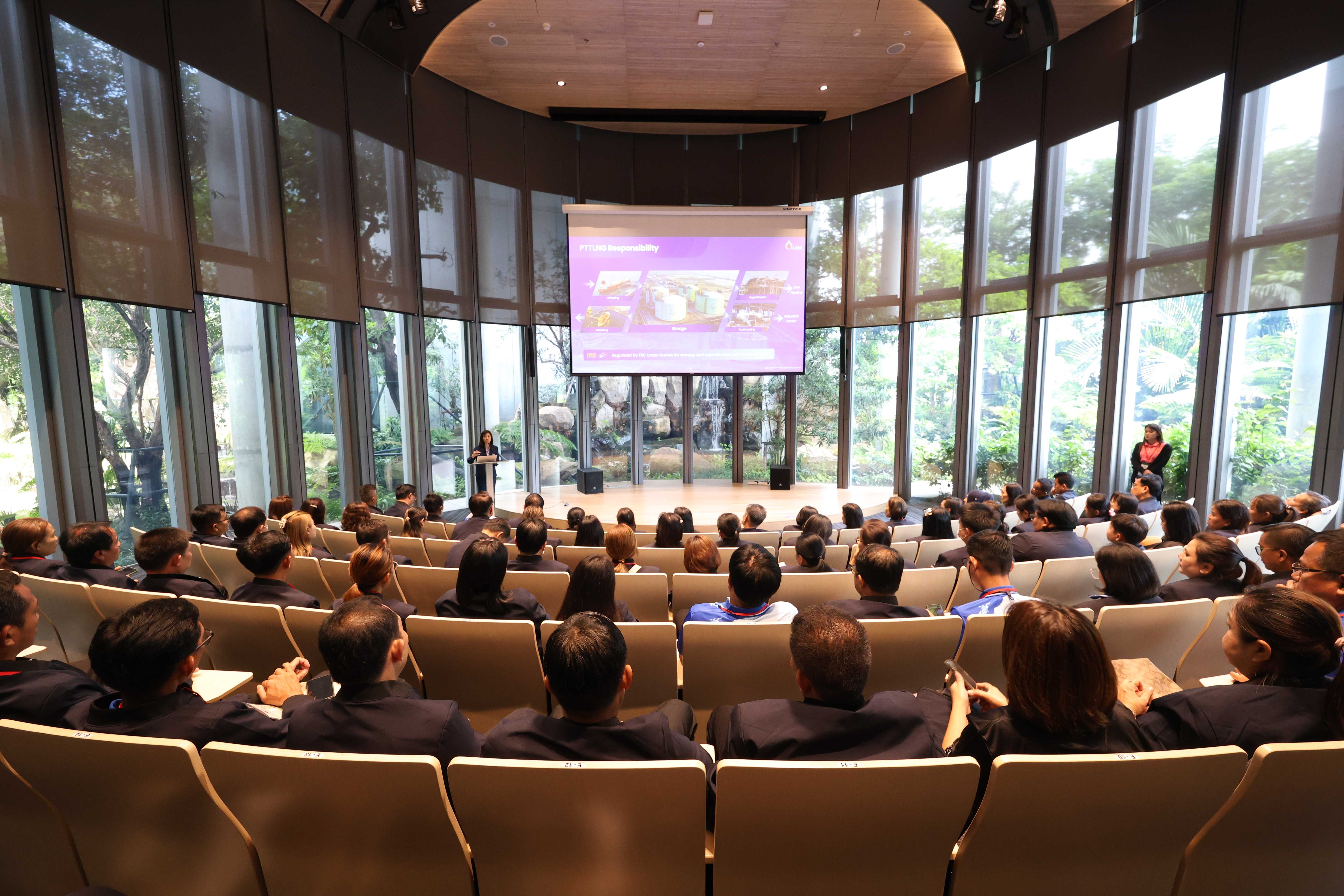 วันที่ 6 พฤษภาคม พ.ศ. 2568 PTTLNG ให้การต้อนรับคณะบุคลากรข้าราชการท้องถิ่นระดับชำนาญการพิเศษ ที่เข้าร่วมอบรมหลักสูตร “ข้าราชการท้องถิ่นระดับชำนาญการพิเศษ” รุ่นที่ 22 ของคณะนิติศาสตร์ จุฬาลงกรณ์มหาวิทยาลัย เนื่องในโอกาสเยี่ยมชม PTTLNG เพื่อศึกษาดูงานการดำเนินธุรกิจของ PTTLNG และให้เกิดความรู้ ความเข้าใจ ที่มาและการดำเนินด้านนวัตกรรมการนำพลังงานความเย็นจาก LNG ที่เหลือใช้มาพัฒนาให้เกิดประโยชน์สูงสุด รวมถึงระบบการจัดการพลังงานควบคู่กับการอนุรักษ์สิ่งแวดล้อมได้อย่างยั่งยืน โดยคณะฯได้รับฟังการบรรยายสรุป “ภาพรวมการดำเนินธุรกิจ PTTLNG” โดย คุณจุฑารัตน์ พิทักษ์วาทิน พนักงานประชาสัมพันธ์อาวุโส หลังจากนั้นคณะฯได้เข้าเยี่ยมชมไม้เมืองหนาวภายในอาคารนิทรรศน์พรรณพฤกษา ศูนย์เลิศพนานุรักษ์ ที่นำพลังงานความเย็นจากก๊าซธรรมชาติเหลว (LNG) มาใช้ประโยชน์กับระบบปรับอากาศภายในอาคาร