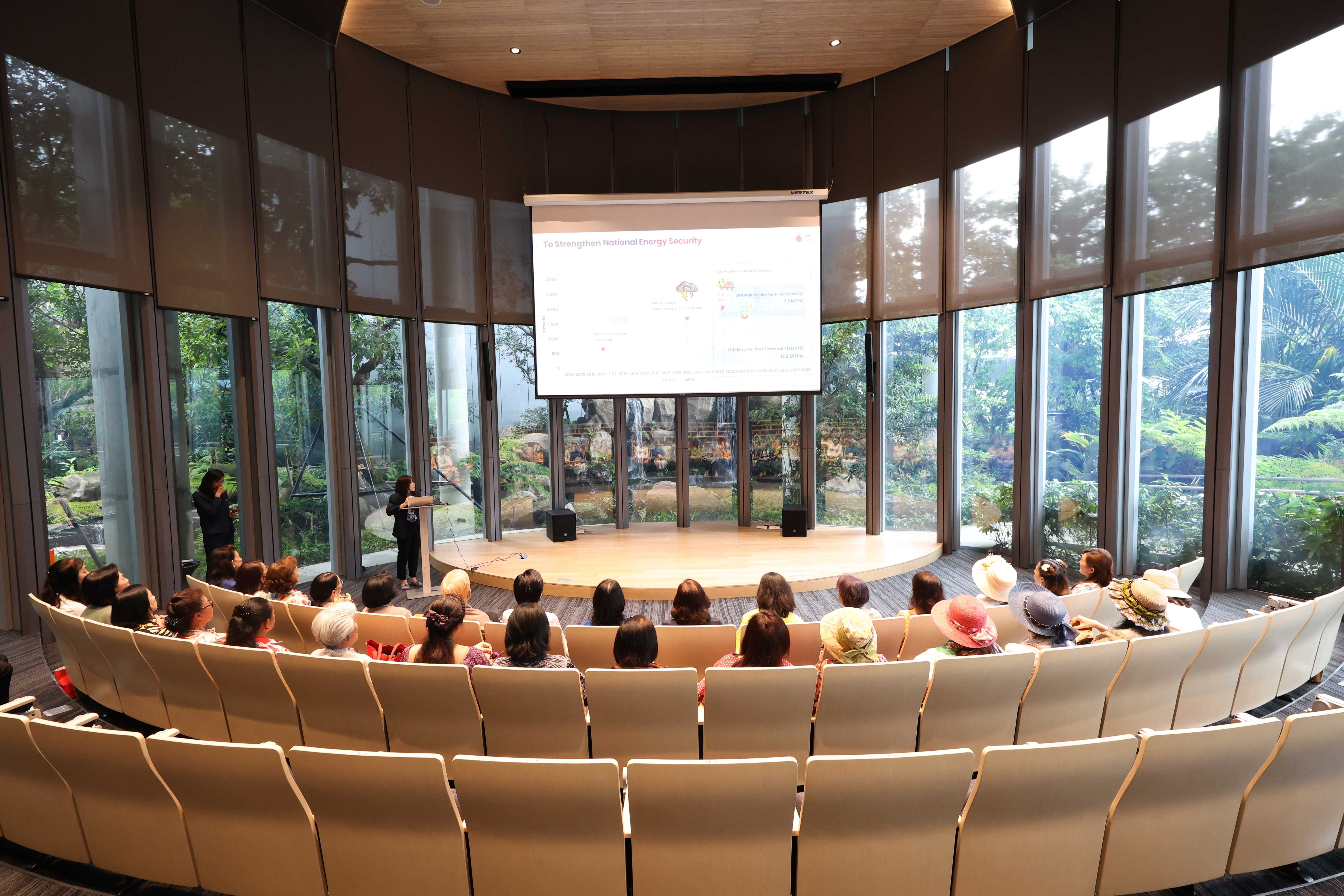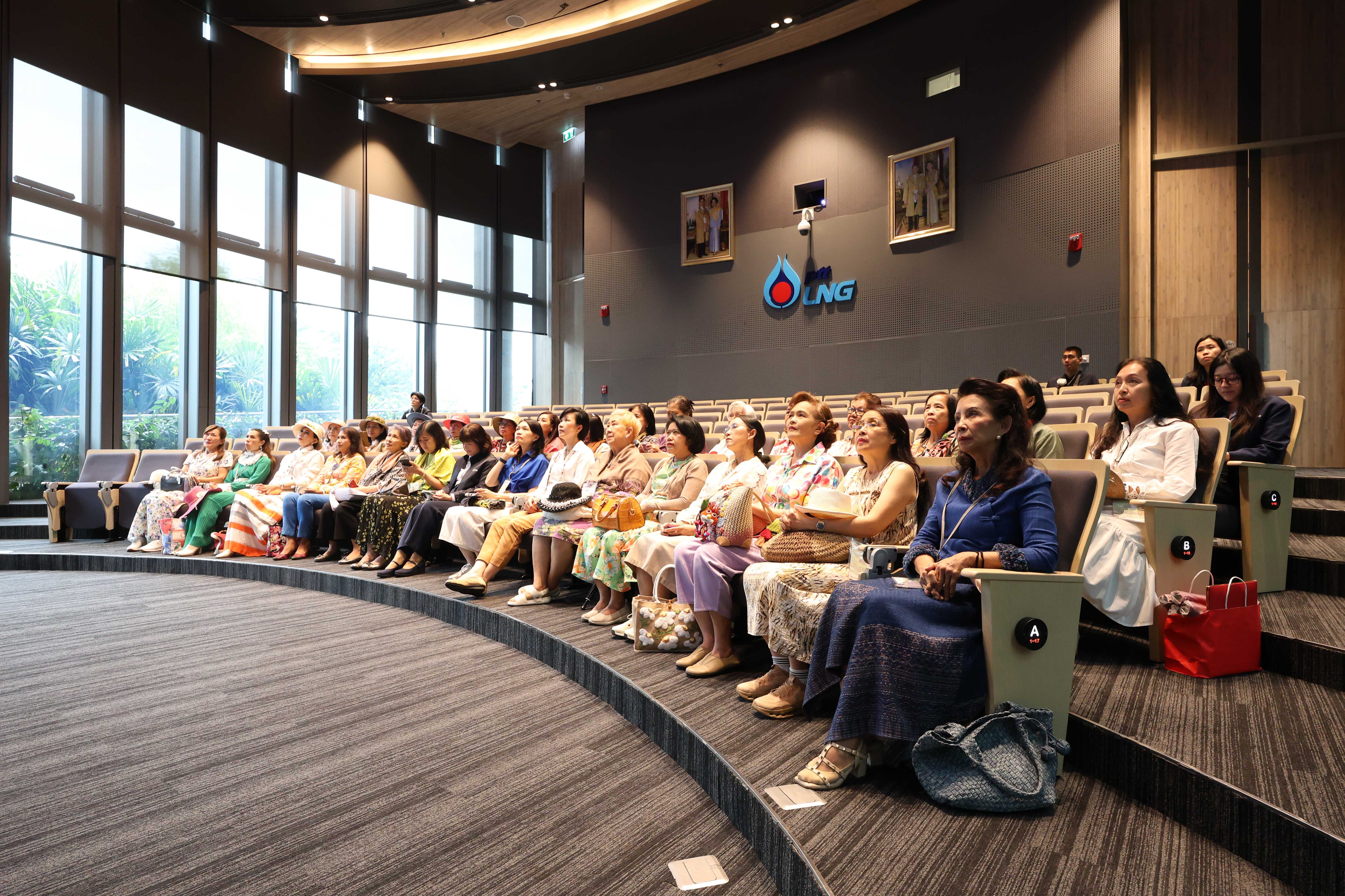 วันที่ 14 พฤษภาคม พ.ศ. 2568 คุณปาจรีย์ ลพสัตถยุทธ รองกรรมการผู้จัดการใหญ่บริหารองค์กร บริษัท พีทีที แอลเอ็นจี จำกัด ให้การต้อนรับคณะกรรมการบริหารชมรมและสมาชิกชมรมสายใยแม่บ้านทหารอากาศ เนื่องในโอกาสเยี่ยมชม PTTLNG เพื่อศึกษาดูงานการดำเนินธุรกิจของ PTTLNG และให้เกิดความรู้ ความเข้าใจ ที่มาและการดำเนินด้านนวัตกรรมการนำพลังงานความเย็นจาก LNG ที่เหลือใช้มาพัฒนาให้เกิดประโยชน์สูงสุด รวมถึงระบบการจัดการพลังงานควบคู่กับการอนุรักษ์สิ่งแวดล้อมได้อย่างยั่งยืน โดยคณะฯได้รับฟังการบรรยายสรุป “ภาพรวมการดำเนินธุรกิจ PTTLNG” โดย คุณชมพูนุช ไวศยะพันธ์ ผู้จัดการส่วนบริหารและปฏิบัติการท่าเรือ LMPT2 หลังจากนั้นคณะฯได้เข้าเยี่ยมชมไม้เมืองหนาวภายในอาคารนิทรรศน์พรรณพฤกษา ศูนย์เลิศพนานุรักษ์ ที่นำพลังงานความเย็นจากก๊าซธรรมชาติเหลว (LNG) มาใช้ประโยชน์กับระบบปรับอากาศภายในอาคาร